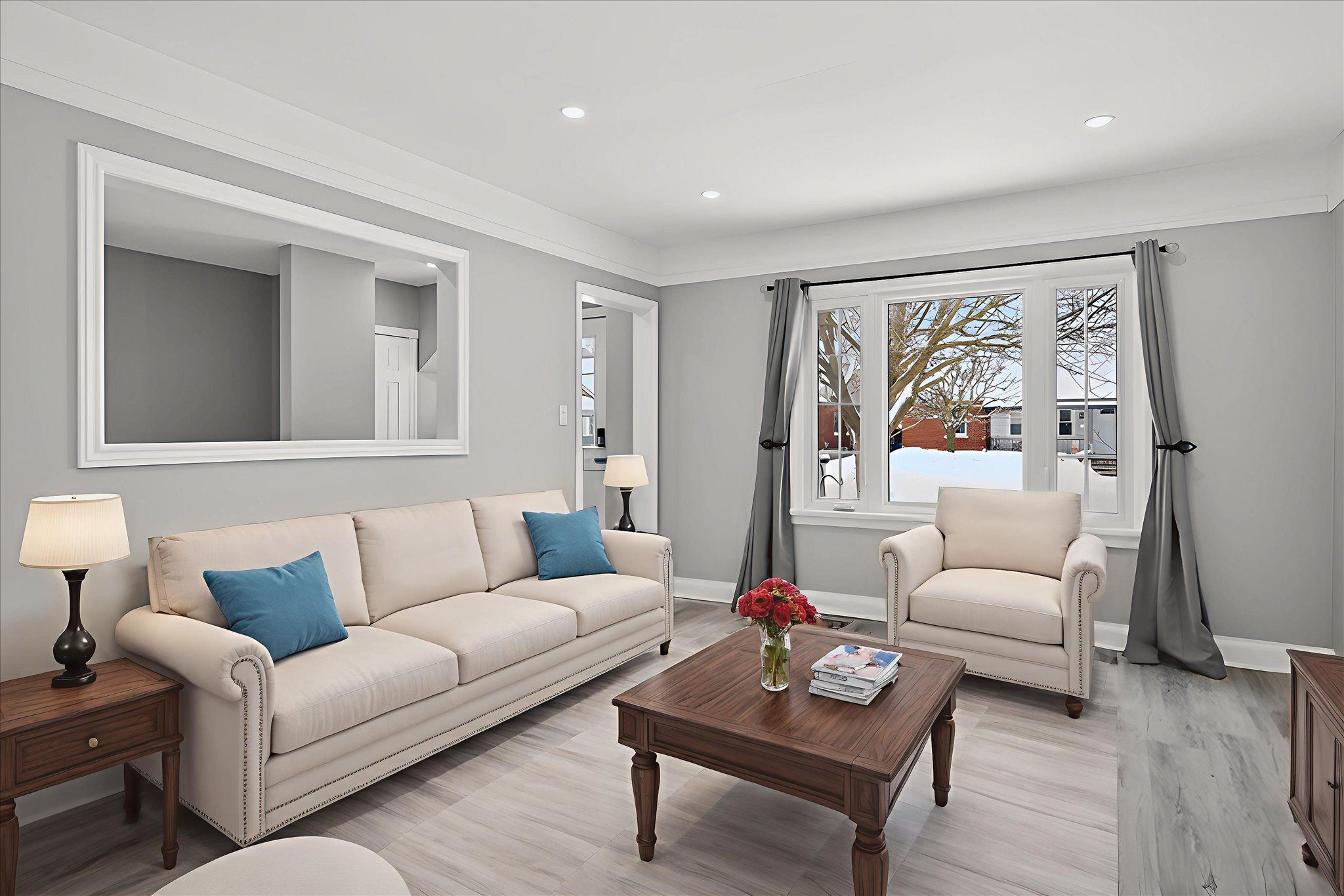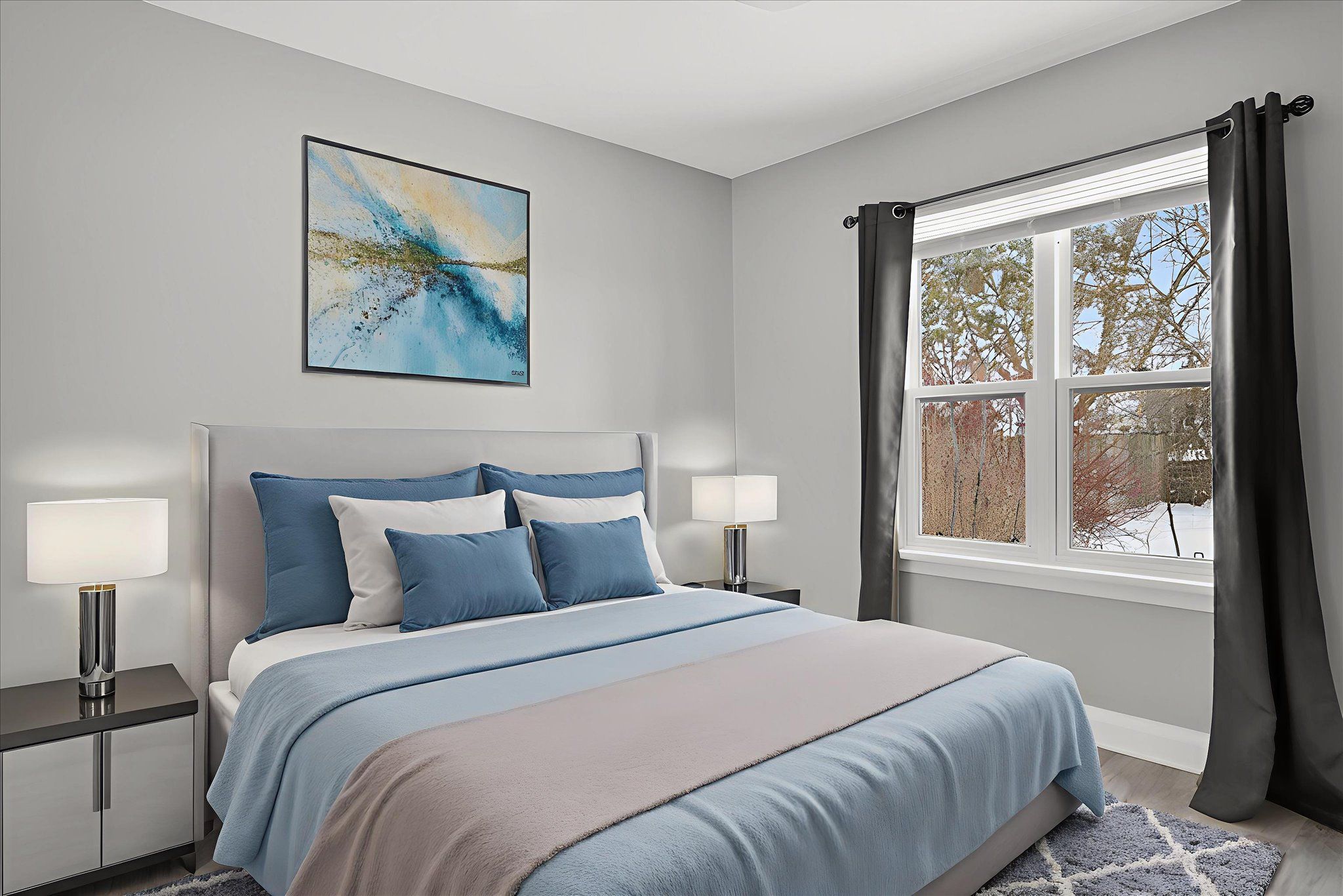 • Modern kitchen and refreshed bathroom with new flooring throughout.