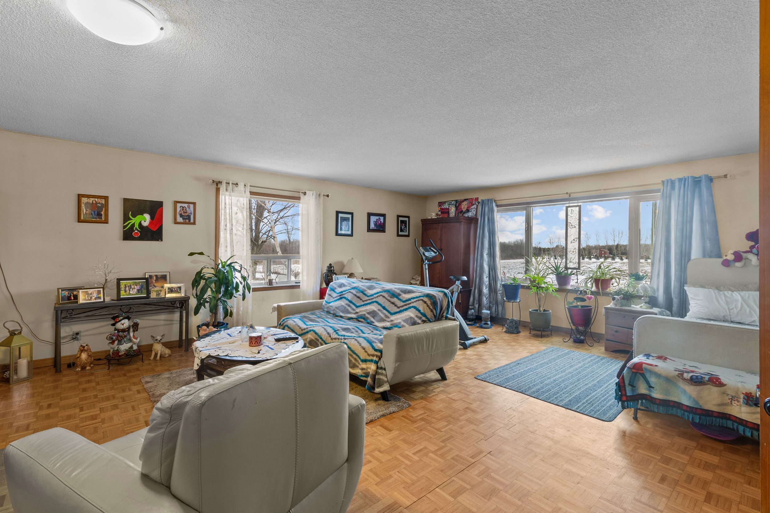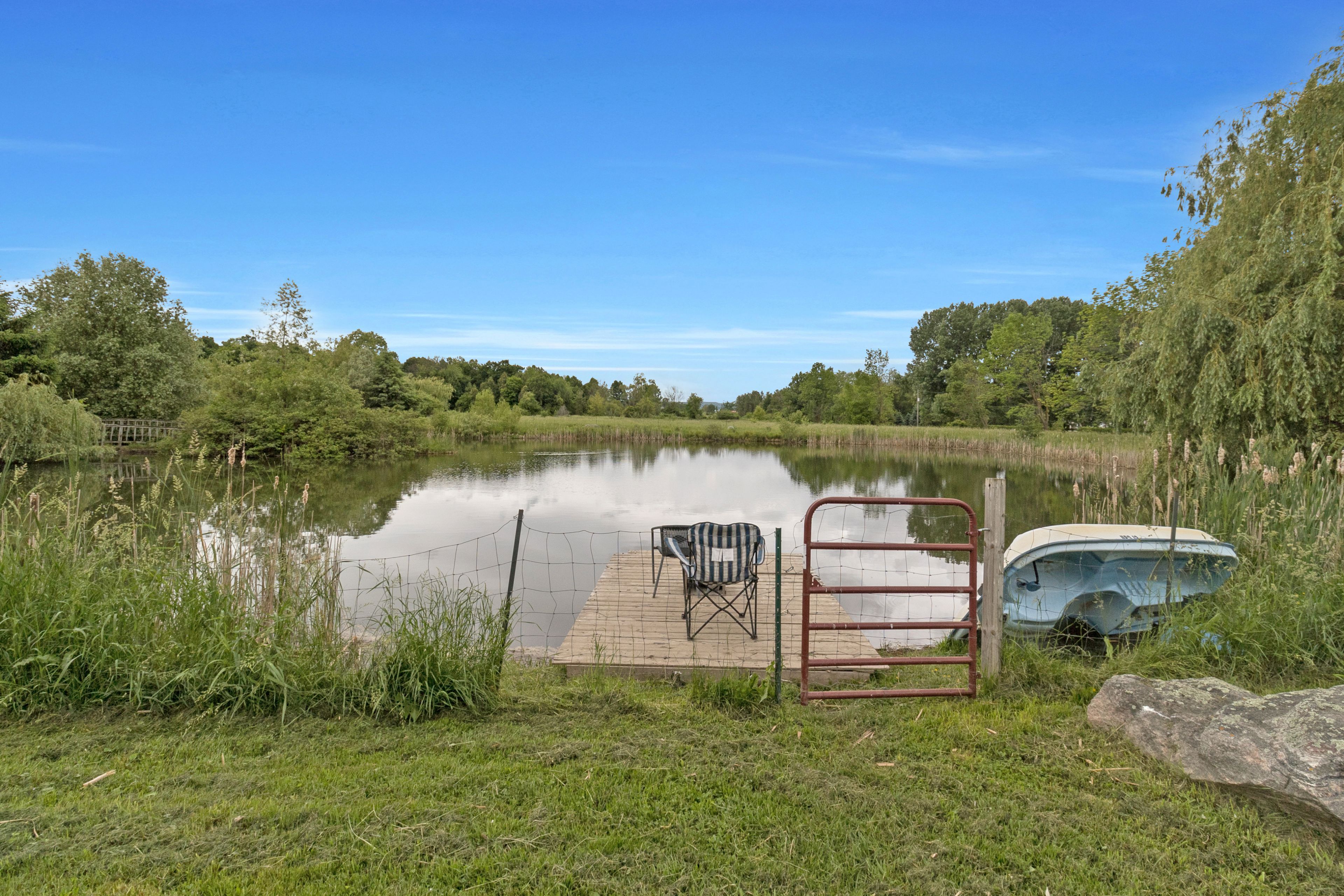 Whether your hobby is gardening, cars or toys, recreation, woodworking etc this property will likely adapt to your needs. Close to amenities (main road & shopping in stayner)! Over 4000 sq ft of living space on main levels. Over 3800 sq ft in house & heated pt finished 1. 5+ car attached garage with 2pc bathroom. Apx 3. 91 acres, trees, stream, pasture & 20' deep pond with dock. Large bank barn (lean to-left side of barn in picture is missing from ice storm). 30x40 insulated 6 car garage & 28x48 heated 4 bay shop. Century home with addition in 1995. Huge front living room & massive dining room used as in-law main floor bedroom set up. Large kitchen with breakfast area & w/o to sunroom. Main floor bedroom & modern 4pc bathroom. Main floor laundry. Past owner had w/i cooler for butcher shop now used as storage room. Has separate entrance at side & rear entrance (many possibilities). 2nd floor huge master bedroom with w/o to deck/balcony above storage room. A wall of b/i storage cupboards in hallway. 2nd bdrm good size with smaller 3rd bdrm & modern renovated 3pc with clawfoot tub. . First 4 inside pictures. Lr, kit, master, 2nd bedroom are ai generated. Brand new hwt & propane furnace.