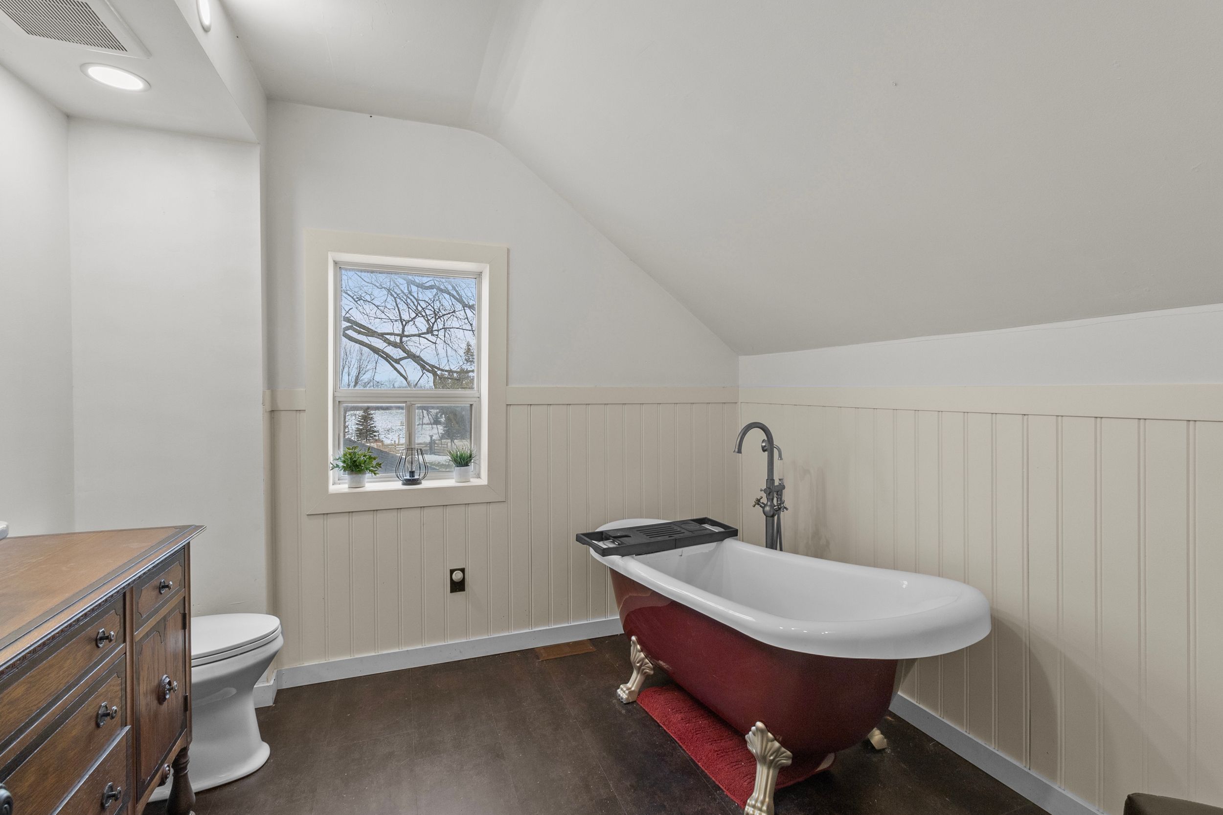 • Modern amenities alongside charming features like clawfoot tub and sunroom.