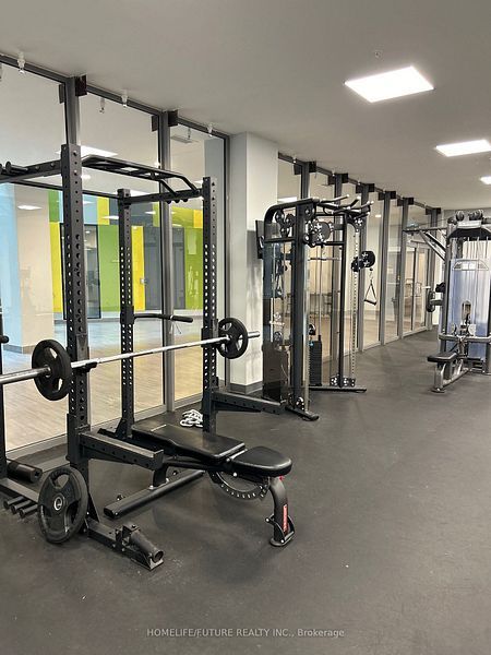 • Building amenities include a fitness room, rooftop patio, and social spaces.