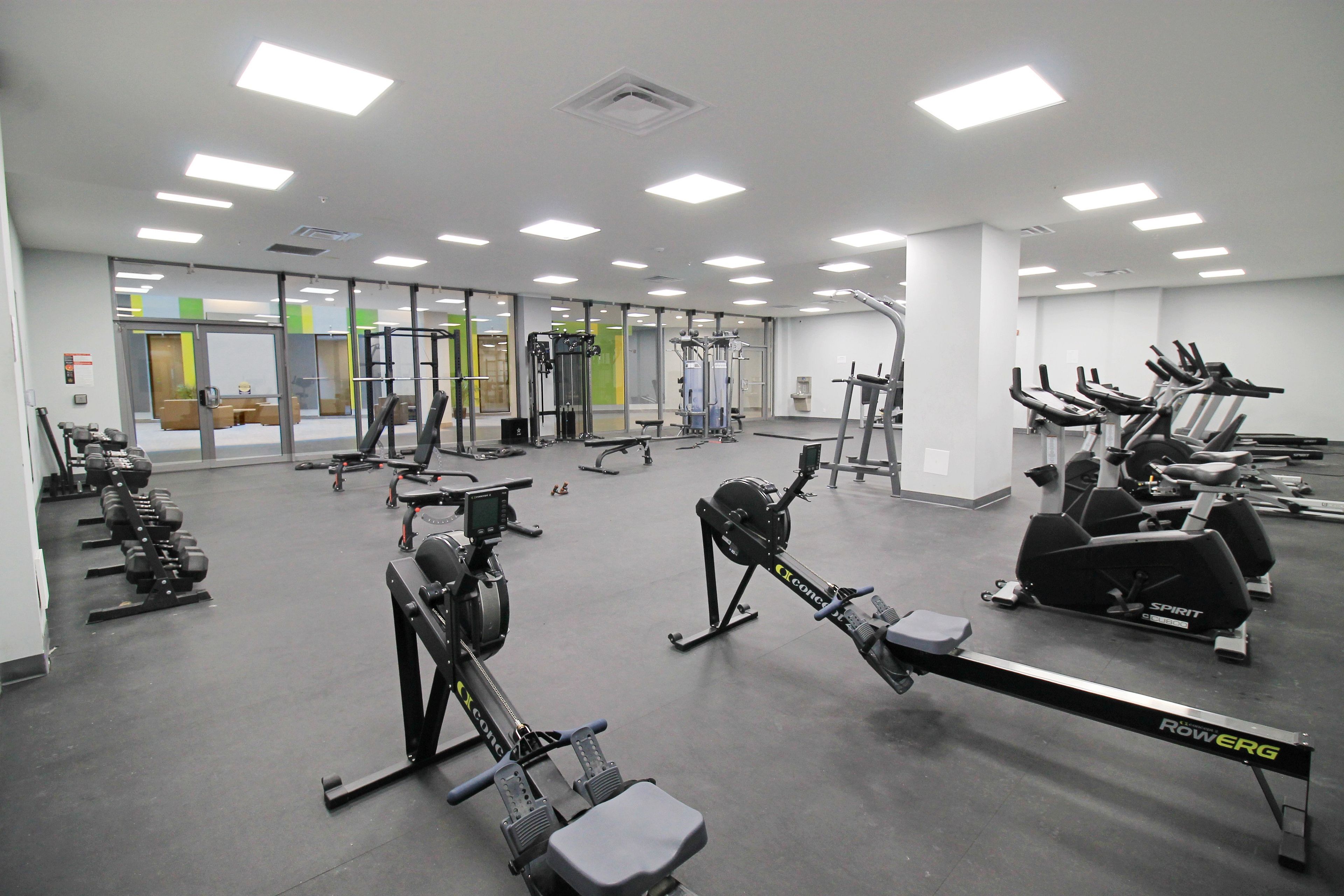 • Building features a rooftop patio, fitness center, and lounge for relaxation.