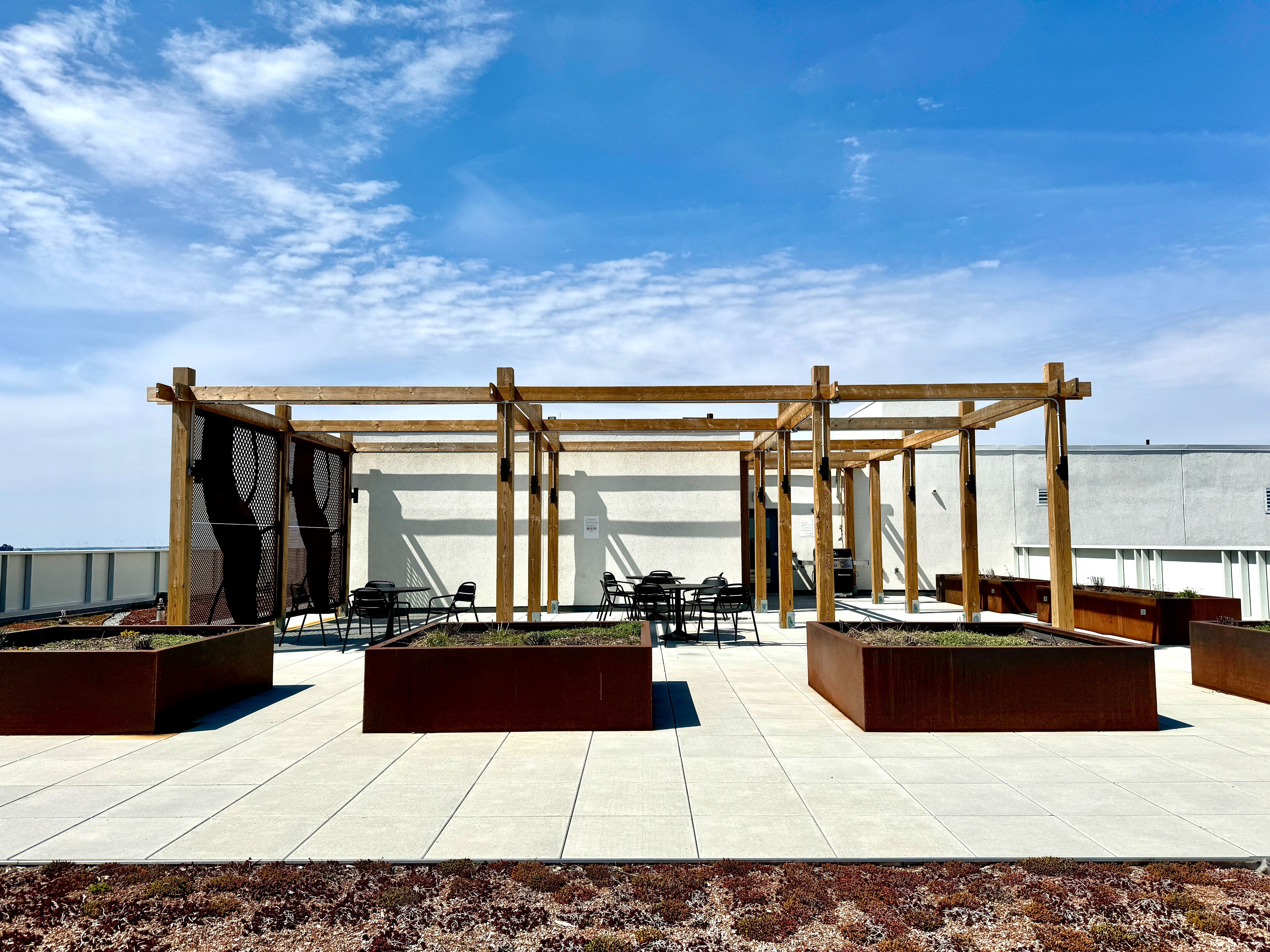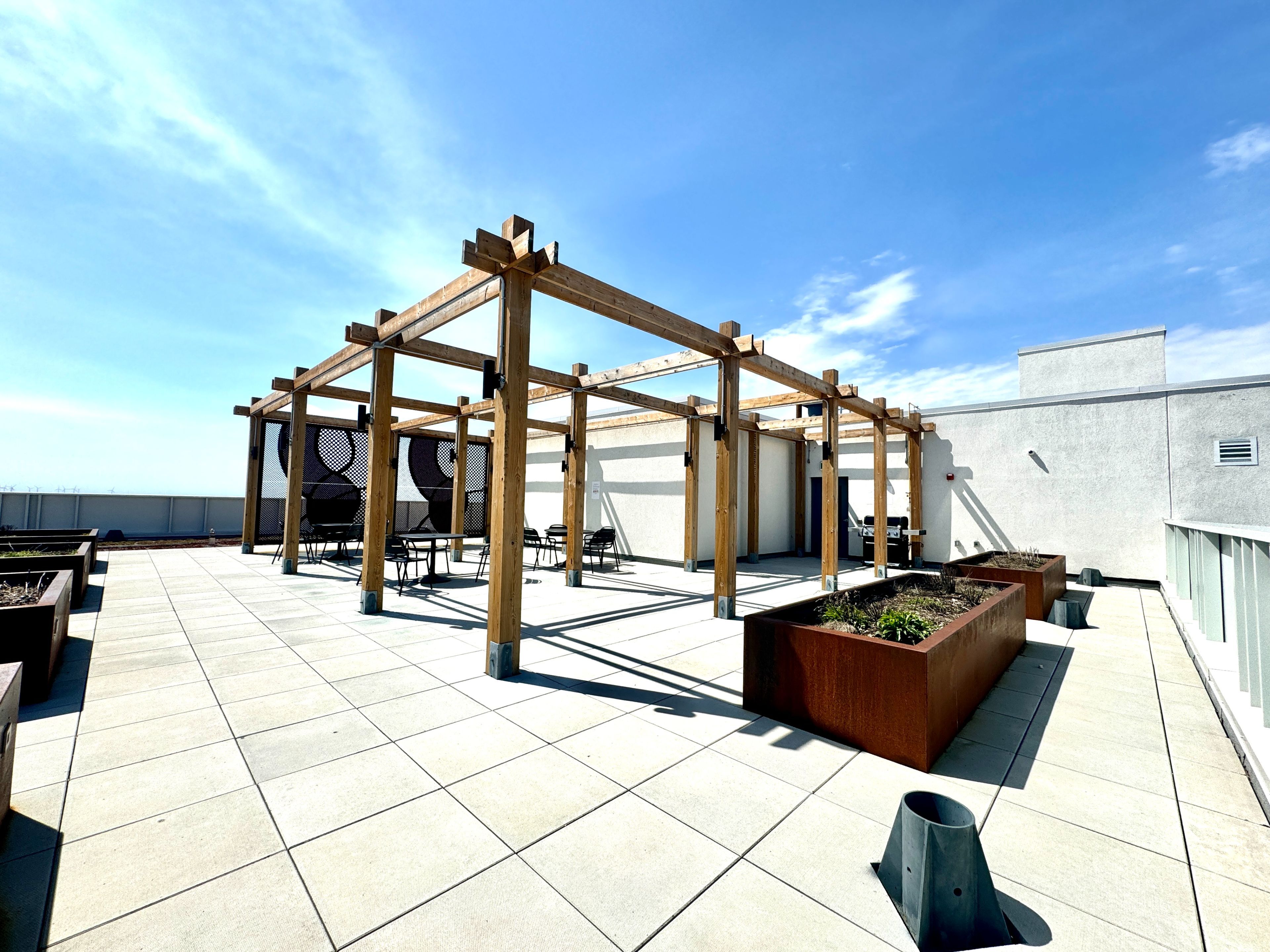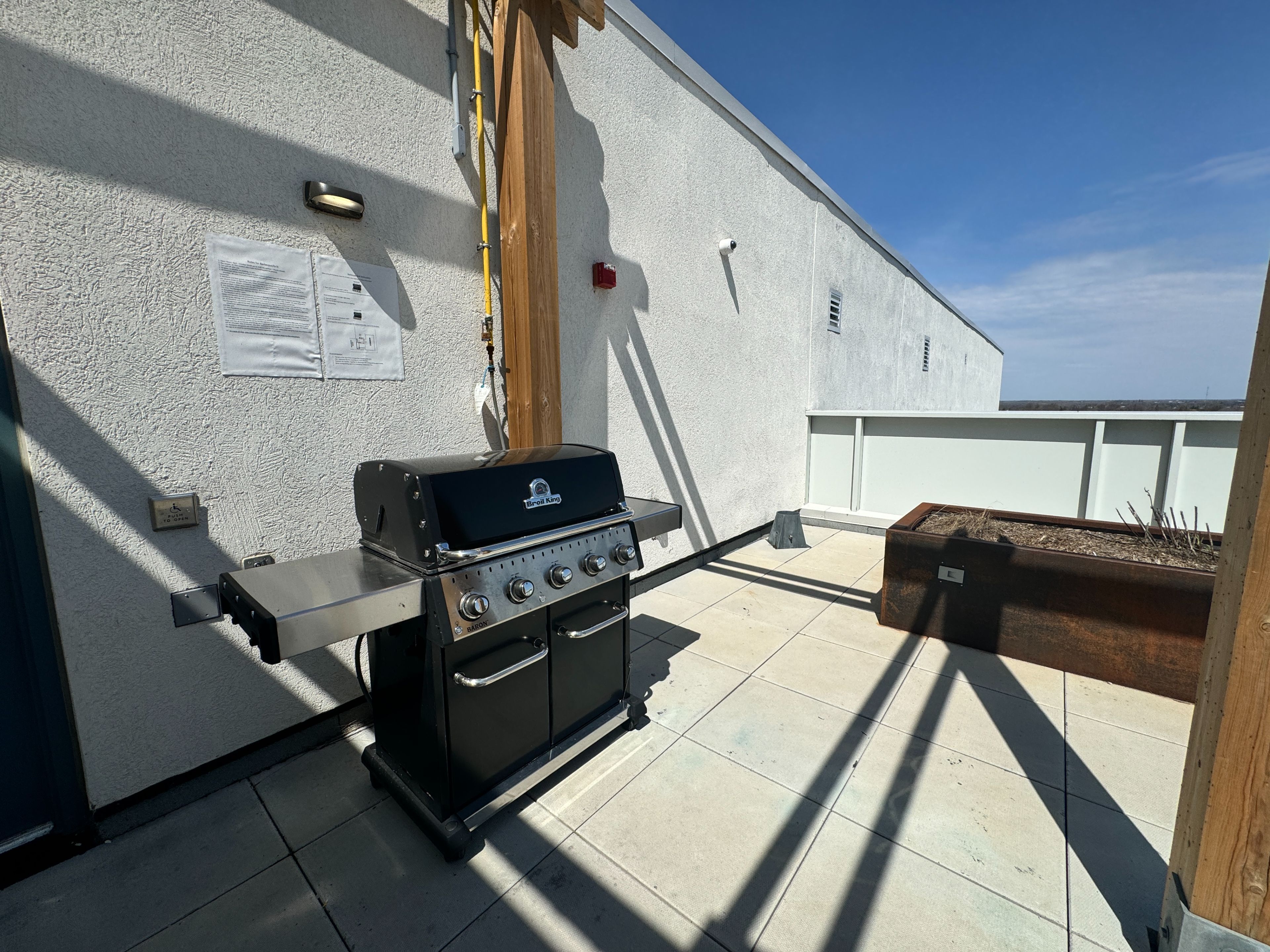• Building amenities include a gym, party room, and rooftop terrace.