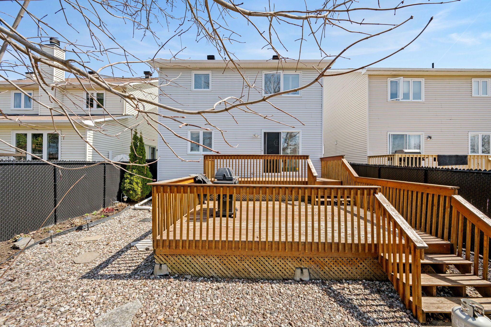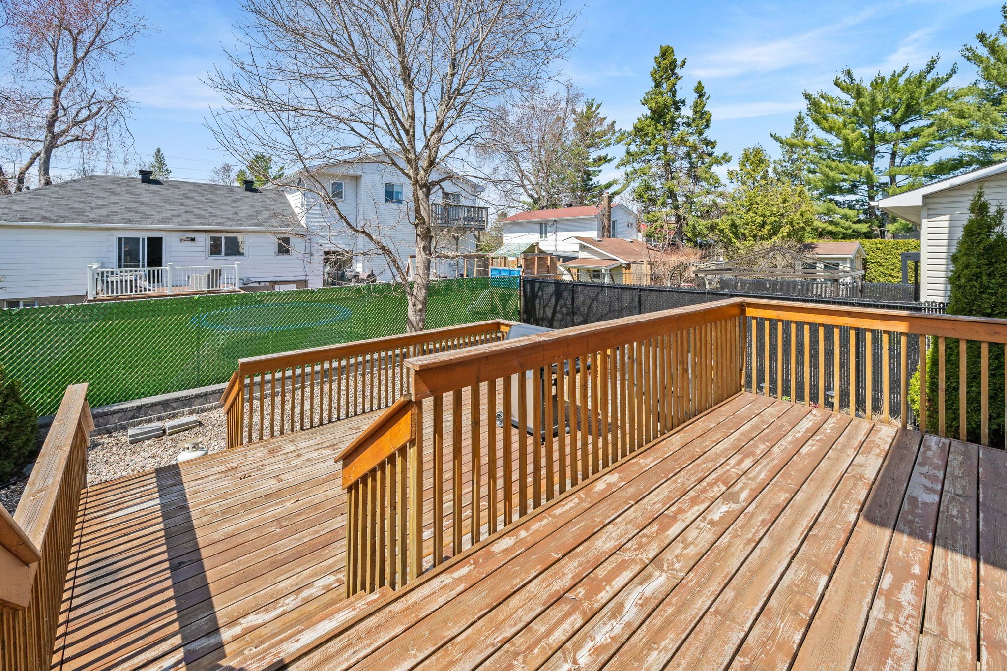 • Private fenced yard with a split-level deck and afternoon sunlight.