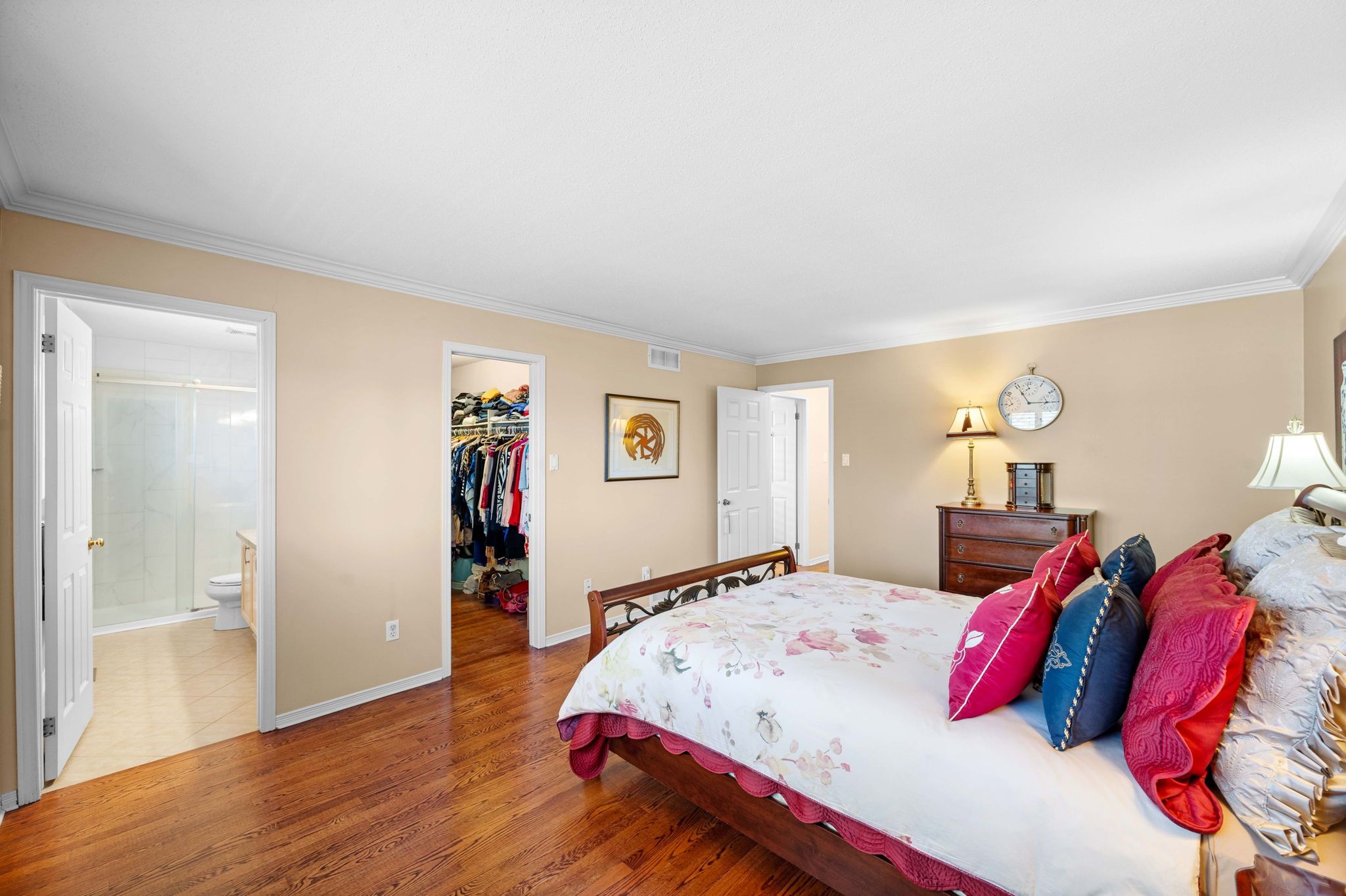 • Spacious master bedroom features a walk-in closet and ensuite.