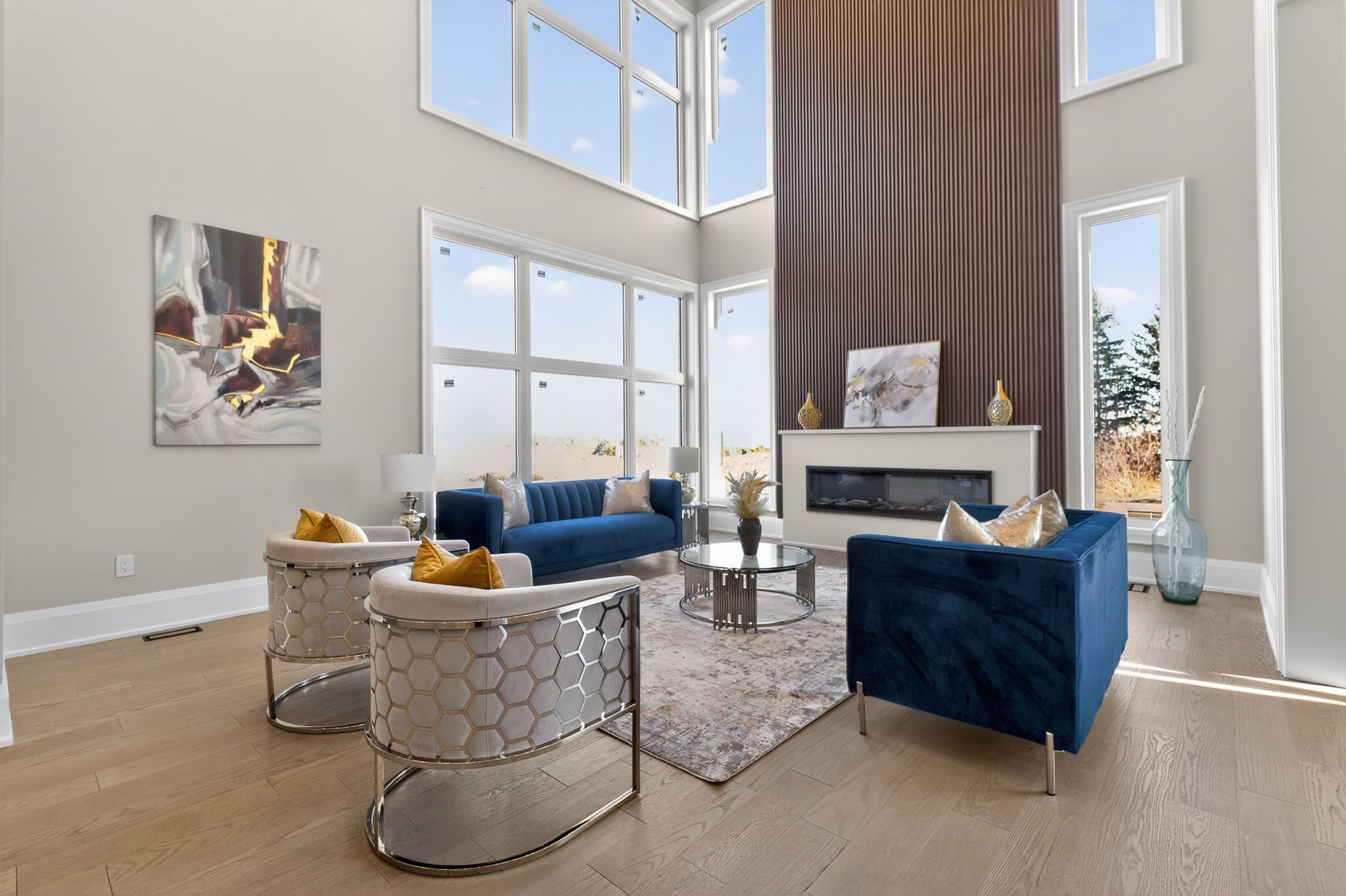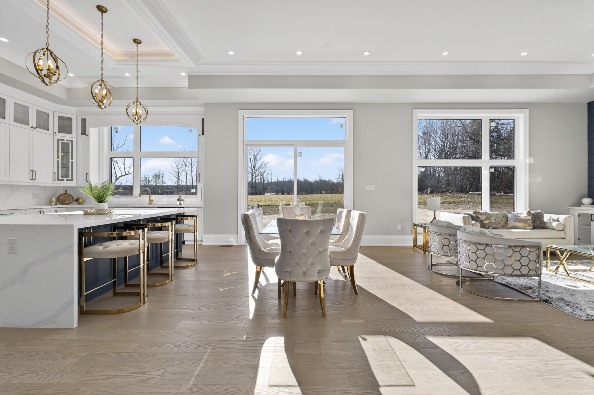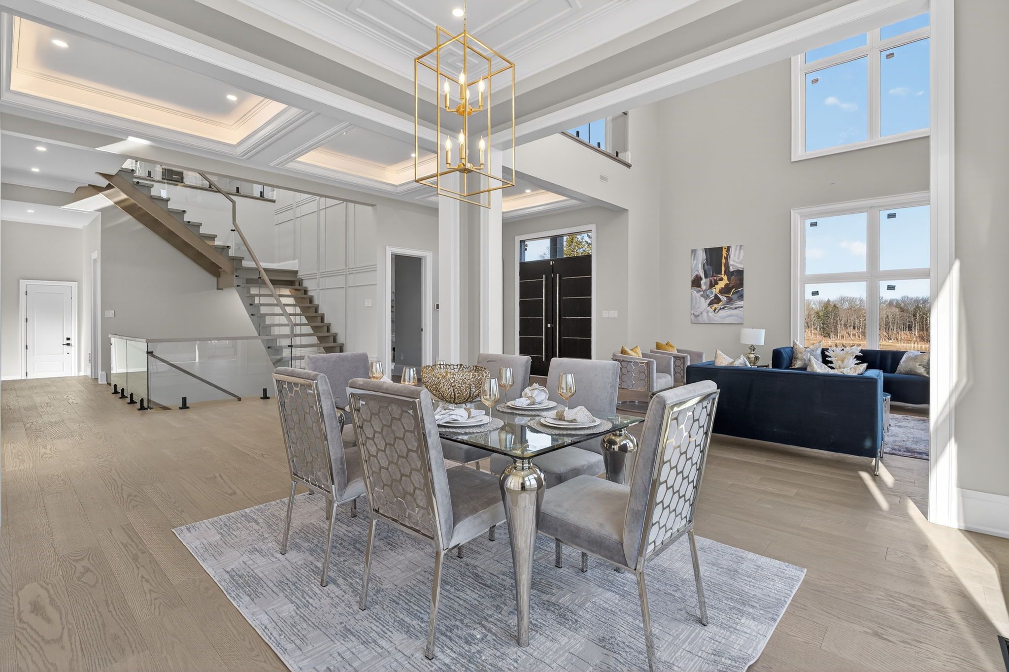Brand new custom-built luxury estate on premium 2. 25-acre east-facing lot! Approx. 8,500 sq ft of finished living space. Featuring 4+1 bedrooms and 8bathrooms with exceptional craftsmanship and high-end finishes throughout. Main floor offers 12-ft ceilings and grand open-concept layout with stunning24-ft coffered ceiling in living room. Gourmet kitchen with premium appliances and modern finishes open to spacious family room with fireplace and backyard views. Main floor office or bedroom with ensuite. Second floor boasts 10-ft ceilings. Luxurious primary suite with private balcony, 6-piece spa-like ensuite and custom walk-in closet. All additional bedrooms feature ensuites and walk-in closets. Includes sitting area, walkout balcony and second-floor laundry. Fully finished basement with 10-ft ceilings featuring bar, media room, gym and additional bedroom with ensuite. Upgrades include heated floors in all bathrooms, spray foam insulation on exterior walls and modern flat roof design. 3-car garage with extra-height doors and extended driveway accommodating 15-20 vehicles. Conveniently located near hwy 407/412 and golf courses. Must see.....