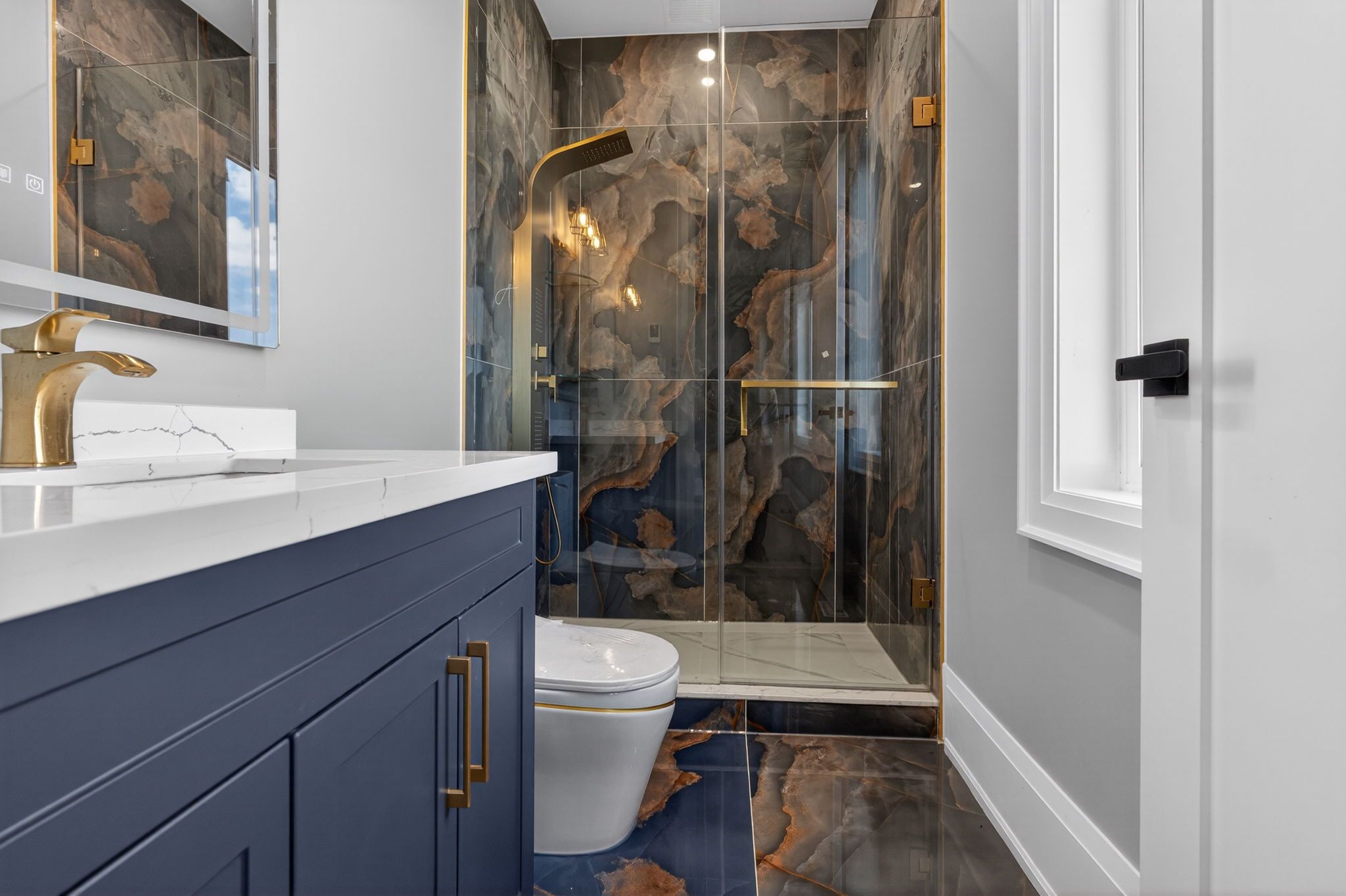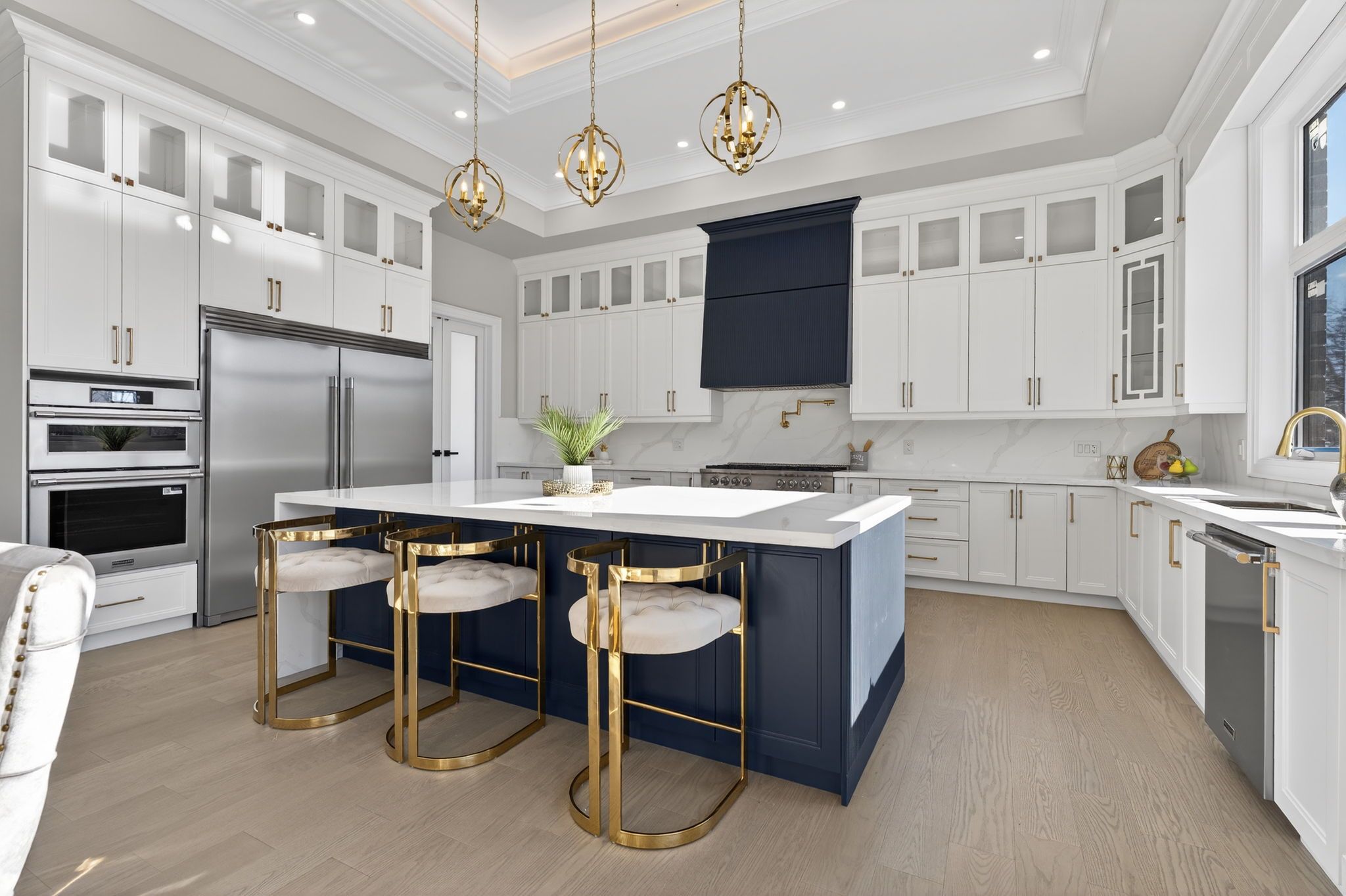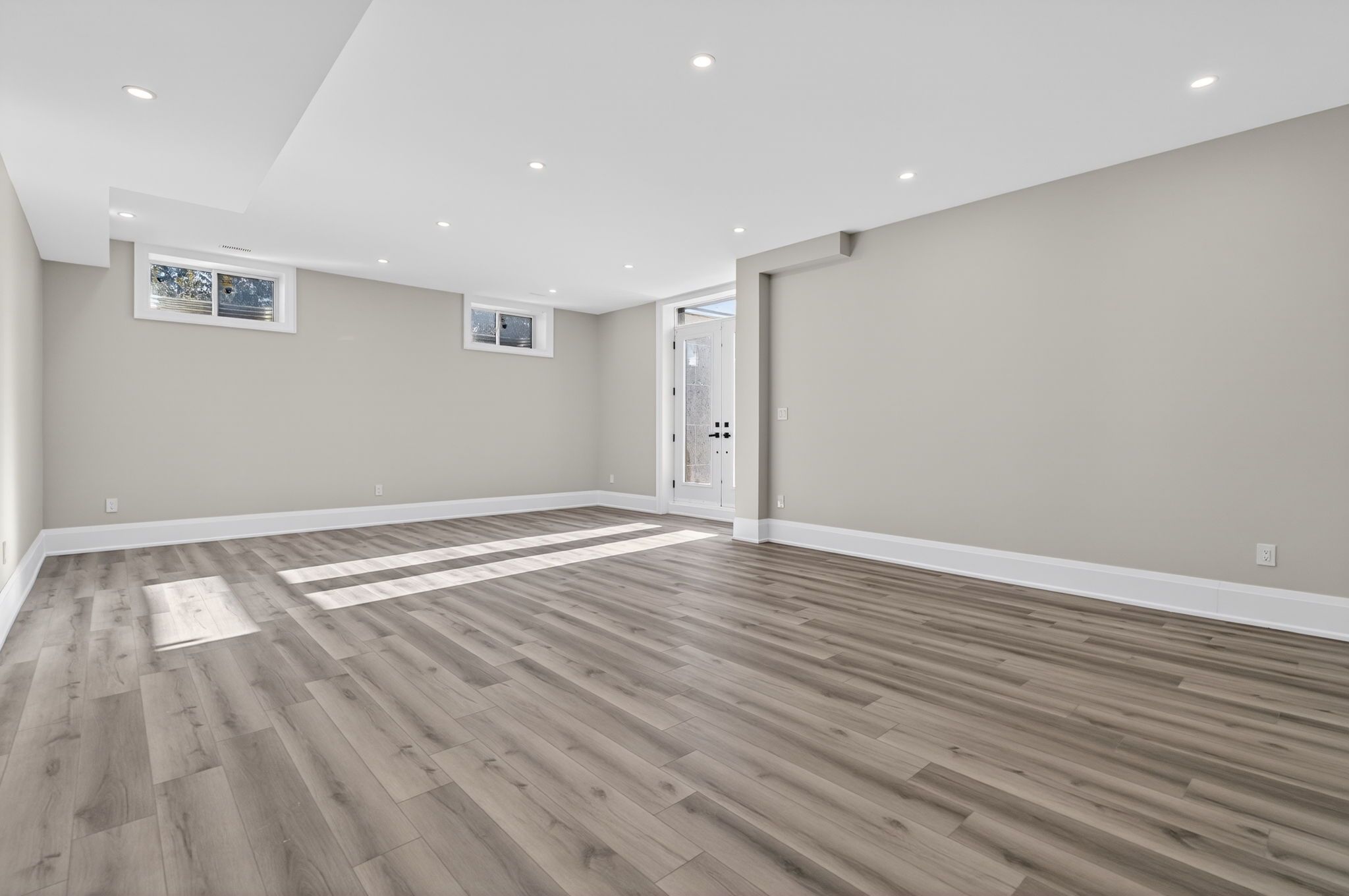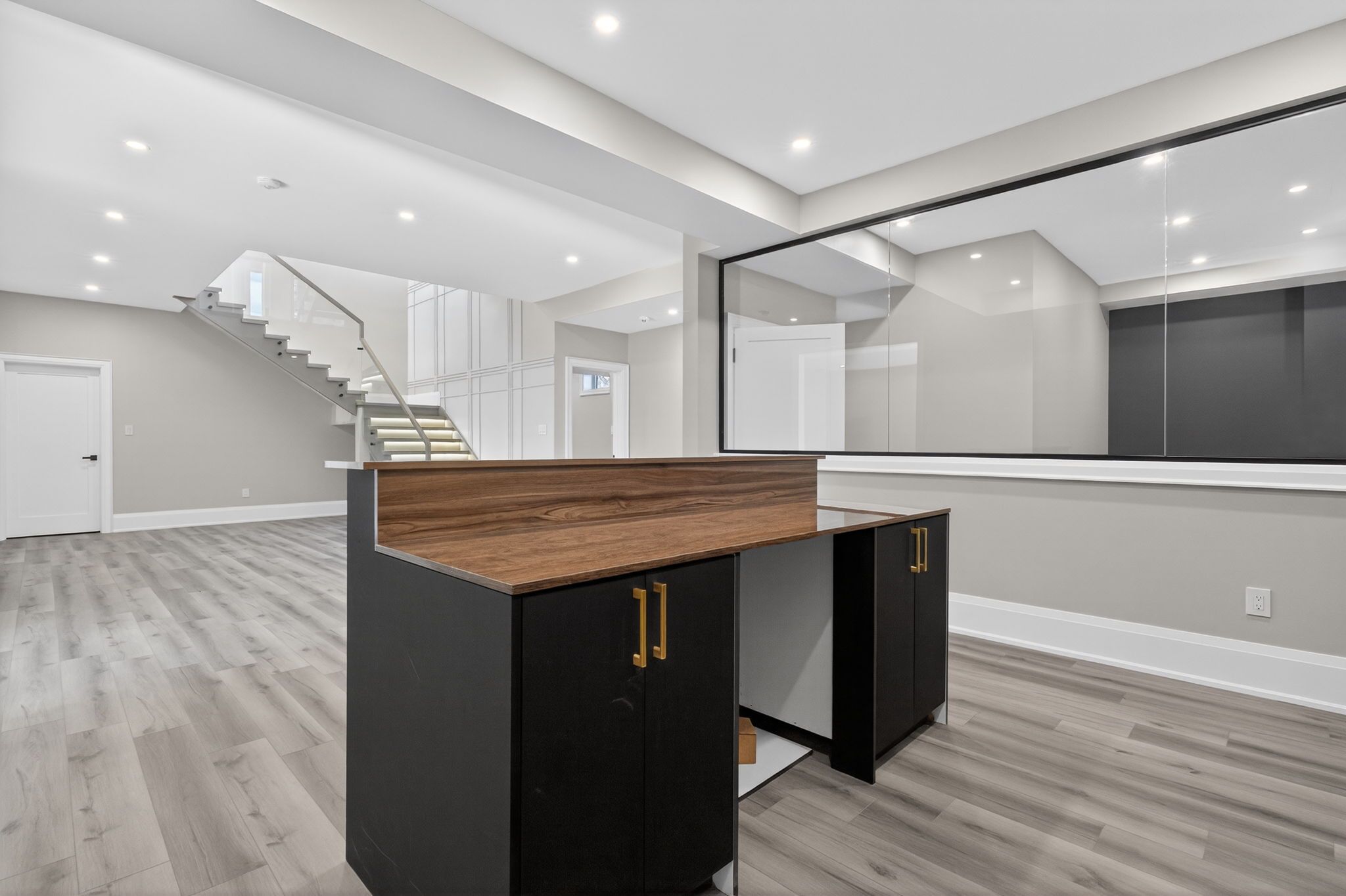 • Fully finished basement with bar, media room, gym, and extra bedroom.