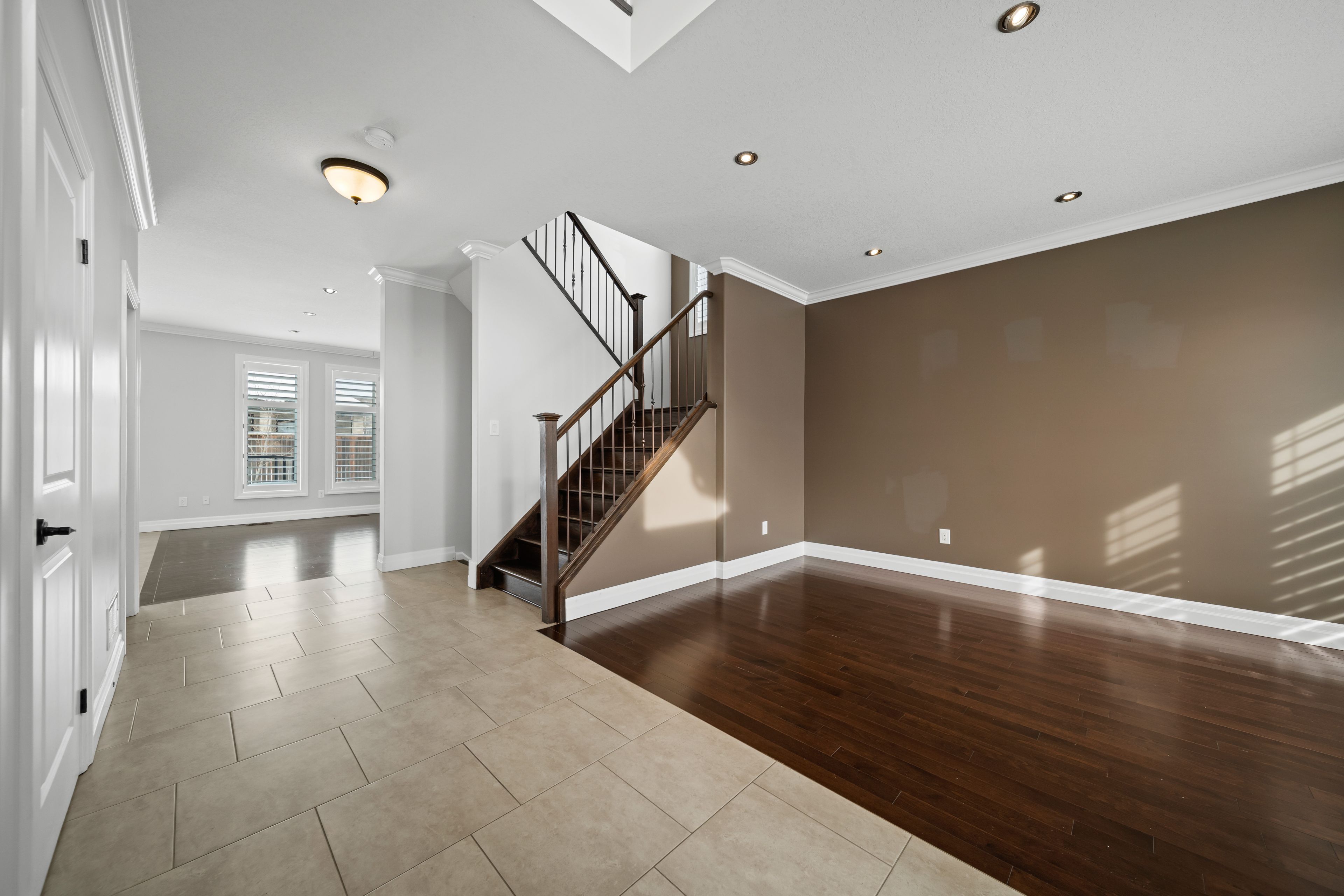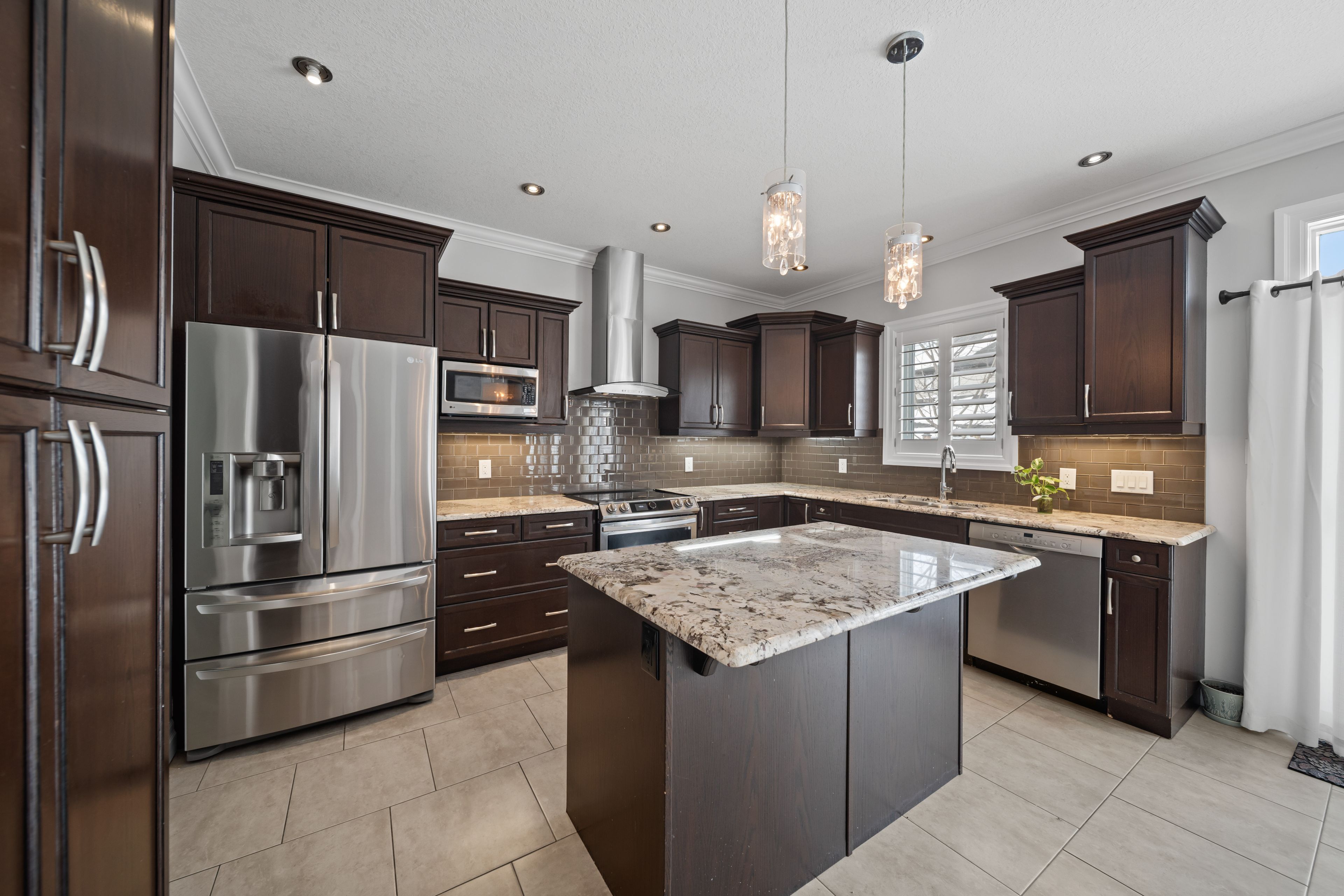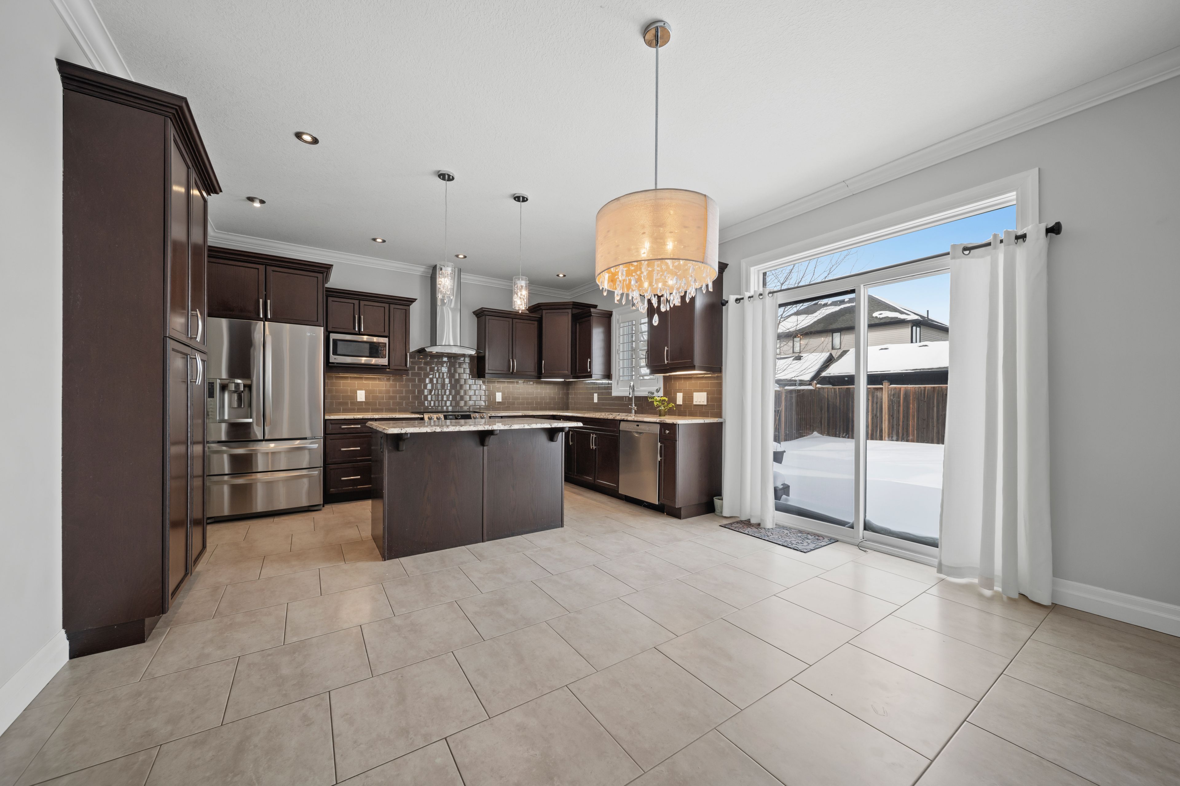Stunning 4-bed, 4-bath home in sought-after talbot village, located in the school zone for the newly opened white pine public school. With nearly 3,000 sq ft of finished living space, this home features a bright foyer, hardwood floors, a spacious open-concept kitchen with granite countertops, gas stove, island, and walk-in pantry. The main floor also includes a family room with gas fireplace and california shutters, a separate dining area, and a convenient laundry/mudroom with built-in cubbies and access to the heated 2-car garage. Upstairs you'll find a luxurious primary suite with a large walk-in closet and 5-pc ensuite, plus 3 additional bedrooms and a 4-pc bath. The finished lower level offers a large family room with surround sound, pot lights, and a beautiful 4-pc bath with marble flooring. Outside, enjoy a custom deck with glass railing, a concrete driveway, and professionally landscaped yard. Located near parks, trails, transit, and shopping.