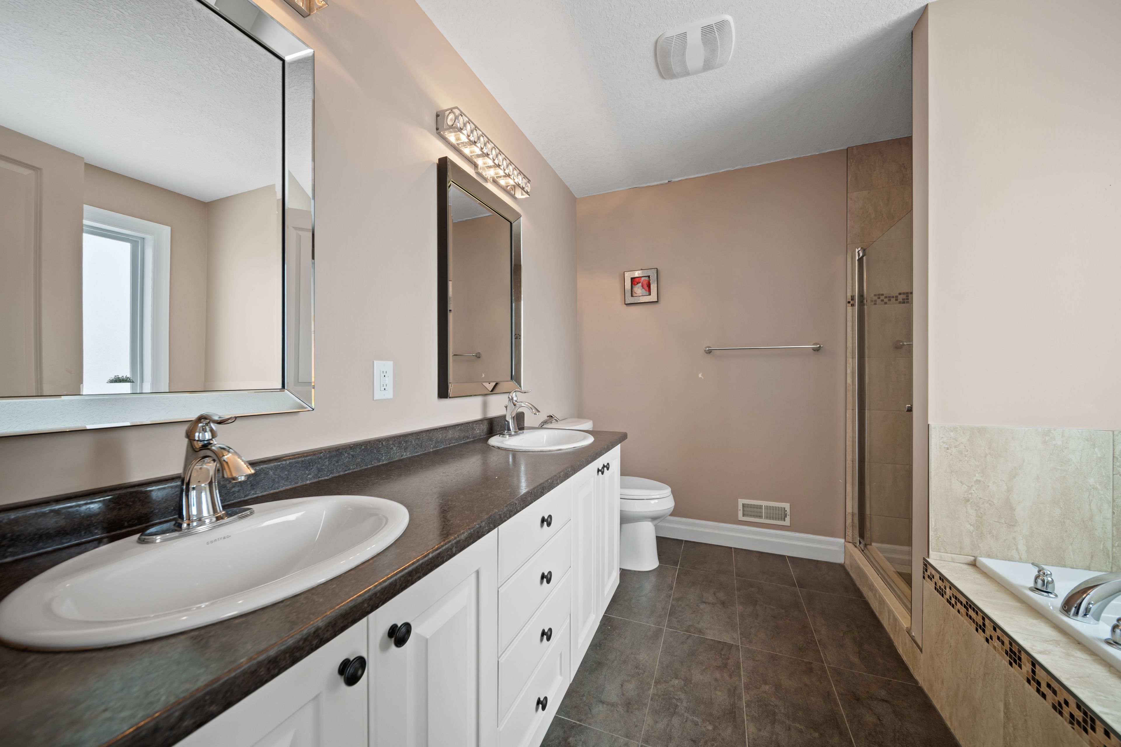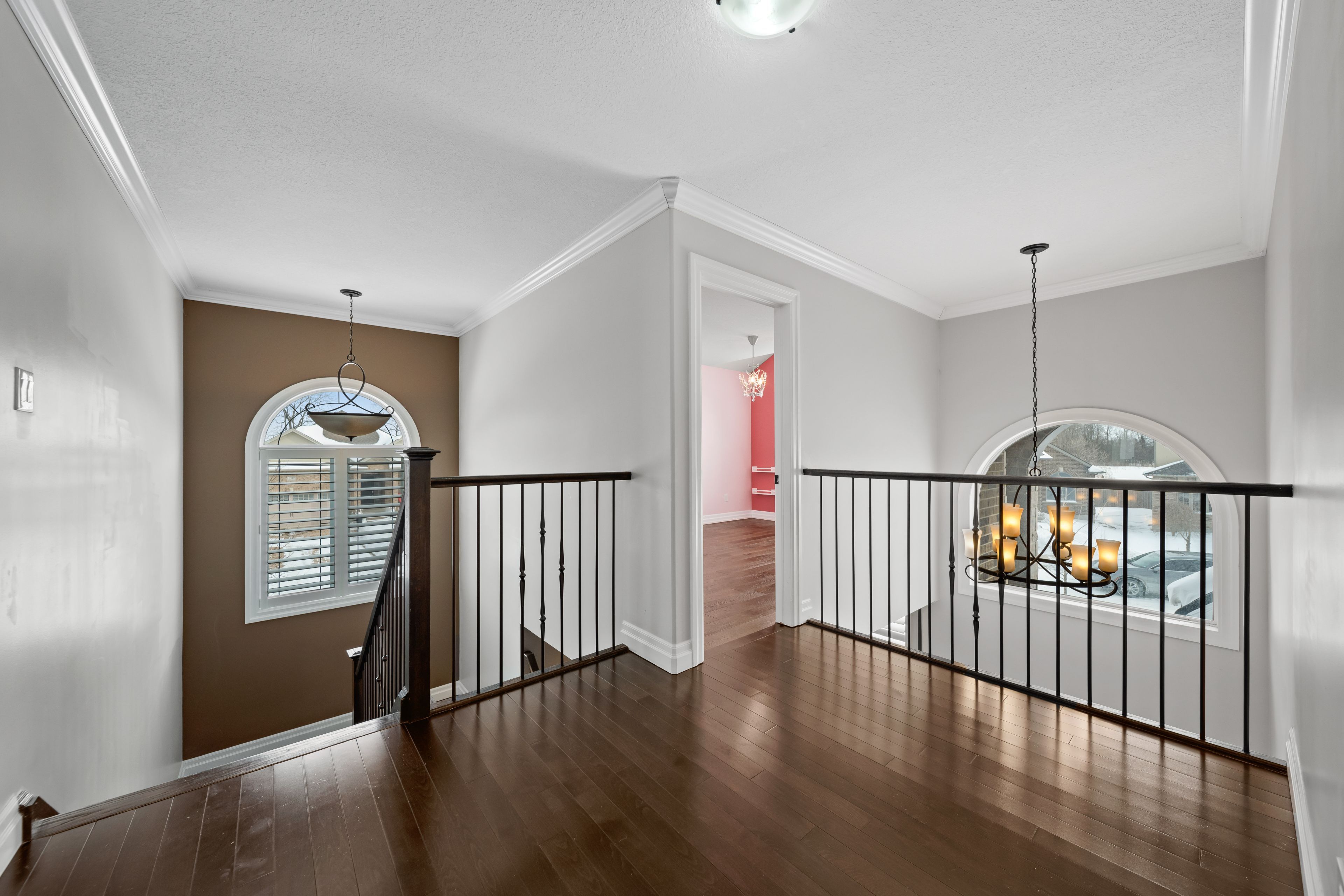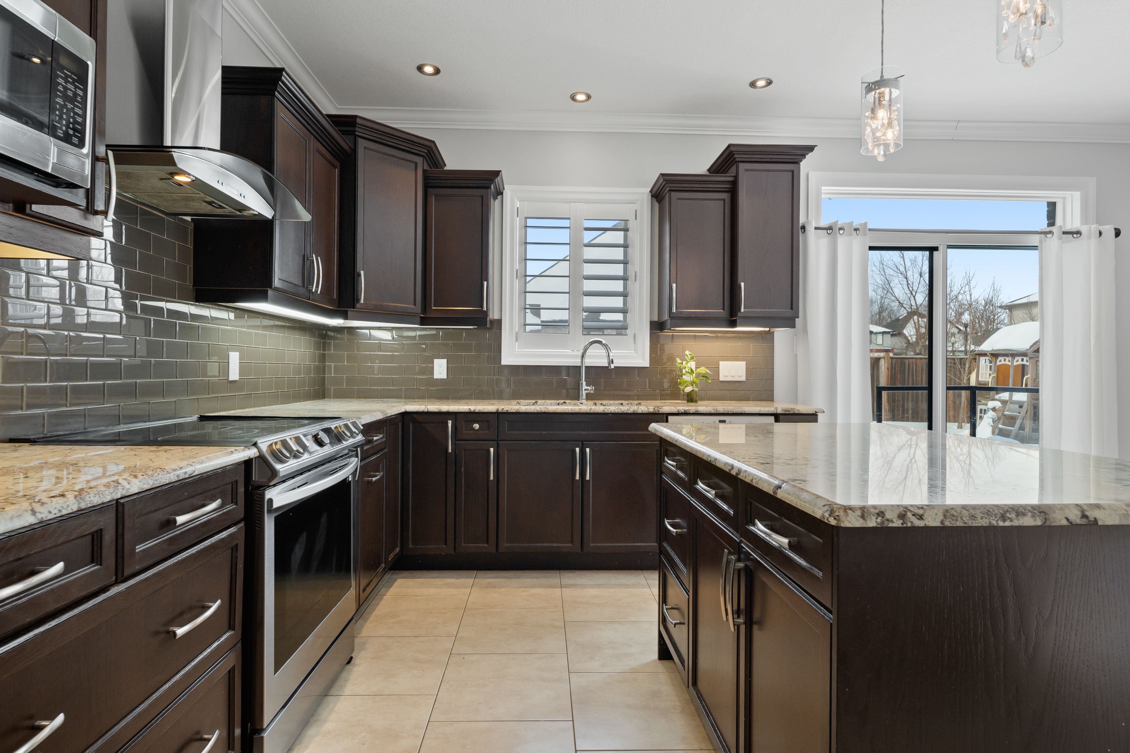 Stunning 4-bed, 4-bath home in sought-after talbot village, located in the school zone for the newly opened white pine public school. With nearly 3,000 sq ft of finished living space, this home features a bright foyer, hardwood floors, a spacious open-concept kitchen with granite countertops, gas stove, island, and walk-in pantry. The main floor also includes a family room with gas fireplace and california shutters, a separate dining area, and a convenient laundry/mudroom with built-in cubbies and access to the heated 2-car garage. Upstairs you'll find a luxurious primary suite with a large walk-in closet and 5-pc ensuite, plus 3 additional bedrooms and a 4-pc bath. The finished lower level offers a large family room with surround sound, pot lights, and a beautiful 4-pc bath with marble flooring. Outside, enjoy a custom deck with glass railing, a concrete driveway, and professionally landscaped yard. Located near parks, trails, transit, and shopping.
