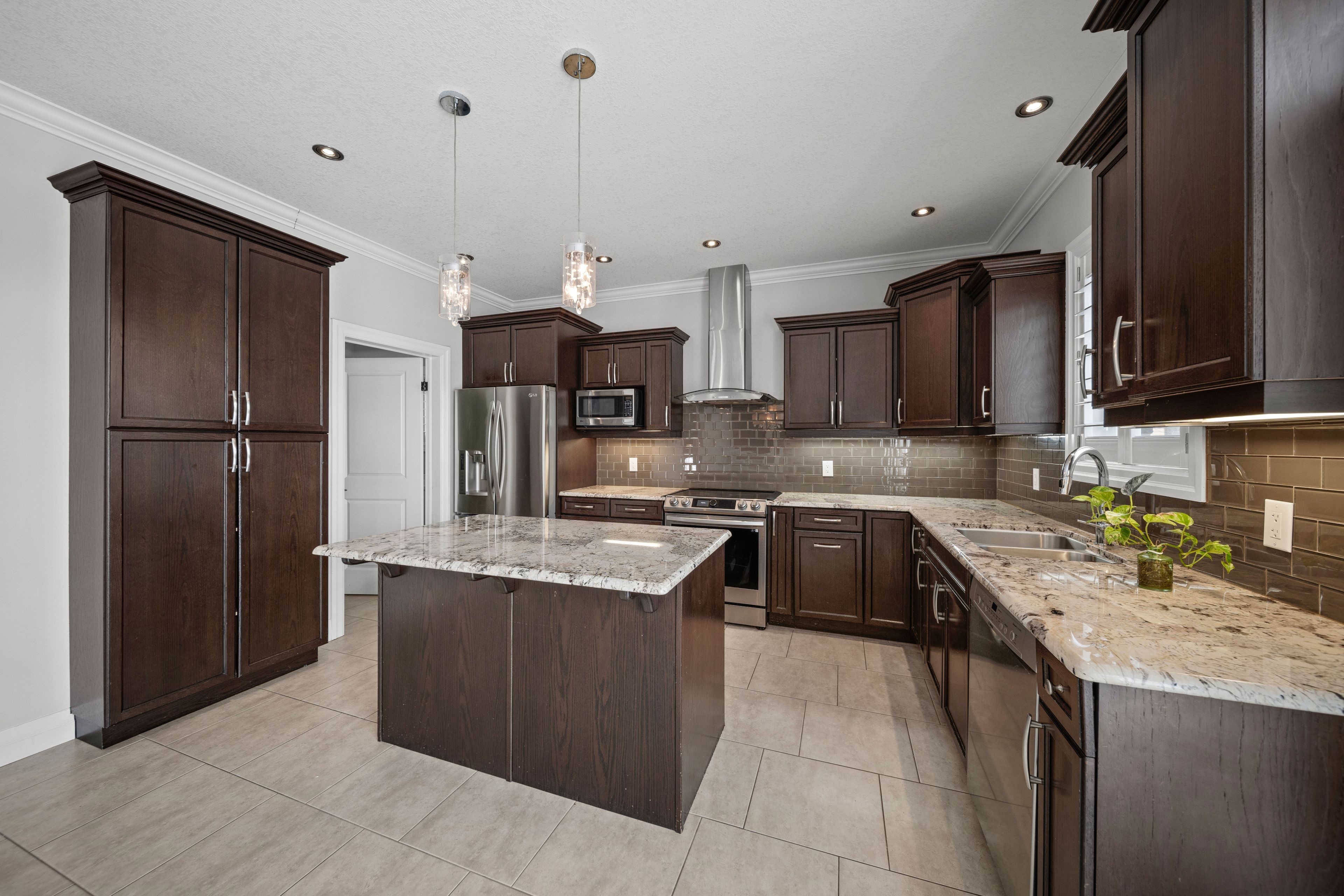 • Open-concept kitchen features granite countertops and a walk-in pantry.