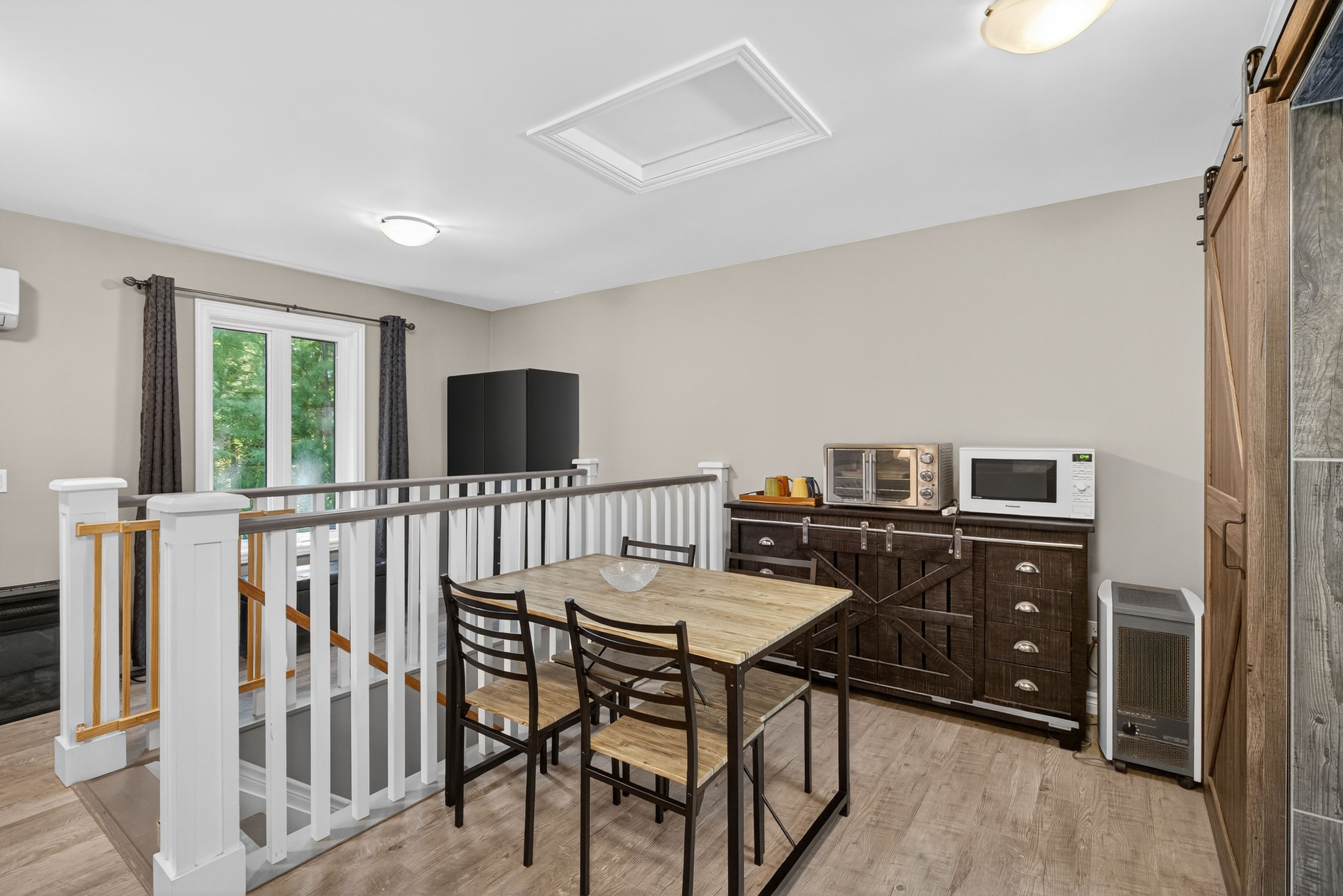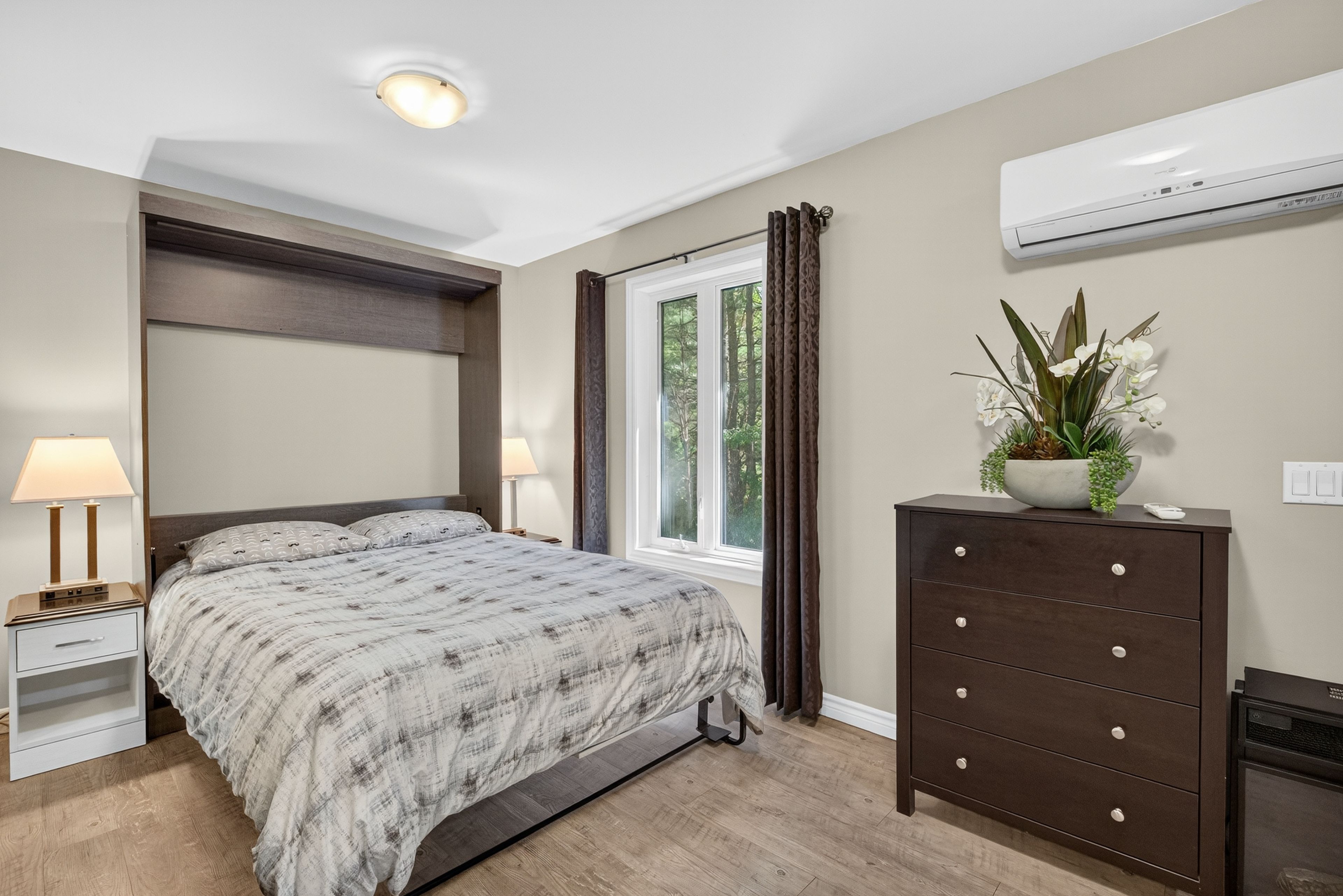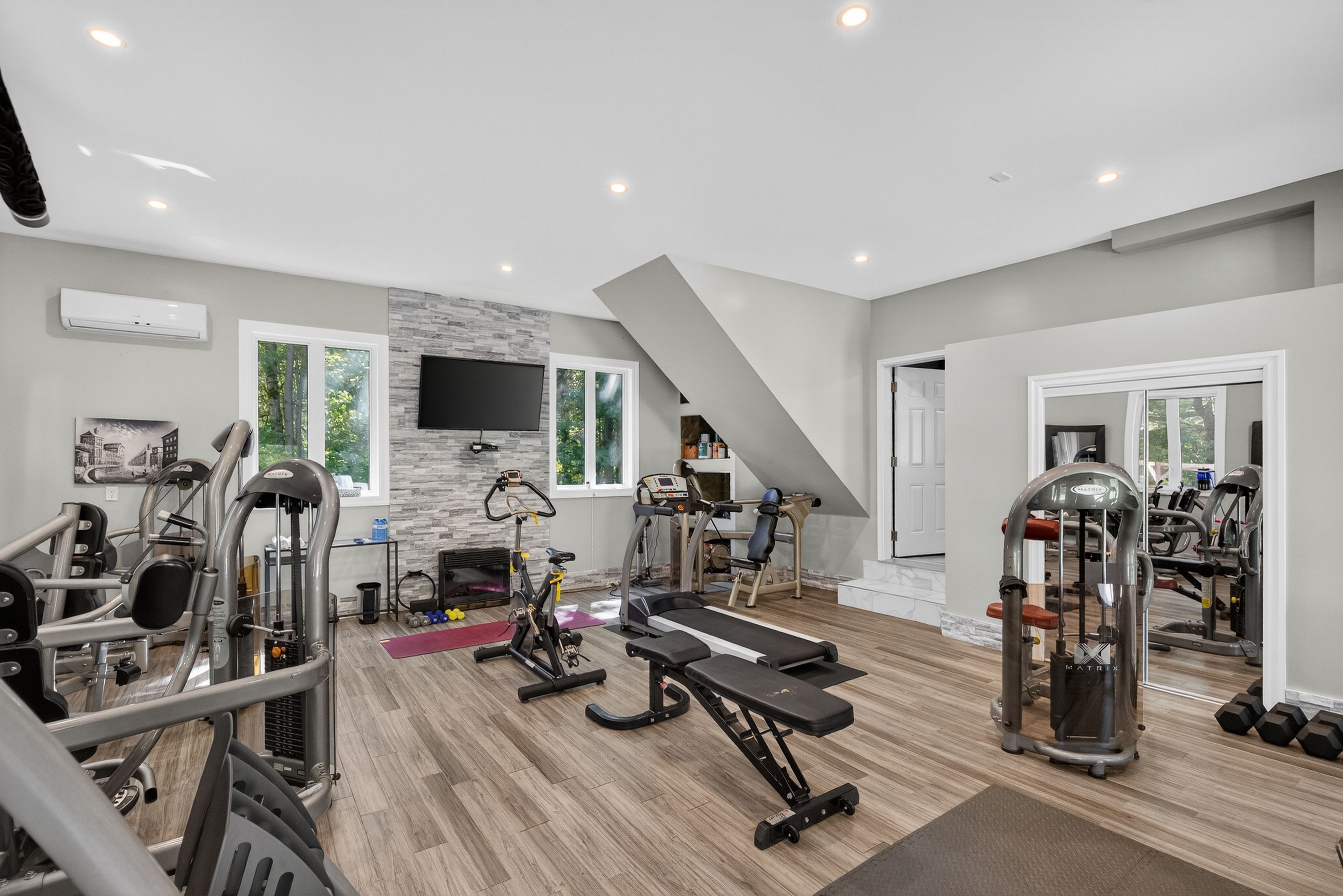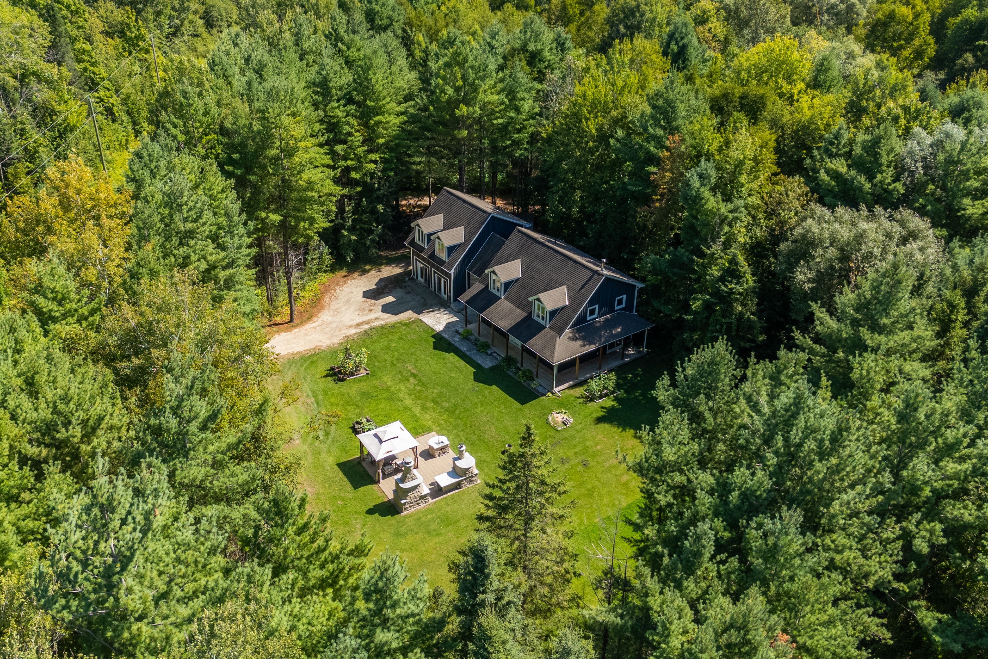 Welcome to this stunning custom-built home, perfectly nestled on a picturesque 1. 4-acre lot. Surrounded by nature, this beautifully updated 3+1bedroom home blends charm, comfort, and modern convenience in one unforgettable setting. Step inside to an inviting open-concept layout where the kitchen, dining room, and living room seamlessly flow together perfect for family living and entertaining. A cozy wood-burning stove creates warmth and ambiance, while the bright, airy spaces make every room feel welcoming. Upstairs, the primary retreat boasts a luxurious four-piece ensuite, while two generously sized bedrooms for the kids share another full four-piece bathroom. Adding incredible versatility, a full apartment sits above the garage with its own separate entrance at the back. Featuring a private foyer, an elegant four-piece bathroom, an electric fireplace, and ductless heating and cooling, this space is ideal as an in-law suite or private retreat for family. Currently, it is successfully being rented as an airbnb, generating an impressive annual income of approximately $25,000. Outdoors, the charm continues with a wraparound porch that overlooks the serene property. Summers here are meant for entertaining with a fully equipped outdoor space, including a wood-fired pizza oven, fireplace, and barbecue with running water and hydro an absolute dream for hosting friends and creating memories. The garage has been thoughtfully converted into a professional fitness studio, perfect for running a home-based business or pursuing your passion. With ductless heating and air conditioning, its functional year-round and can easily be transformed back into a two-car garage if desired. This home is a rare opportunity that offers modern updates, versatile living options, income potential, and one-of-a-kind outdoor features all in the peaceful, family-friendly community of new lowell. Close to base borden in angus, the beaches of wasaga, the charming town of creemore, and collingwood!