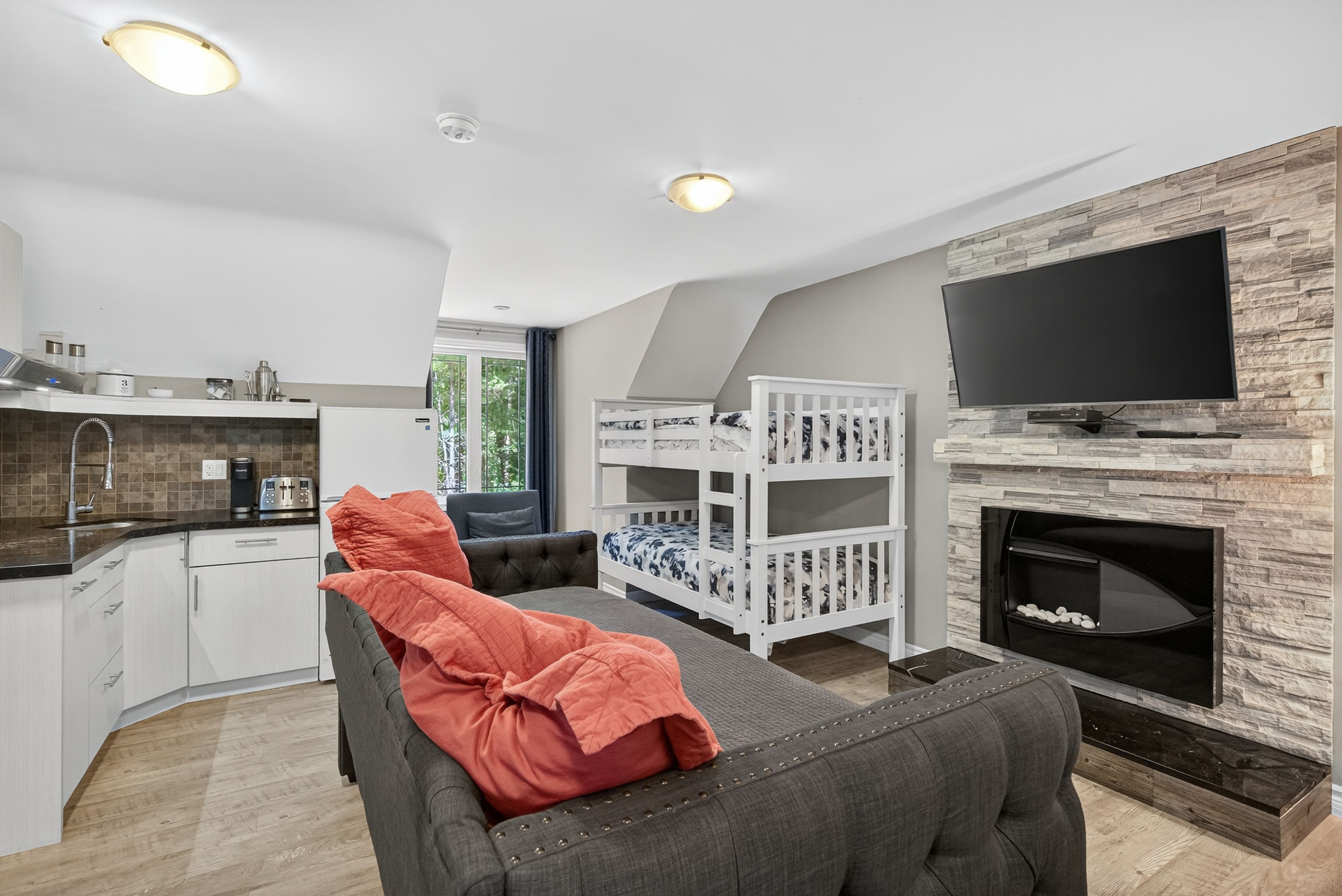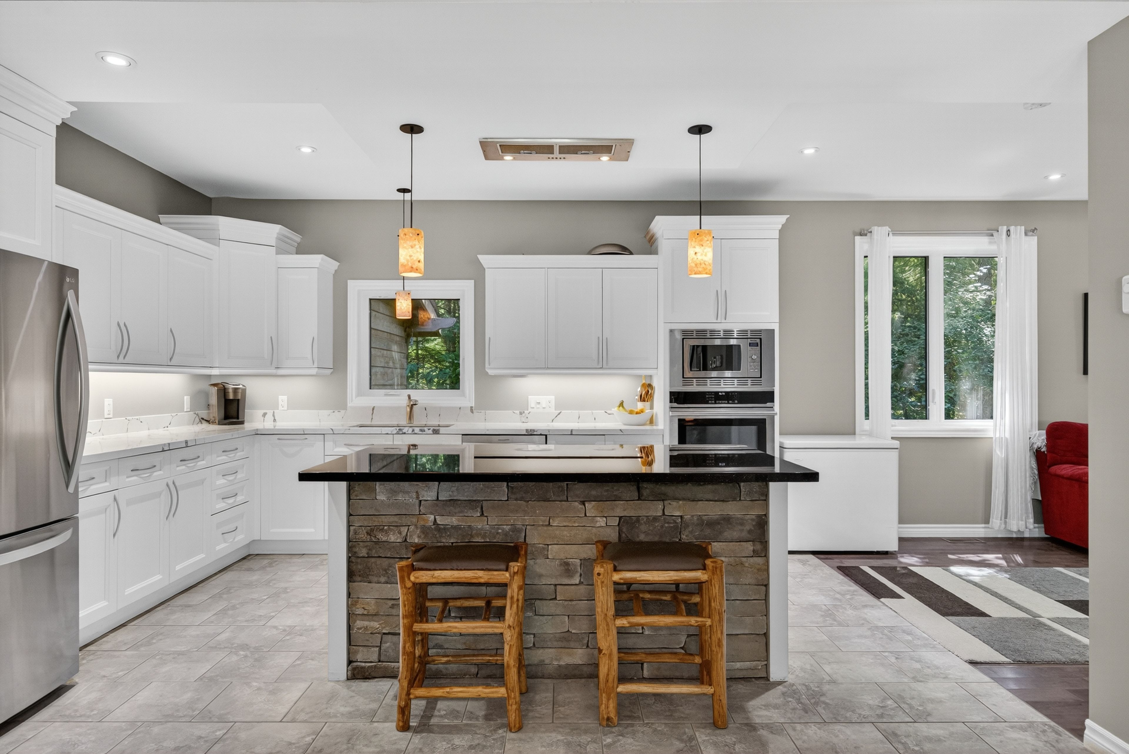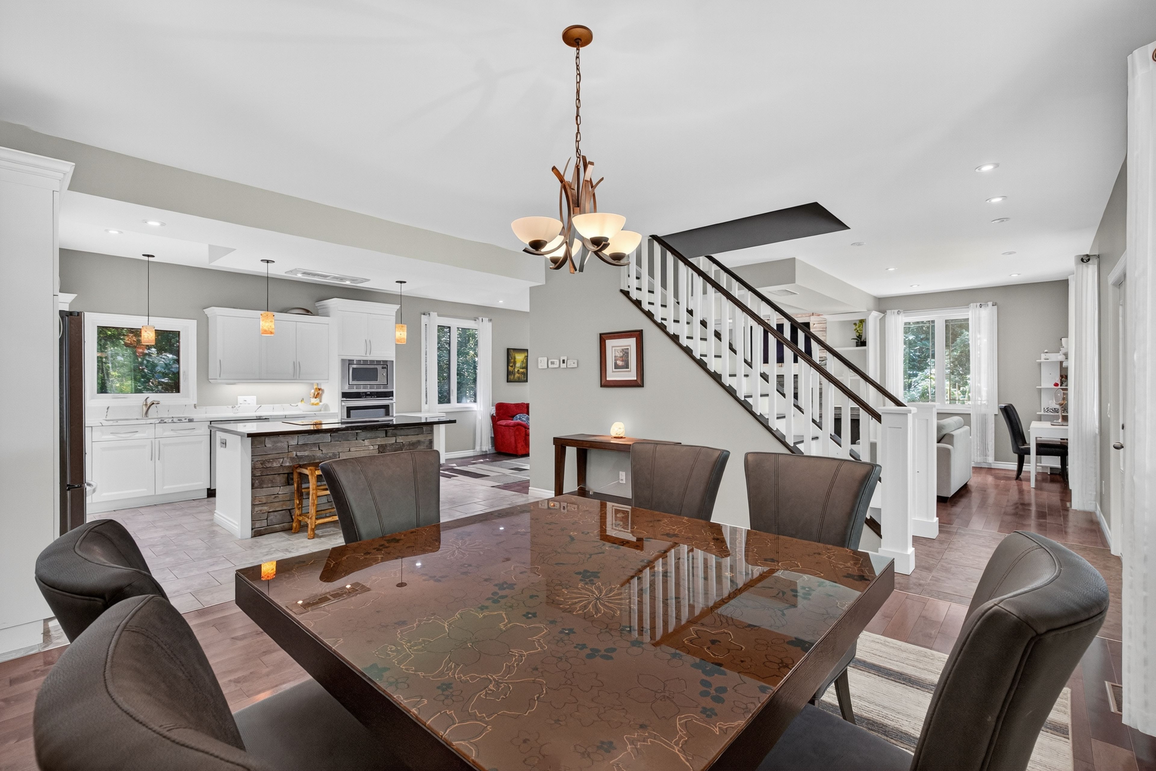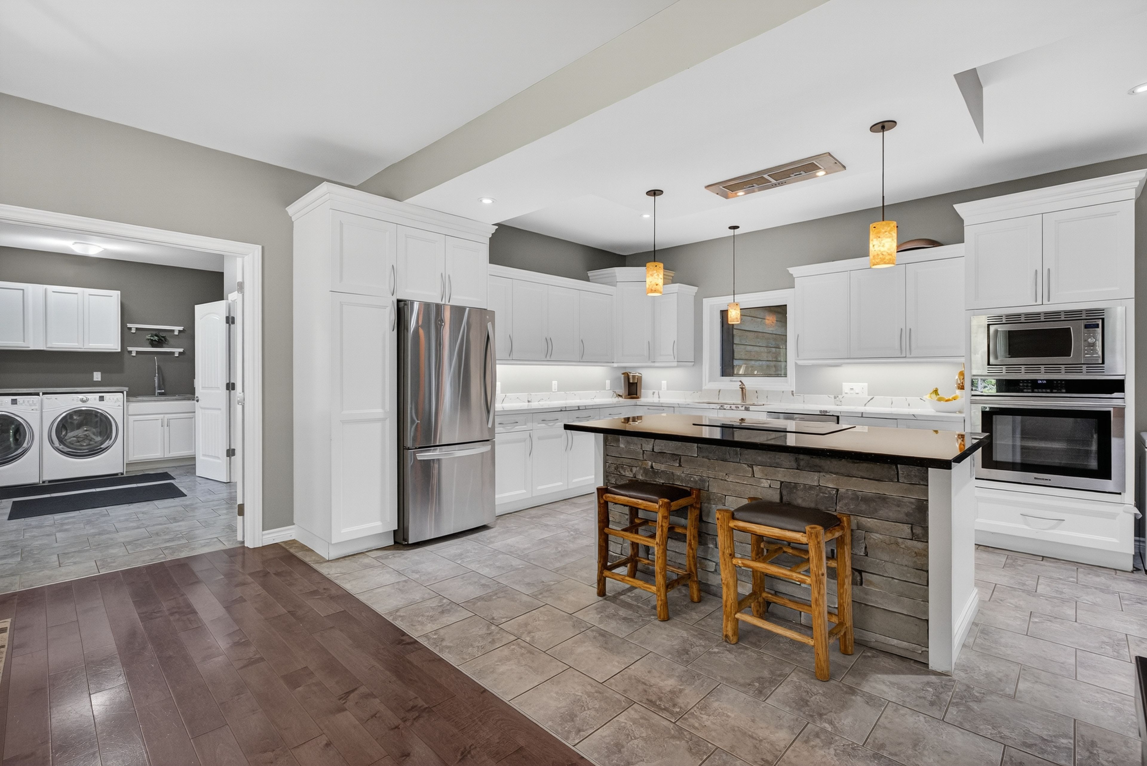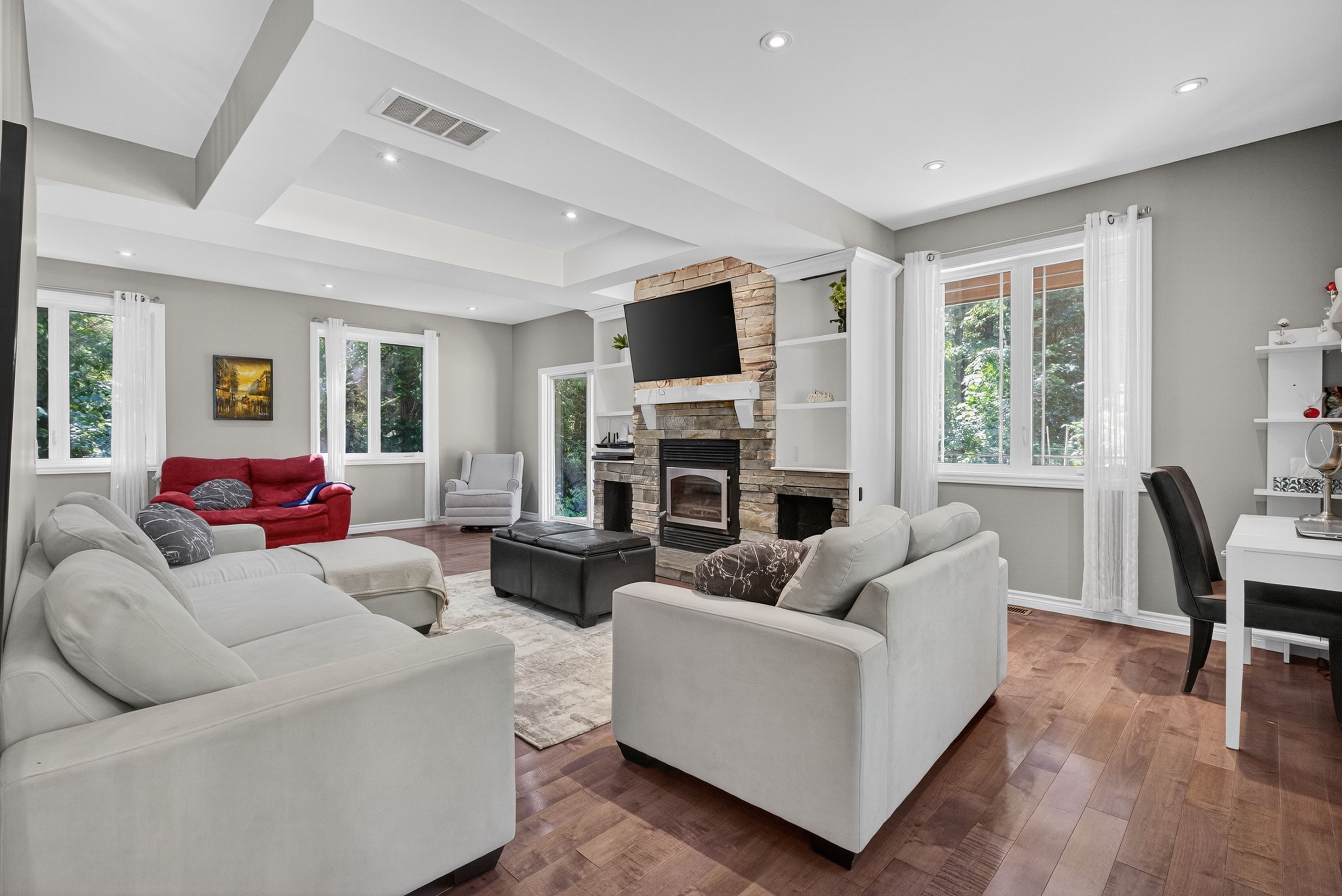 Welcome to this stunning custom-built home, perfectly nestled on a picturesque 1. 4-acre lot. Surrounded by nature, this beautifully updated 3+1bedroom home blends charm, comfort, and modern convenience in one unforgettable setting. Step inside to an inviting open-concept layout where the kitchen, dining room, and living room seamlessly flow together perfect for family living and entertaining. A cozy wood-burning stove creates warmth and ambiance, while the bright, airy spaces make every room feel welcoming. Upstairs, the primary retreat boasts a luxurious four-piece ensuite, while two generously sized bedrooms for the kids share another full four-piece bathroom. Adding incredible versatility, a full apartment sits above the garage with its own separate entrance at the back. Featuring a private foyer, an elegant four-piece bathroom, an electric fireplace, and ductless heating and cooling, this space is ideal as an in-law suite or private retreat for family. Currently, it is successfully being rented as an airbnb, generating an impressive annual income of approximately $25,000. Outdoors, the charm continues with a wraparound porch that overlooks the serene property. Summers here are meant for entertaining with a fully equipped outdoor space, including a wood-fired pizza oven, fireplace, and barbecue with running water and hydro an absolute dream for hosting friends and creating memories. The garage has been thoughtfully converted into a professional fitness studio, perfect for running a home-based business or pursuing your passion. With ductless heating and air conditioning, its functional year-round and can easily be transformed back into a two-car garage if desired. This home is a rare opportunity that offers modern updates, versatile living options, income potential, and one-of-a-kind outdoor features all in the peaceful, family-friendly community of new lowell. Close to base borden in angus, the beaches of wasaga, the charming town of creemore, and collingwood!
