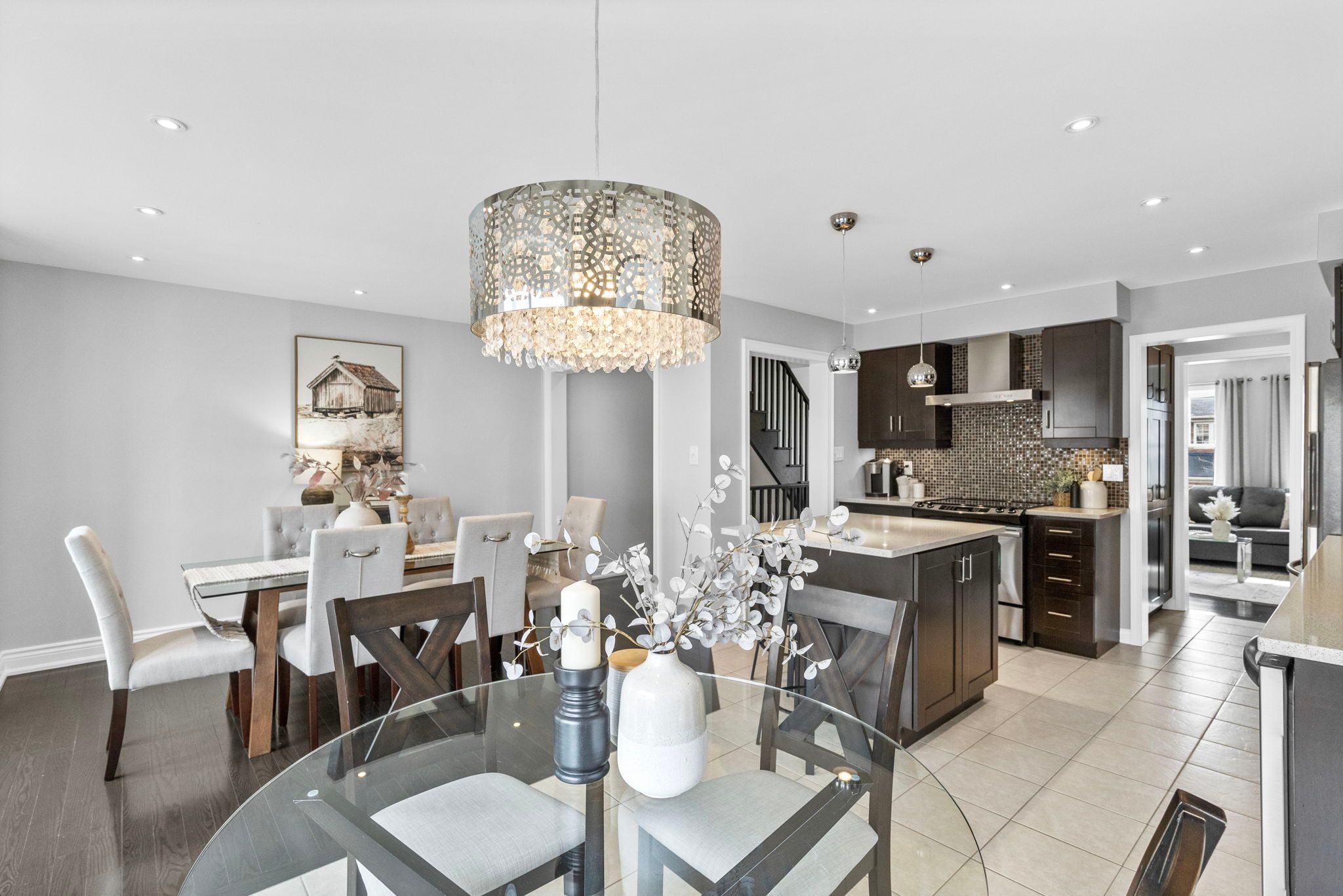 • Rich hardwood floors and elegant oak staircases throughout.