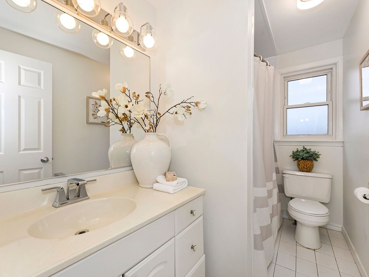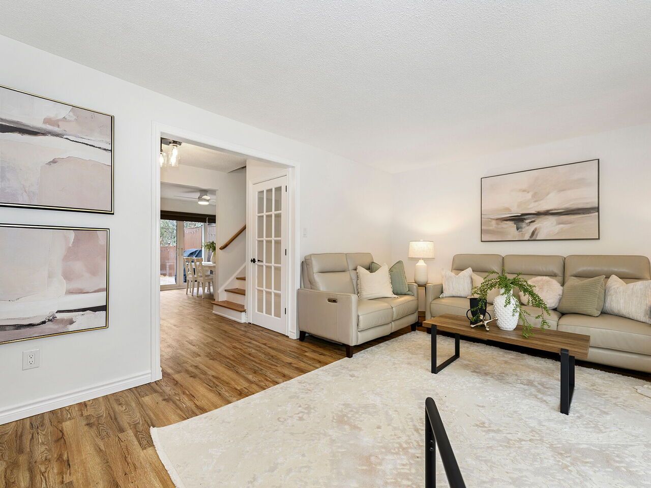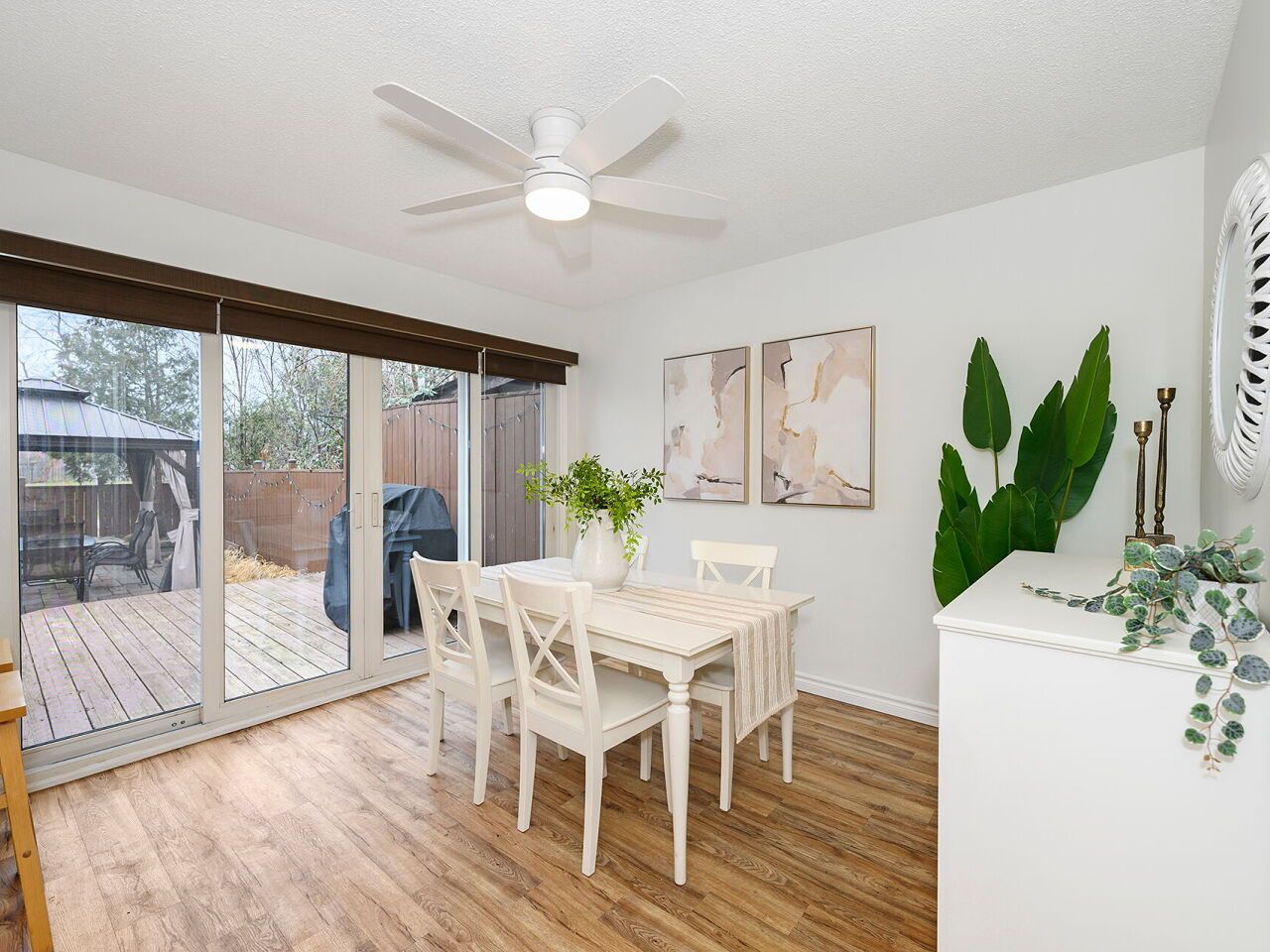 Welcome to this beautiful freehold semi-detached home tucked away on a quiet crescent in south burlington's sought-after longmoor community. Backing onto serene green space and the centennial bikeway, this rare pie-shaped lot offers exceptional privacy and outdoor enjoyment. Inside, the home features 4 bedrooms, 2 full bathrooms, and 1336 square feet of comfortable living space. The spacious and inviting living room is highlighted by an oversized bay window that fills the home with natural light. A functional kitchen with peninsula flows seamlessly into the eat-in dining area, complete with sliding doors to the backyard. The fully finished basement adds incredible value, featuring a modern 3-piece bathroom with stand-up shower and versatile space perfect for a family room, guest suite, or home office. Step outside to an entertainer's dream backyard with a concrete patio, hot tub, and a custom built tv cabinet-ideal for hosting year-round. With parking for up to 6 cars, this home is as practical as it is impressive. Bonus updates include: windows in front bedrooms and kitchen (2025), roof (2017), furnace and ac (2025), driveway (2020), back patio and front steps (2020), hot tub (2021), outdoor tv cabinet (2020), esa certified (2025). Basement and bathroom renovation (2025). This home is conveniently located close to major amenities, highways, parks, schools, and more, this home offers the perfect blend of lifestyle, comfort, and location, you won't want to miss this one!