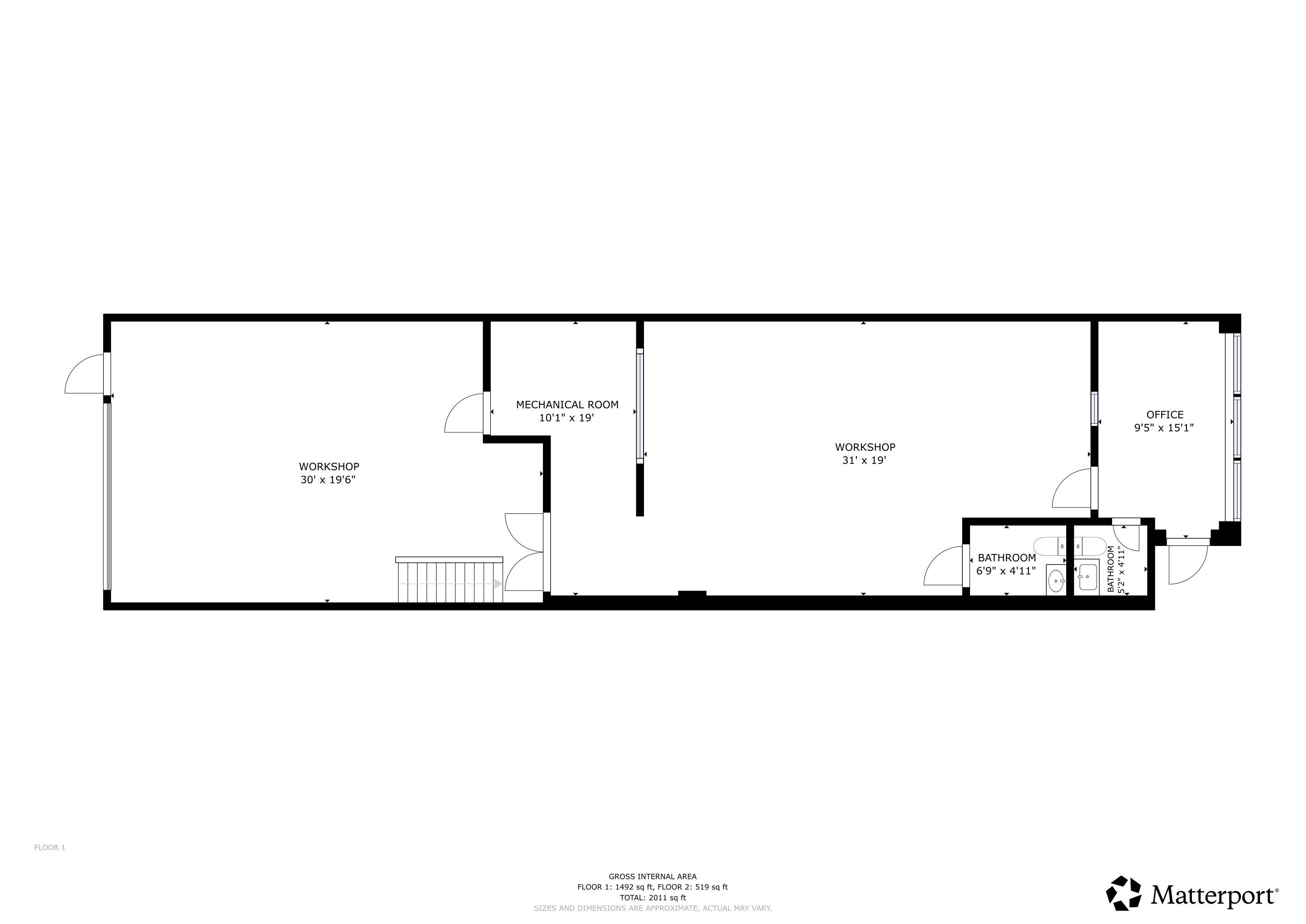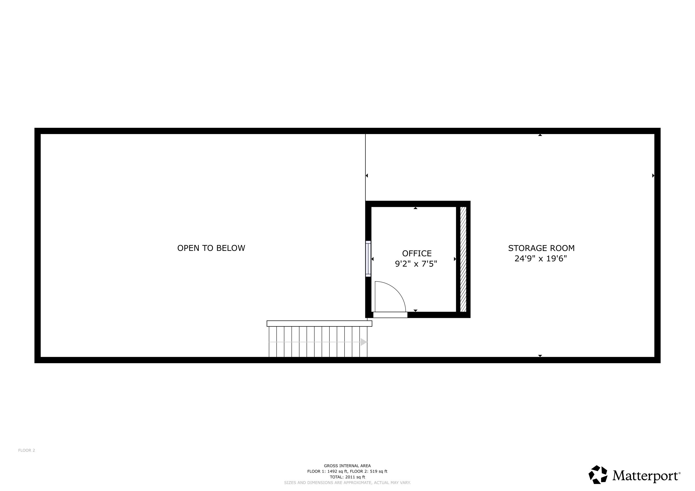 • Approximately 1600SF plus an additional 500SF mezzanine for extra office or storage.