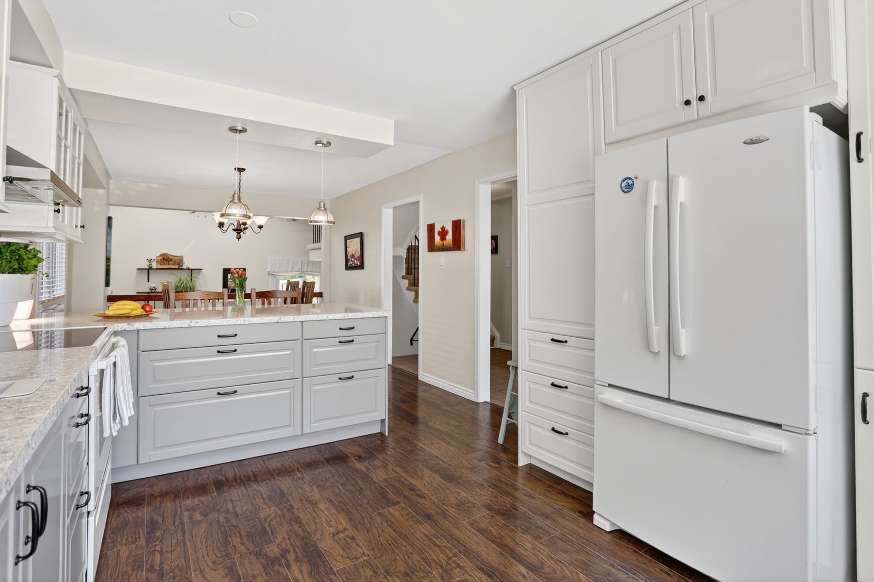 Welcome to 656 hillcroft street located in the highly desirable eastdale community. This well maintained 3 bedroom 3 bathroom five level backsplit, offers expansive living space, designed for a growing family. Bay windows, large patio doors and skylights allow an abundance of natural light, creating a warm and inviting space. Open concept kitchen, dining and family room. Gourmet kitchen, great flow, designed perfectly for entertaining or family members helping prepare meals. Large pantry, soft close doors, ample cabinetry, quartz countertops, sit up breakfast bar, sleek modern backsplash, newer durable laminate flooring continuing into the dining room and family room. The dining room overlooks the spacious yet intimate family room. It features a charming fireplace that serves as a perfect centerpiece for cozy evenings. Two skylights, cathedral ceilings! Walkout to spacious backyard ideal for entertaining. Custom landscaping, patio, raised beds, pergola, plenty of room for the family. Large primary bedroom with bay window, walk-in closet and updated 2 pc bath en-suite. Updated 3pc bath, glass walk-in shower. 2nd bedroom, large mirrored closet doors, large window. 3rd bedroom, laminate floor, glass mirrored closet doors. Lower level features large rec room, designed to house a multitude of activities. Laundry room and storage also on this level. Basement features workshop with workbench for the handyman, or space for a family games room. All amenities in close proximity, walking trails, schools, park, transit, shopping. Easy access to 401 and 407.
