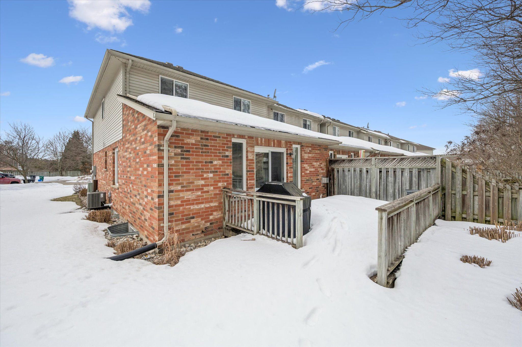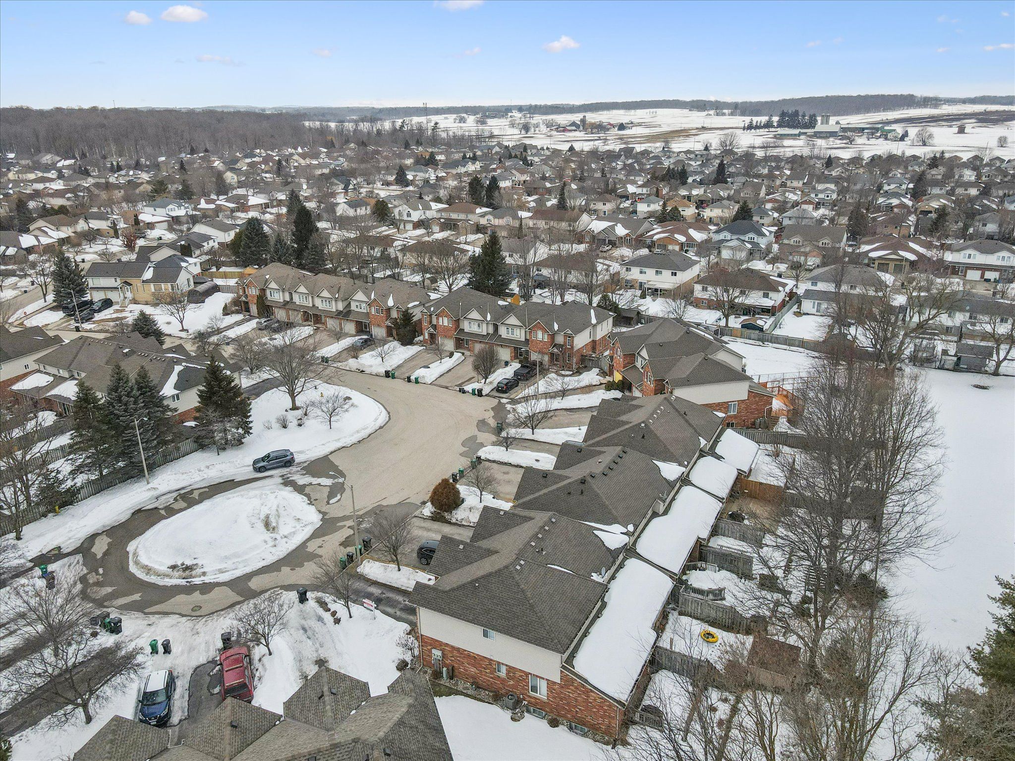 Welcome to your new home! This bright and spacious end-unit townhouse with its private yard awaits you. Single car garage with a little extra depth for extra storage. The large foyer welcomes you into the bright main floor complete with garage access and a 2 piece bathroom. You'll instantly appreciate open concept of the kitchen/family room with moveable kitchen island. The hardwood floors have been kept in immaculate condition. The gas fireplace provides a beautiful focal point. Convenient sliders out to the deck and low maintenance private yard will impress you. Professionally landscaped. Upstairs are 3 spacious bedrooms and a large 4 piece bathroom. The spacious primary bedroom offers a 3 piece ensuite and walk-in closet. Downstairs is even more space with a finished rec room and additional 2 piece bathroom. This home offers plenty of room to grow into on a quiet court with tons of privacy. Just a short drive to the new hospital location, st jacob's farmer's market, and across from laurel creek conservation area. Book your showing today!