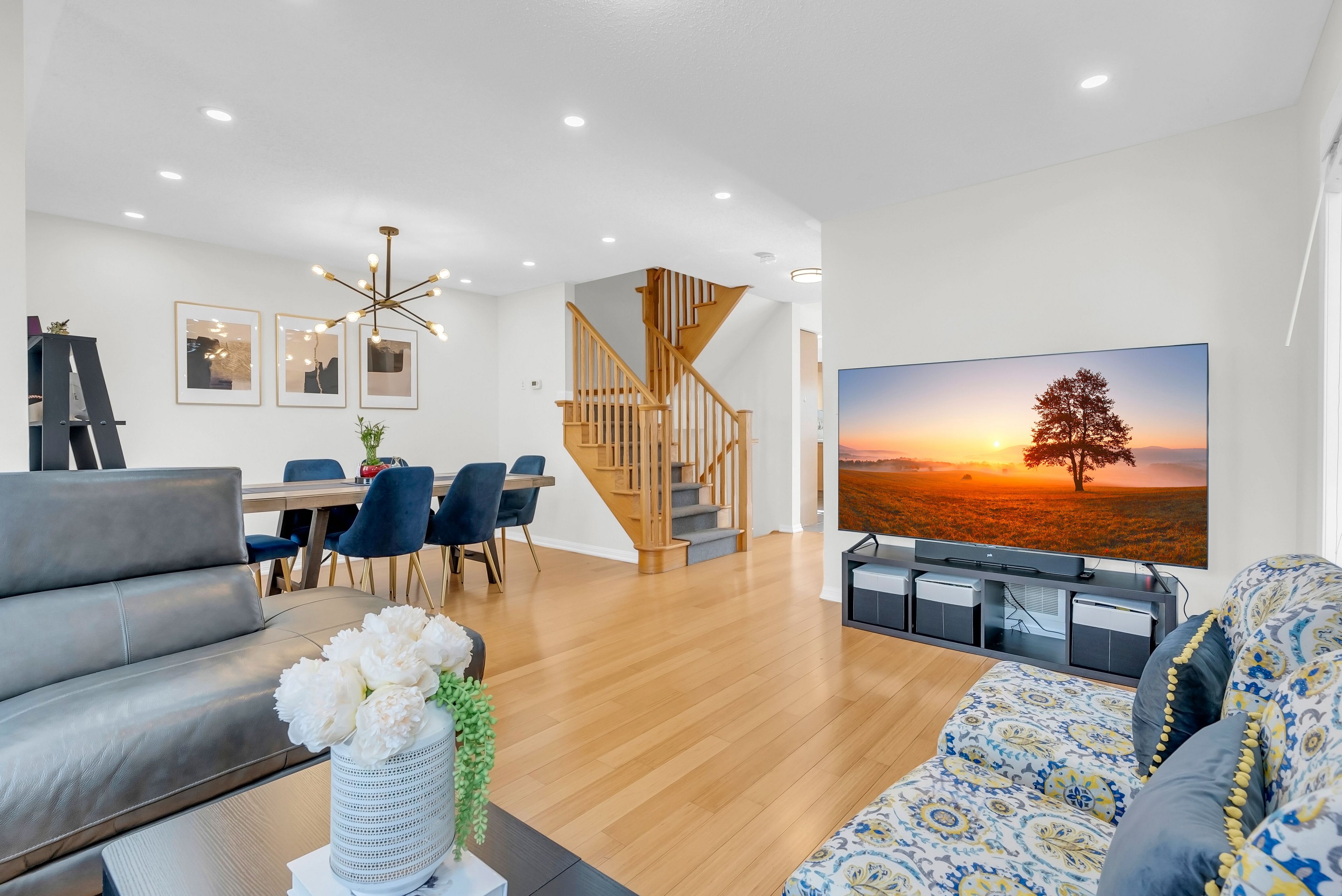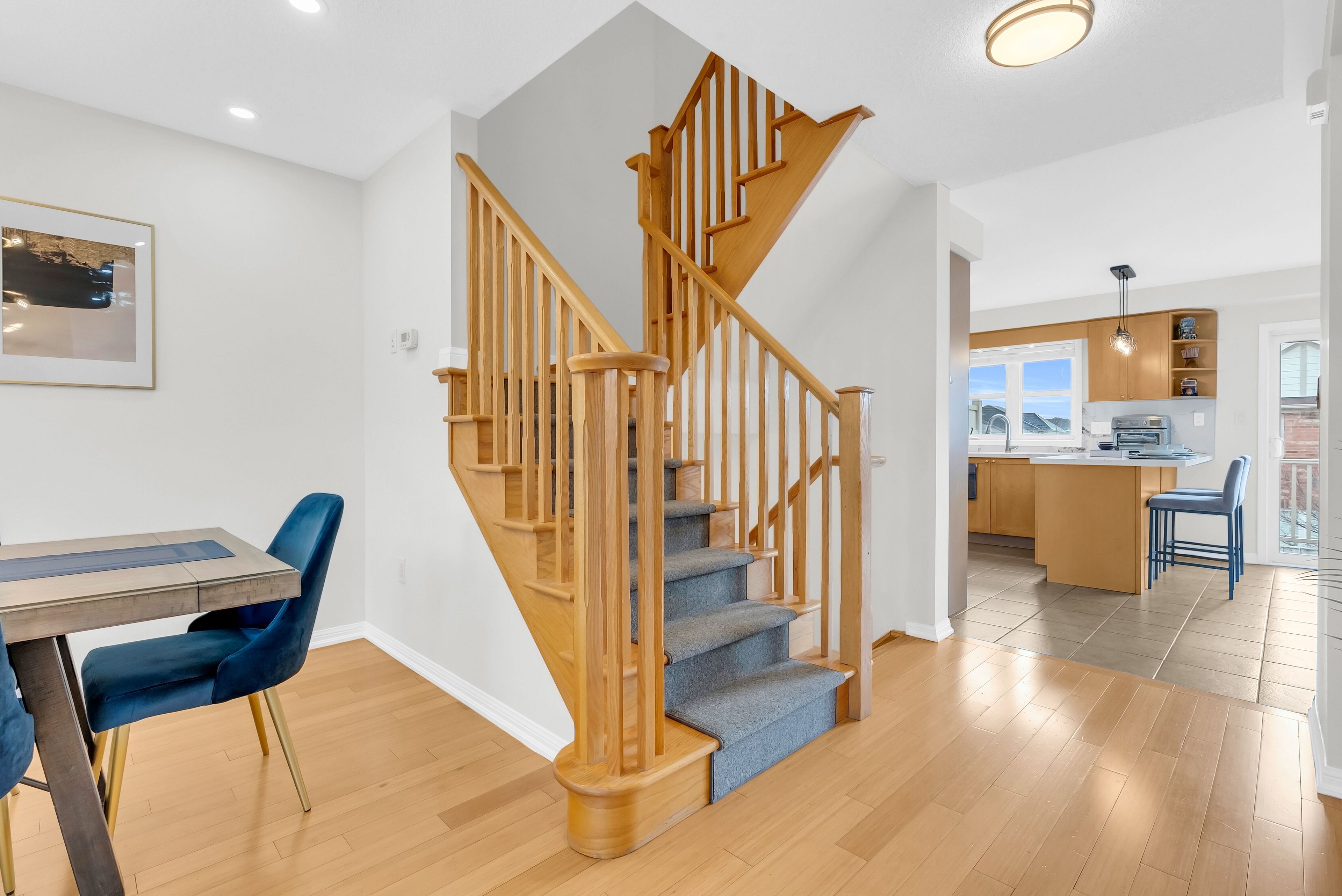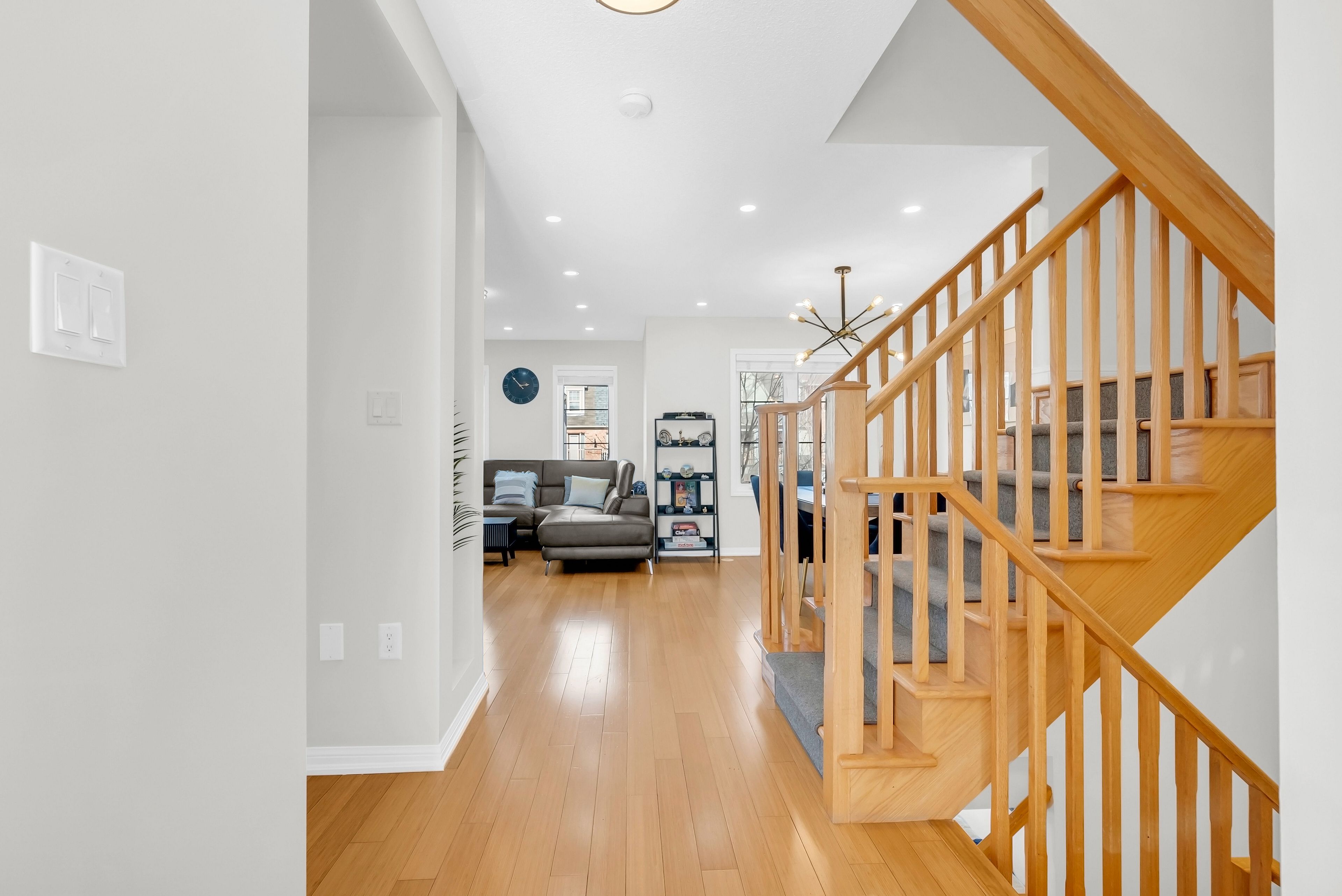 Welcome to 656 scott blvd. A rare end-unit townhome that feels like a semi, flooded with natural light and offering escarpment views. This mattamy-built kingsbury model spans 1,810 sq ft of thoughtfully designed space, with a bright, airy layout that flows perfectly, ideal for a growing family. One of the features that sets this townhome apart is the two separate living areas, giving the home added flexibility. The ground level offers a large, bright living space with plenty of natural light-perfect for a second living room, home office, or additional lounge area. The main level features a spacious open-concept kitchen with a breakfast bar and breakfast area that walks out to a large, west-facing deck that's perfect for summer entertaining or quiet mornings. A generous family room and dining area provide plenty of space for everyday living and gatherings. Upstairs, the primary bedroom includes a walk-in closet and a 4-piece ensuite with beautiful escarpment views, along with two additional well-sized bedrooms. There is also another full 4-pc shared bathroom. Enjoy the benefits of low-maintenance living in a home perfectly located within walking distance to a plaza, just 550 metres from a public elementary school, along with public transit just steps from your front door. Upgrades include: new appliances, kitchen counters & backsplash, bathroom toilets, all light fixtures & pot lights, freshly painted interior, front door and garage door.