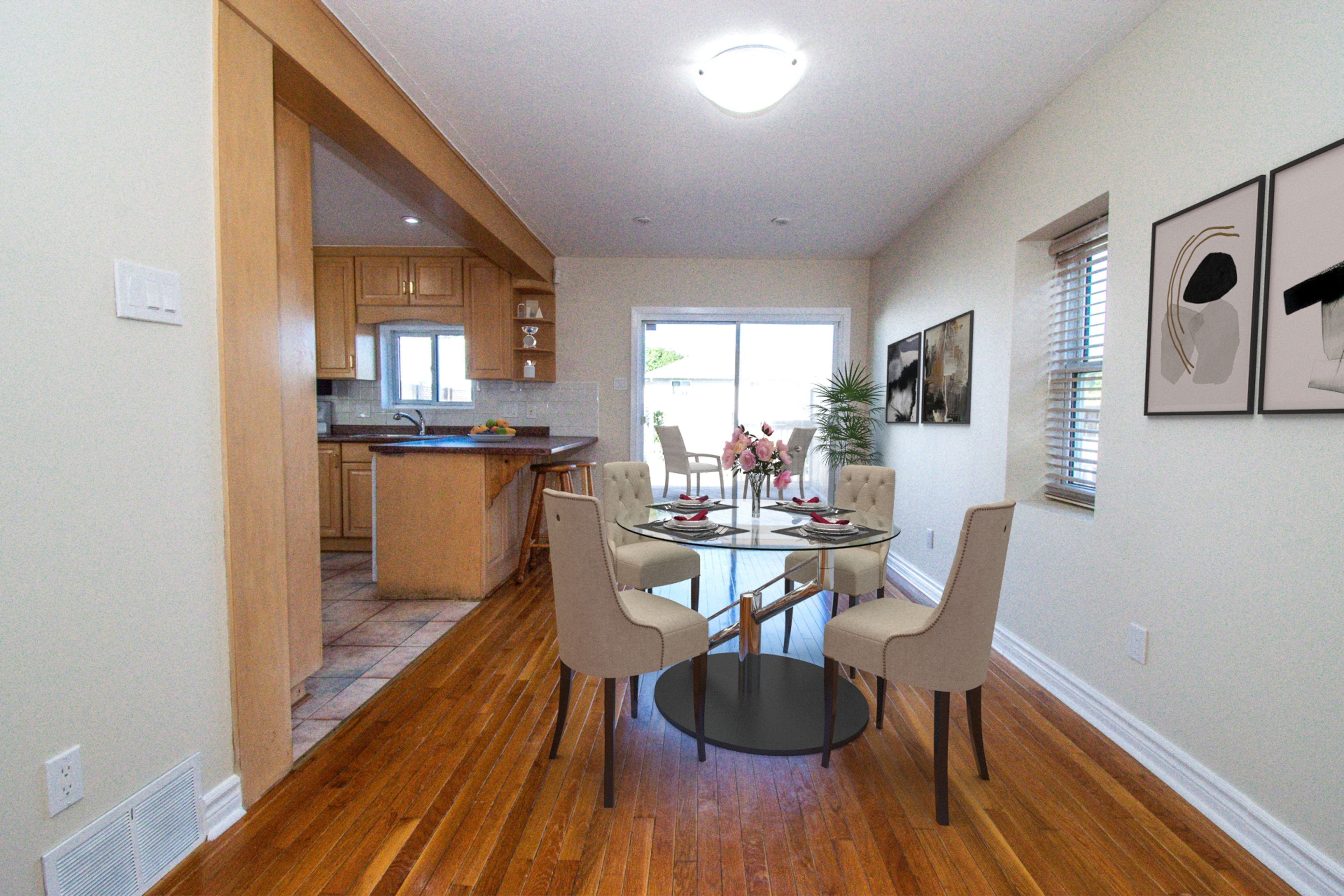 Clean and bright freshly decorated with some nice quality renos. 3 bedrooms with two full baths, one on main level includes a whirlpool tub and one on second level. This 2 story home in good neighborhood has good highway access an close to all city amenities. Home is carpet free except for stairs and rec room. Kitchen updated with maple cupboards, brand new fridge and stove, new built-in dishwasher not hooked up and never used. Convenient peninsula eating bar to enjoy your morning coffee. Open concept main floor featuring oversized dining room for beautiful family gatherings or general entertaining. Perfectly located patio doors to large (20' x 13') and private fully fenced yard. Filled in inground kidney shaped pool. The garage has it own hydro panel and is oversized allowing for a craftsman or hobbyist comfortable work space. Two very large bedrooms with newly laid wood laminate floors. Truly a perfect starter family home. Book your viewing today.