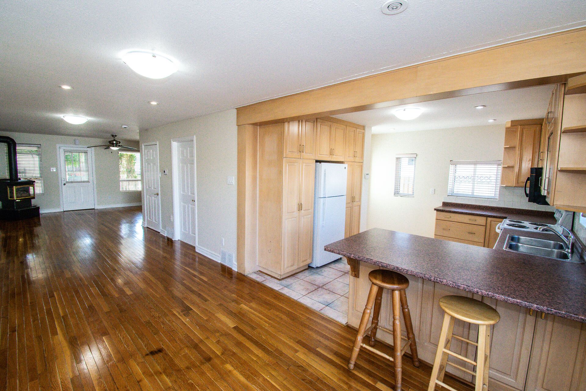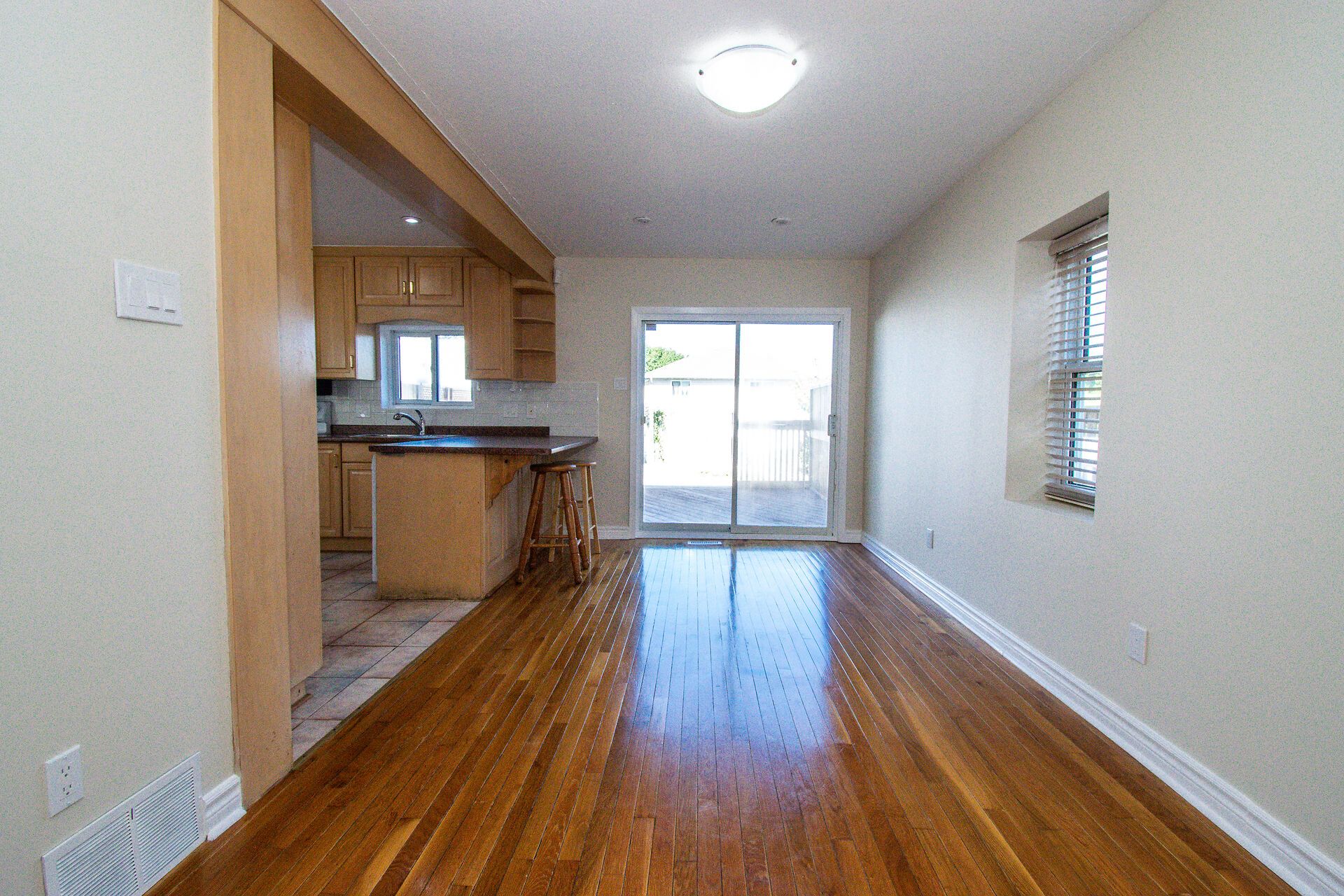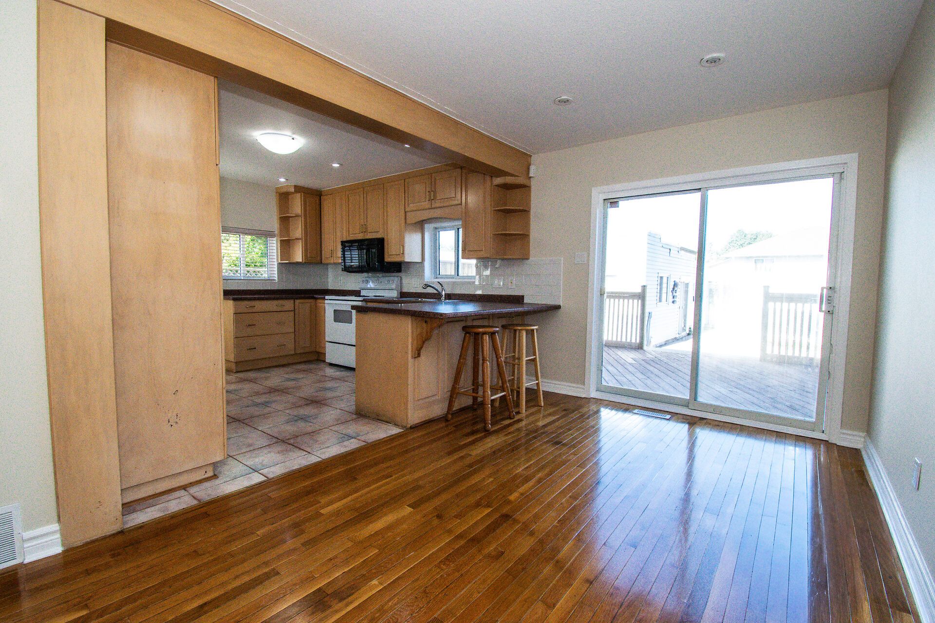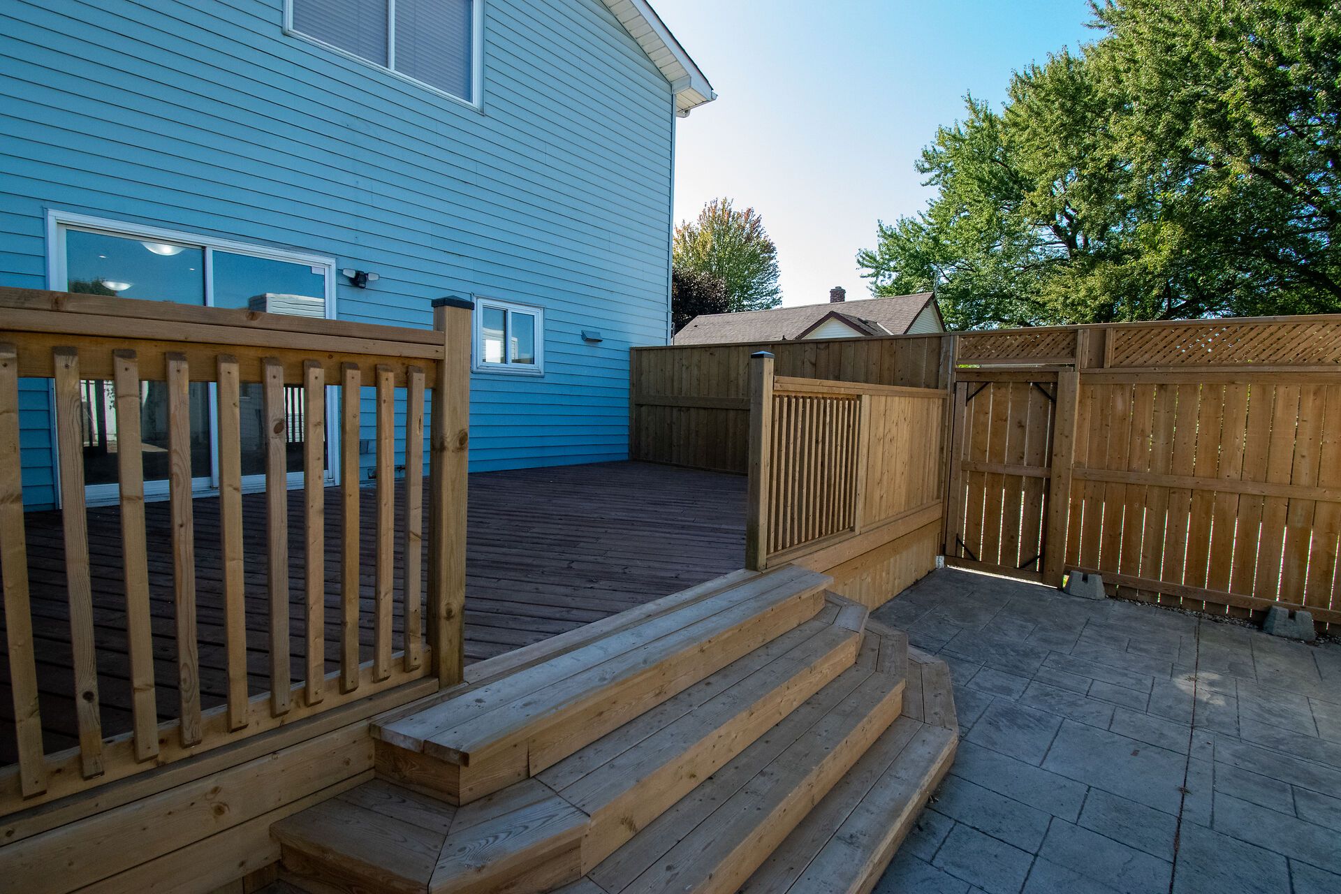 Clean and bright freshly decorated with some nice quality renos. 3 bedrooms with two full baths, one on main level includes a whirlpool tub and one on second level. This 2 story home in good neighborhood has good highway access an close to all city amenities. Home is carpet free except for stairs and rec room. Kitchen updated with maple cupboards, brand new fridge and stove, new built-in dishwasher not hooked up and never used. Convenient peninsula eating bar to enjoy your morning coffee. Open concept main floor featuring oversized dining room for beautiful family gatherings or general entertaining. Living room accented with a gas fireplace unit. Perfectly located patio doors to large (20' x 13') and private fully fenced yard. Filled in inground kidney shaped pool. The garage has it own hydro panel and is oversized allowing for a craftsman or hobbyist comfortable work space. Two very large bedrooms with newly laid wood laminate floors plus a 3rd bedroom ideal for a home office or nursery. Truly a perfect starter family home. Book your viewing today.