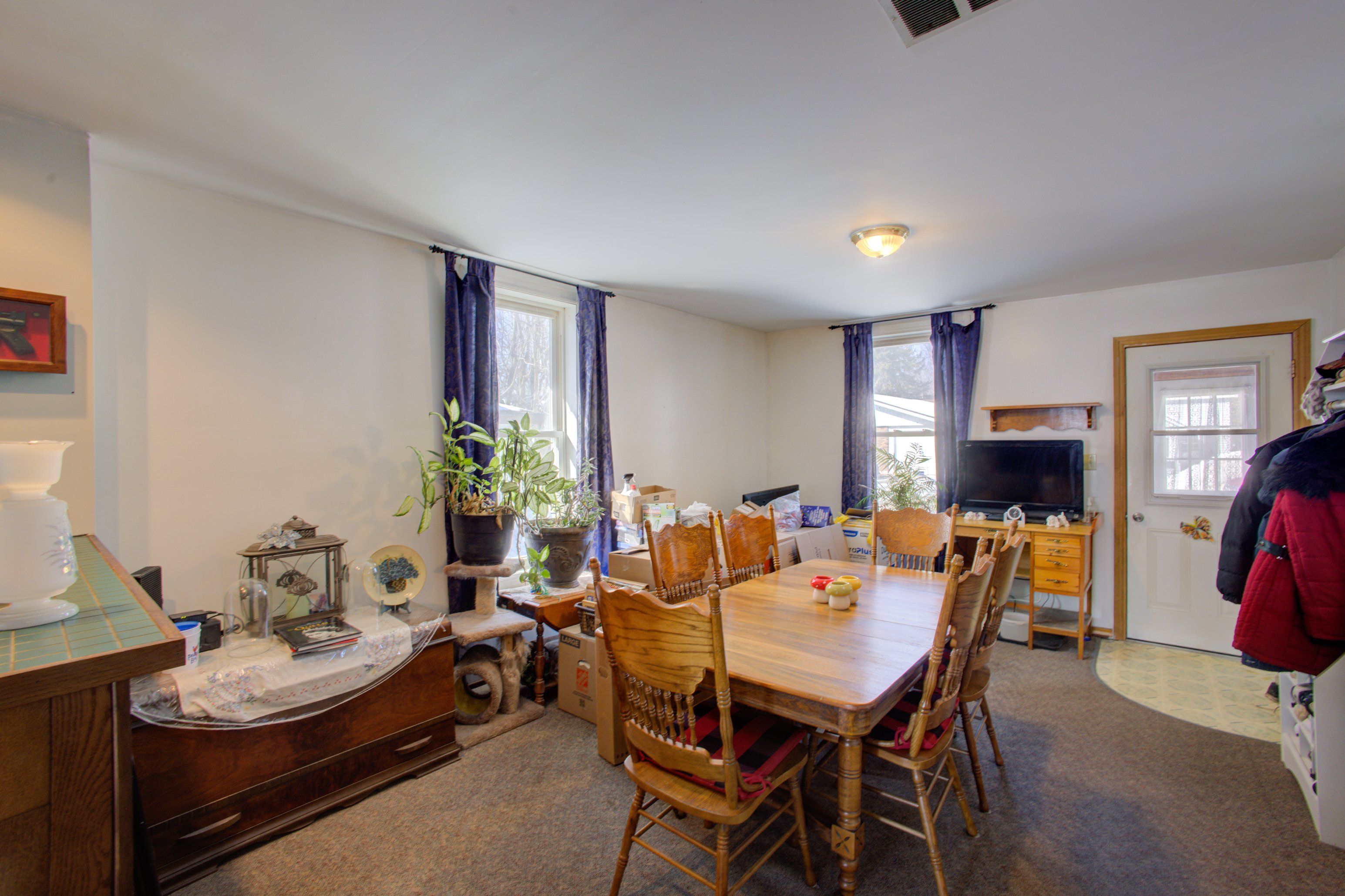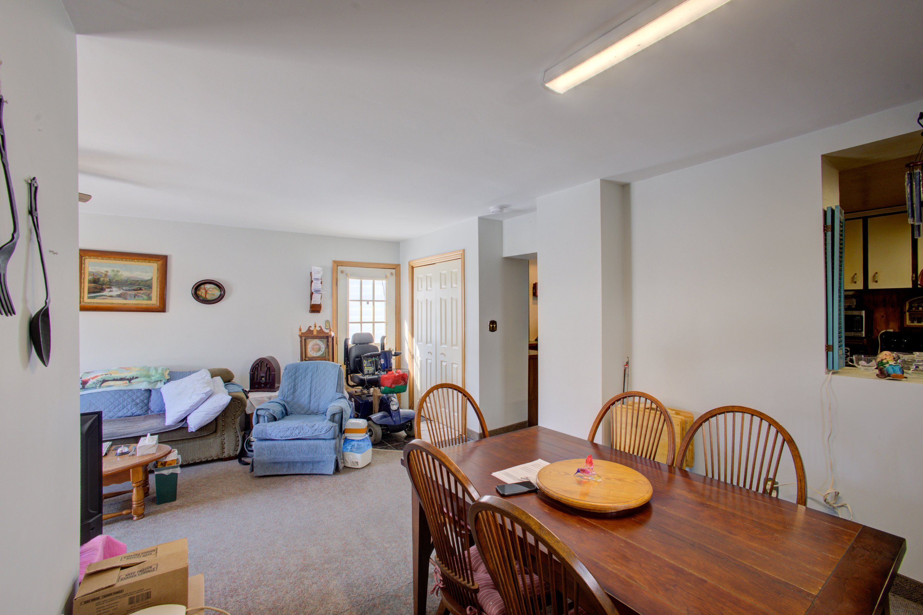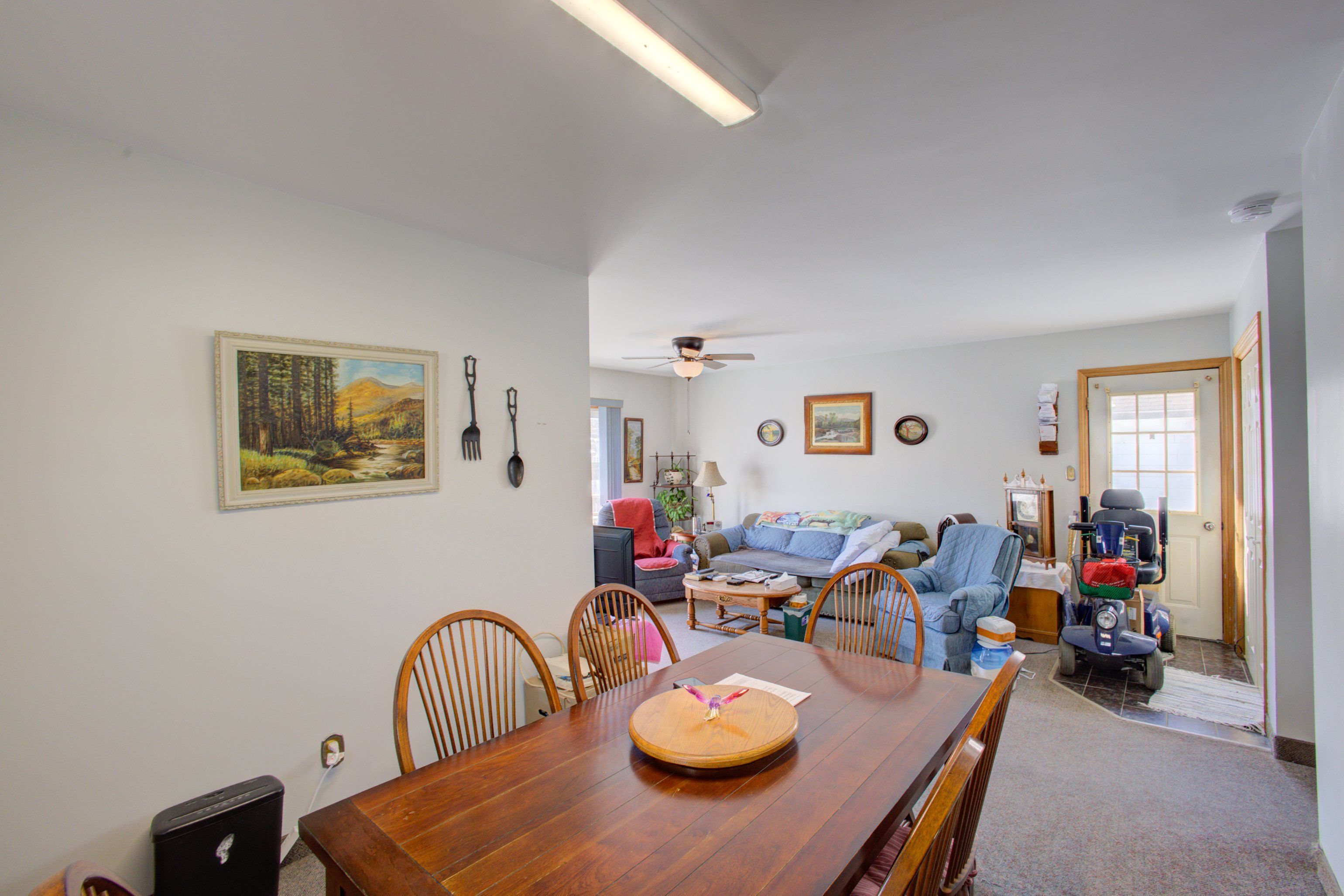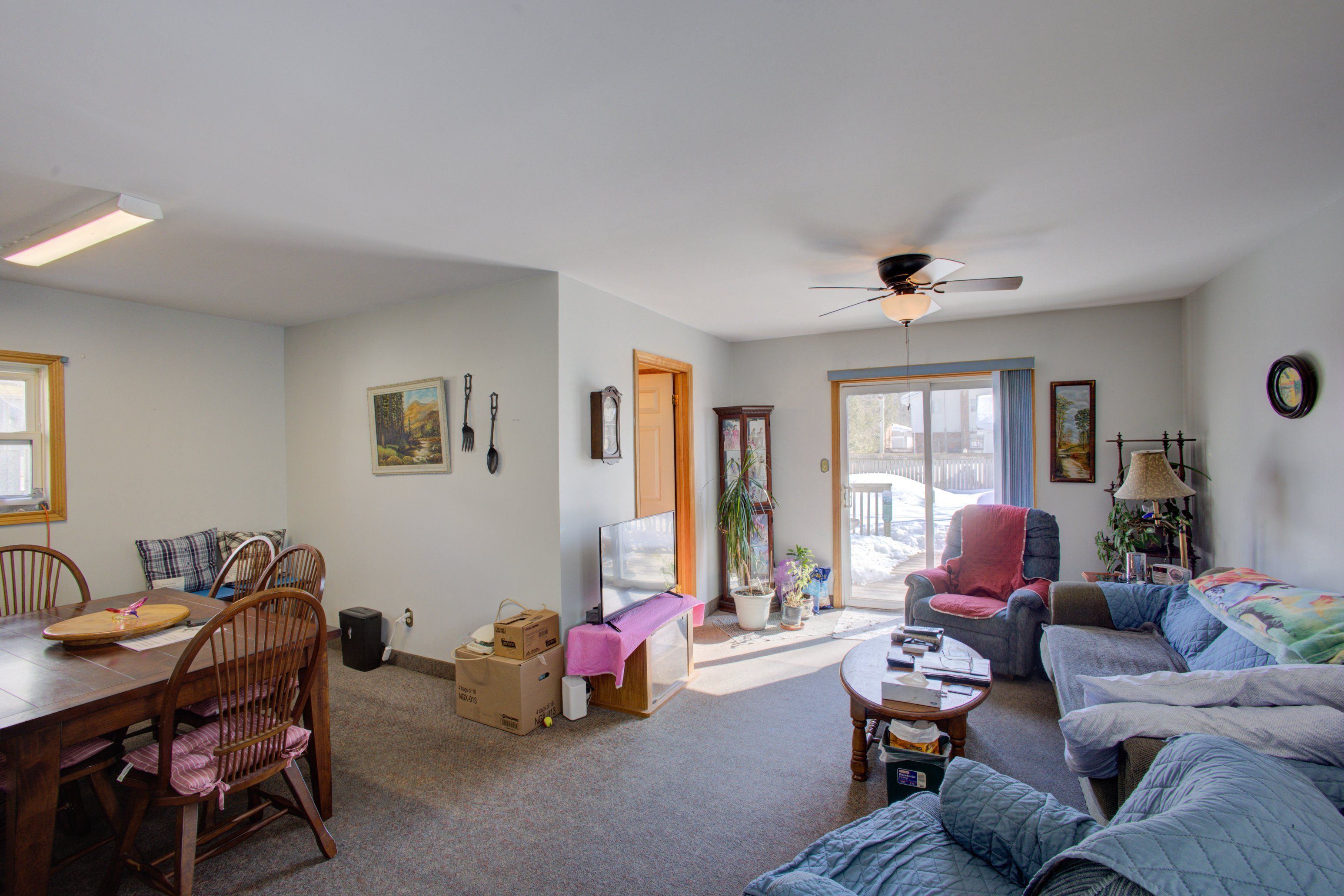 • Bright living room with patio doors leading to the backyard.