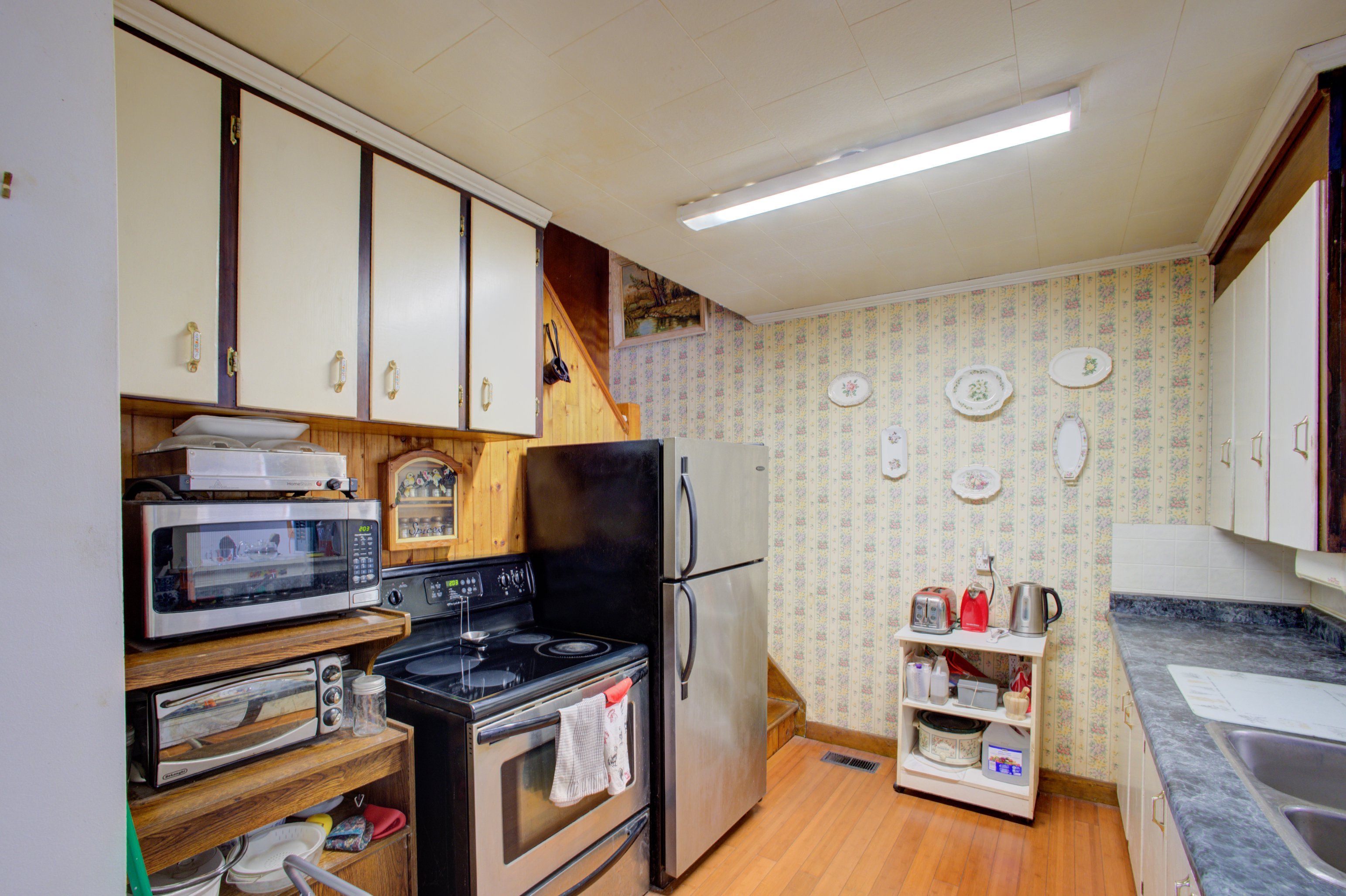 Welcome to this charming 2-bedroom, 2-bathroom home tucked away on a peaceful dead-end street in owen sound. Perfect for first-time buyers, downsizers, or investors, this home offers comfort, functionality. A bright living room addition (completed in 1999 with patio doors to the rear yard) enhances the main level and includes a convenient 3-piece bath and laundry combination. Upstairs, you'll find the second bedroom along with a second 3-piece bathroom for added privacy and flexibility. The fully fenced backyard provides a great space for pets, kids, or entertaining, and includes a handy storage shed. The house roof has been updated in stages, with the front portion reshingled approximately 9 years ago and the rear approximately 4 years ago. A great opportunity to own in a low-traffic location!