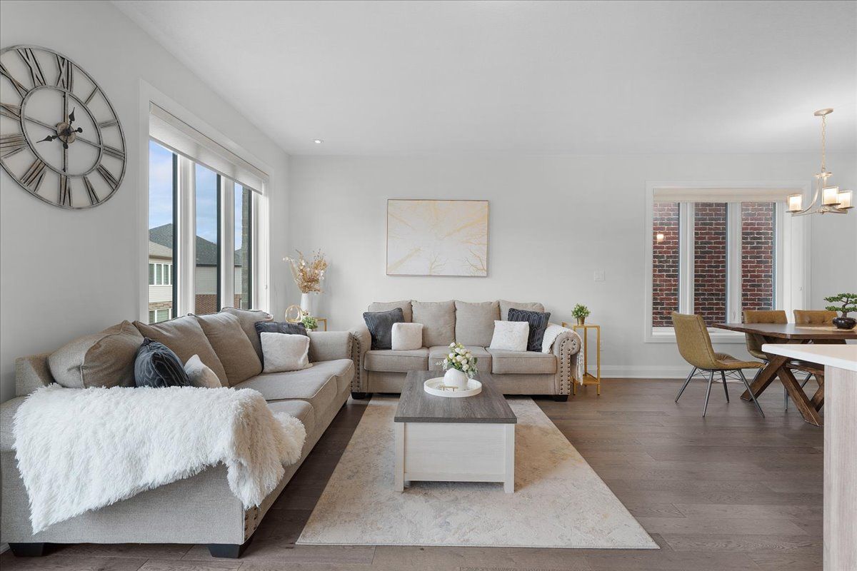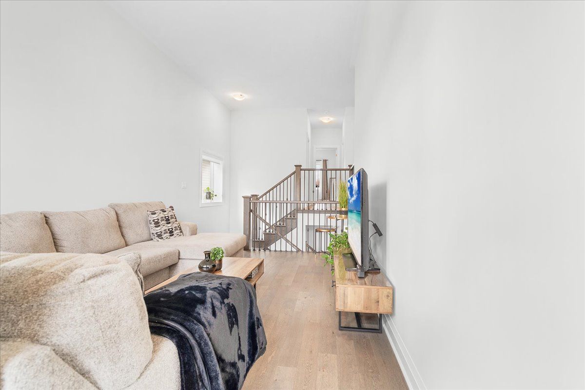 Welcome to this gorgeous house! Nestled in an upscale community where you would love to spend time with your family. A perfect balanced home between nature and city with lots of green space and trails around. Entire main floor is carpet free with separate living & dinning area. Fully upgraded kitchen has lots of cabinetry space with over-sized island and breakfast bar. Main floor also provides access to beautiful deck. 9' ceiling throughout the main floor. 2nd floor offers additional large family room with 13' ceiling and access to beautiful balcony. Main-floor offer primary bedroom with en-suite and 2 additional good-sized bedrooms. Fixtures are upgraded throughout the house. This property also offers fully finished walkout (9' ceiling) basement with a large rec-room for your endless entertainment, home office or gym with upgraded bathroom. Modern contemporary elevation makes this house look stunning. Concrete pathway provides easy and confrontable access to walkout basement. High-rated schools, amenities and highway access are closed by. Do not miss it!!