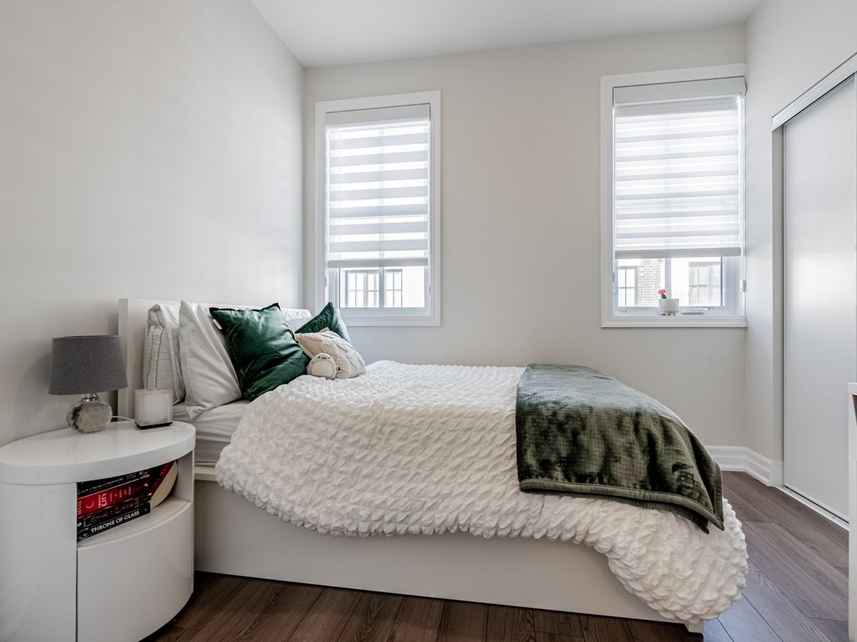 Welcome to the reserve at east mineola, an award-winning executive townhouse community by queenscorp, ideally located in one of south mississauga's most prestigious neighbourhoods and top-ranked school districts. This stunning 2+1 bedroom, 3-bathroom condo townhome stretches nearly 1300 square feet and features a bright open-concept layout and refined modern finishes throughout. The main level offers 9-foot ceilings, engineered hardwood flooring, a sleek chef's kitchen stainless steel appliances and quartz countertops, large island with breakfast bar, and a convenient powder room - perfect for both everyday living and entertaining. The spacious primary suite includes a sitting area and a beautifully appointed ensuite, creating the ideal retreat at the end of the day. A generously sized second bedroom, full bath, and conveniently located laundry complete the upper level. The third level provides additional storage space, ideal for a home office, gym, or flex space. The true showstopper is the spectacular northeast-facing rooftop terrace, offering breathtaking views, gas bbq hookup, water line for gardening, and ample space for hosting, dining, or relaxing in complete privacy. Also included is 1 underground parking spot and storage locker. Steps to parks, the waterfront, community centre, shops, restaurants, top-tier schools, go transit, and with easy access to the qew and upcoming lrt - this exceptional residence delivers lakeside luxury, urban convenience, and unmatched lifestyle appeal.