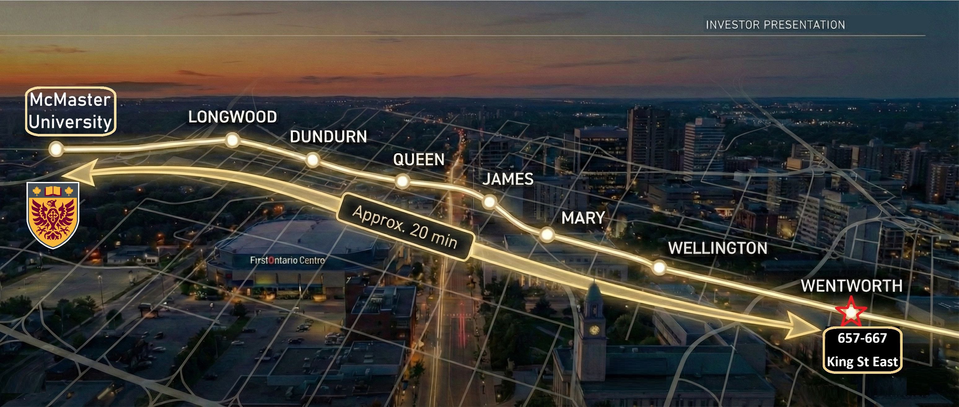 Rare transit-oriented mixed-use assemblage [657-667 king st e] on hamilton's future lrt corridor. Three contiguous properties offering over 11,400 sq. Ft. Of combined land area with continuous king street east frontage. Direct lrt access connecting to mcmaster university, downtown hamilton and eastgate square. Exceptional redevelopment potential for mid-rise rental, student housing, mixed-use condominium or long-term income hold in a designated growth corridor.