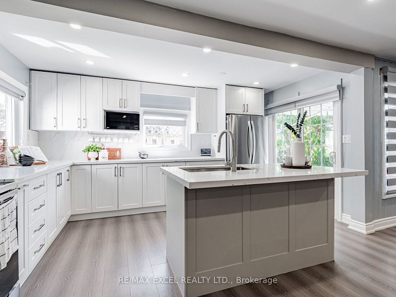New renovated backsplit 4 house on a 75 x 200 foot lot with 6 entrances. Oversized double garage and 10 car circular driveway. Lot of potential. Plenty of storage! This exceptionally spacious and well-maintained 4 bedroom detached home is perfect for large or multigenerational families. Tucked away on a quiet and family-friendly stretch of a highly sought-after neighbourhood, this home offers a functional layout with a private main floor office framed, a bright open-concept living and dining area, and a large eat-in kitchen with ample cabinetry and a walk-out to the backyard deck. The main floor also includes a laundry room and powder room for added convenience. Cannot beat the location! Close to costco, shoppers drug mart & hwy 401***walking distance to top rated schools in ajax