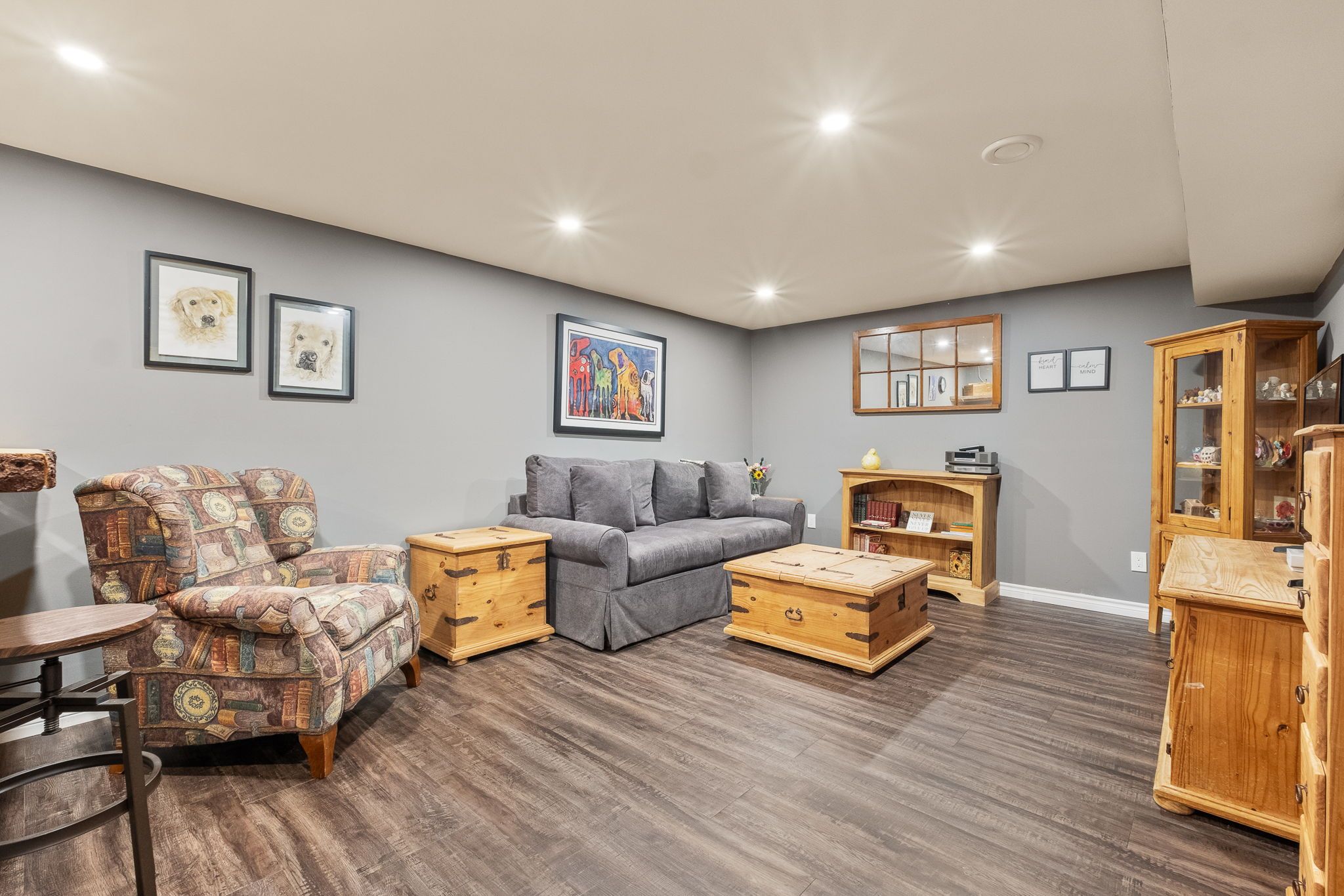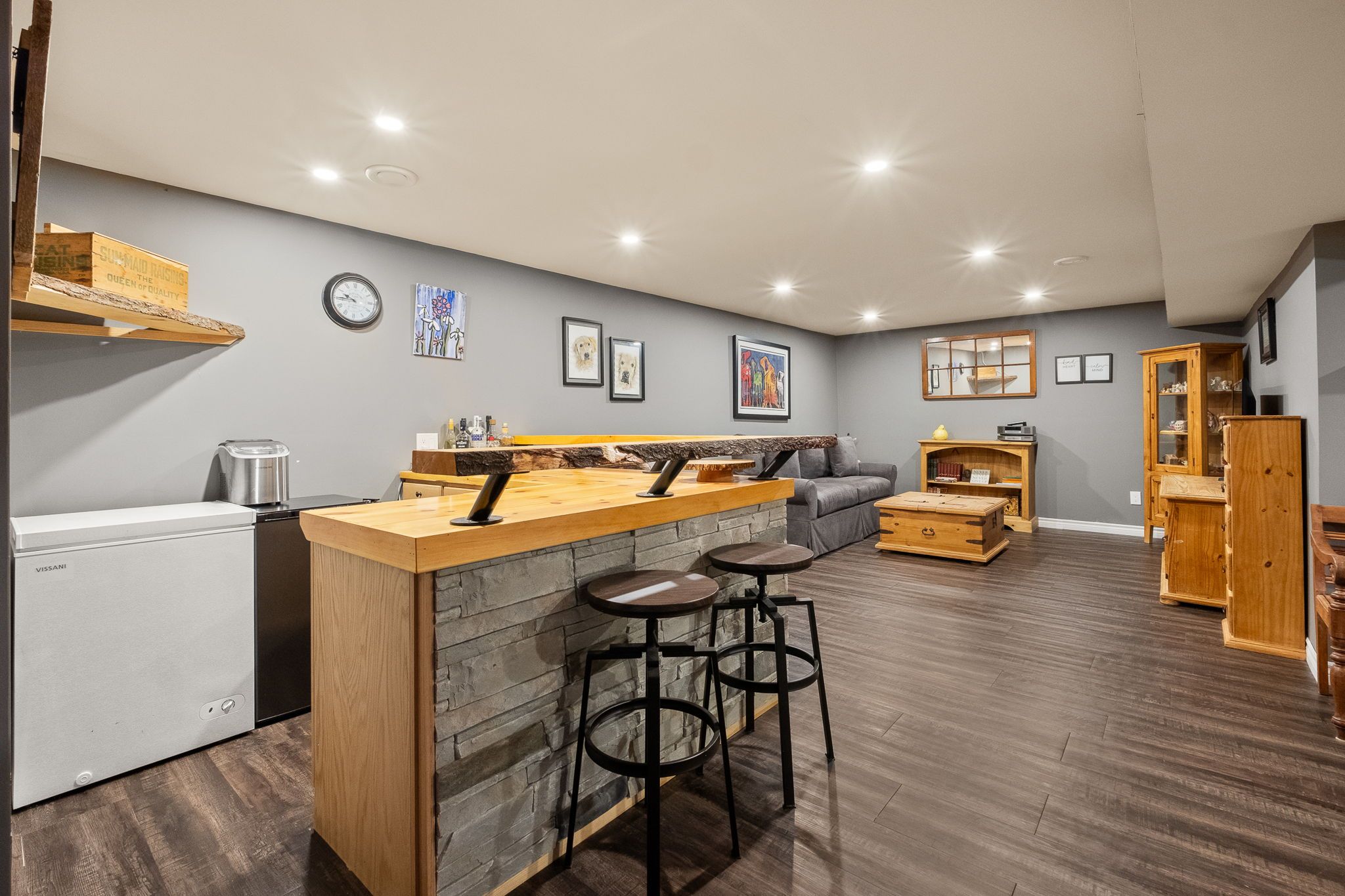 • Lower level includes a cozy rec room, bar, and extra bedroom.
