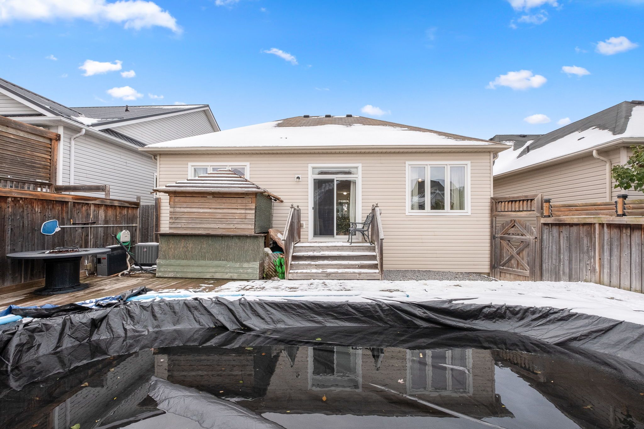 Nestled in the heart of the highly sought-after and centrally located west park village, this turnkey bungalow offers a serene retreat defined by a pleasing palette and thoughtful details. The main level showcases a warm, open-concept layout featuring a stylish and functional kitchen with a generous breakfast bar and uninterrupted sightlines to the outdoor deck and built-in pool-ideal for both everyday living and entertaining. A striking fireplace anchors the inviting living room, while natural light floods the space. The spacious primary bedroom with ensuite is conveniently located just off the main living area and is complemented by a second bedroom and full bathroom on the main floor. The lower level extends the living space with a cozy recreation room and bar, an additional bedroom and bathroom, and ample storage to accommodate guests, hobbies, and everyday needs. Blending contemporary finishes with a warm, tranquil atmosphere, this home is an inviting sanctuary ready to welcome its next chapter. Additional highlights include a backyard tiki bar, air conditioning (2021), dishwasher (2022), new front steps (2024), freshly painted interior (2025), new carpet in the bedroom, on the stairs, and in the primary bedroom closet (2025), new garage door opener (2025), and a new gas heater, filter, and stairs for the pool (2021).