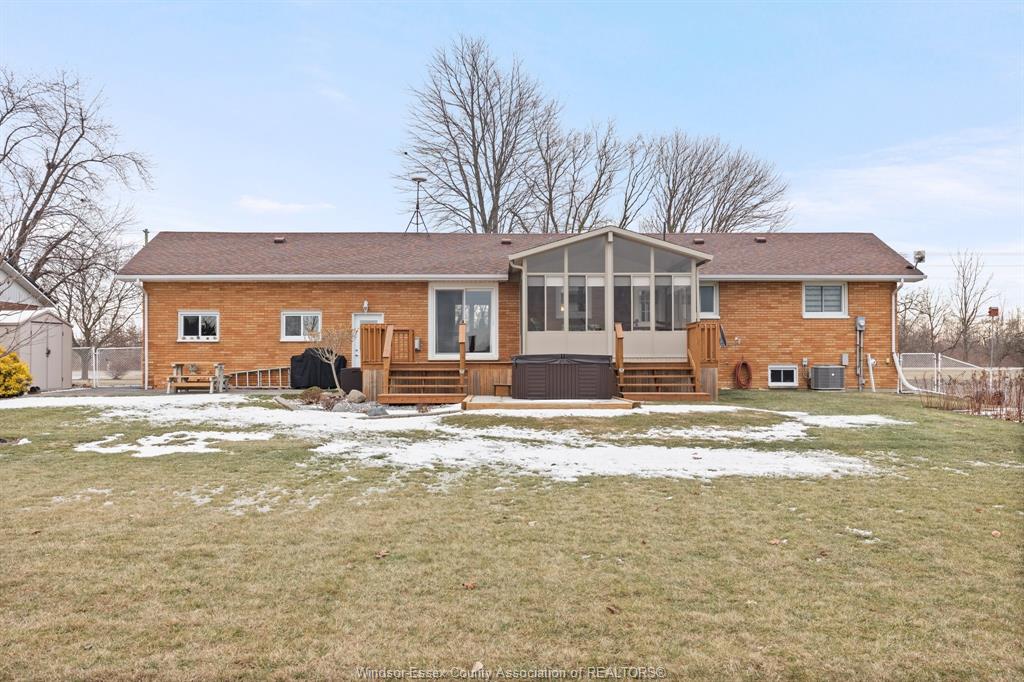 Beautiful brick-to-roof ranch in desirable amherstburg, set on a generous 100' x 250' lot with no rear neighbours. This spacious 3+1 bedroom home offers an open-concept floorplan ideal for everyday living and entertaining. Enjoy two fireplaces, one on each level, plus a bright sunroom overlooking the private backyard. Features include gas heat and central air (2021), two full baths, and a fully finished basement complete with a wet bar and additional bedroom. Step outside to sun decks at both the front and back, perfect for relaxing or hosting guests. Additional highlights include an attached 2. 5 car garage, paved driveway, hot tub included, and shingles updated in 2017. A rare opportunity offering space, privacy, and comfort in a prime location.