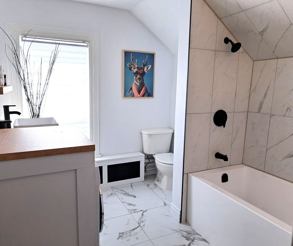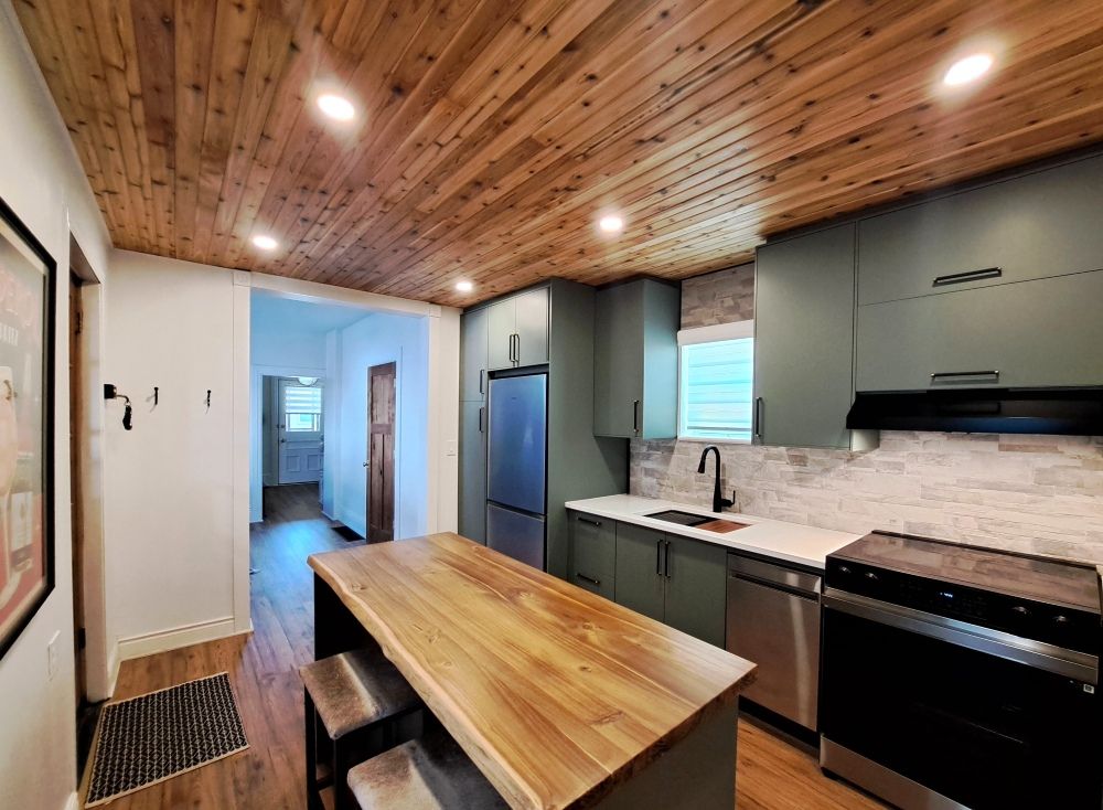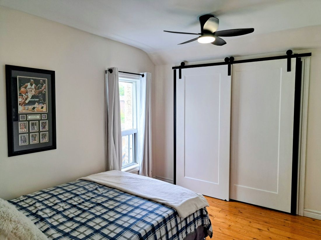 An absolute stunning newly renovated century home on an extra wide lot. Private treed backyard, covered 20 ft front porch,quiet side street, parking for 4 large vehicles. Amazing new modern kitchen with quartz countertops, samsung appliances, kitchen island, soft close drawers, cedar plank ceiling with pot lights on dimmer. A bespoke coffee station, stone backsplash, 2 windows providing lots of sunlight perfect for entertaining. Oak laminate flooring on main, with original floors on stairs, 2nd level and powder room. 2 laundry stations, one on lower level and one next to bedrooms for easy convenience. Lots of original features kept like, front door with knocker,9 inch baseboards, tall ceilings on main, brick in the kitchen. A 10x10ft insulated he/she shed next to the home that is currently being used as a gym. A utility shed towards the back or the property for all your storage needs. Excellent location with shopping on lansdowne, small park on the corner and jackson park just a short drive. Home shows amazing and every updated feature is done to the highest standards. A true gem!