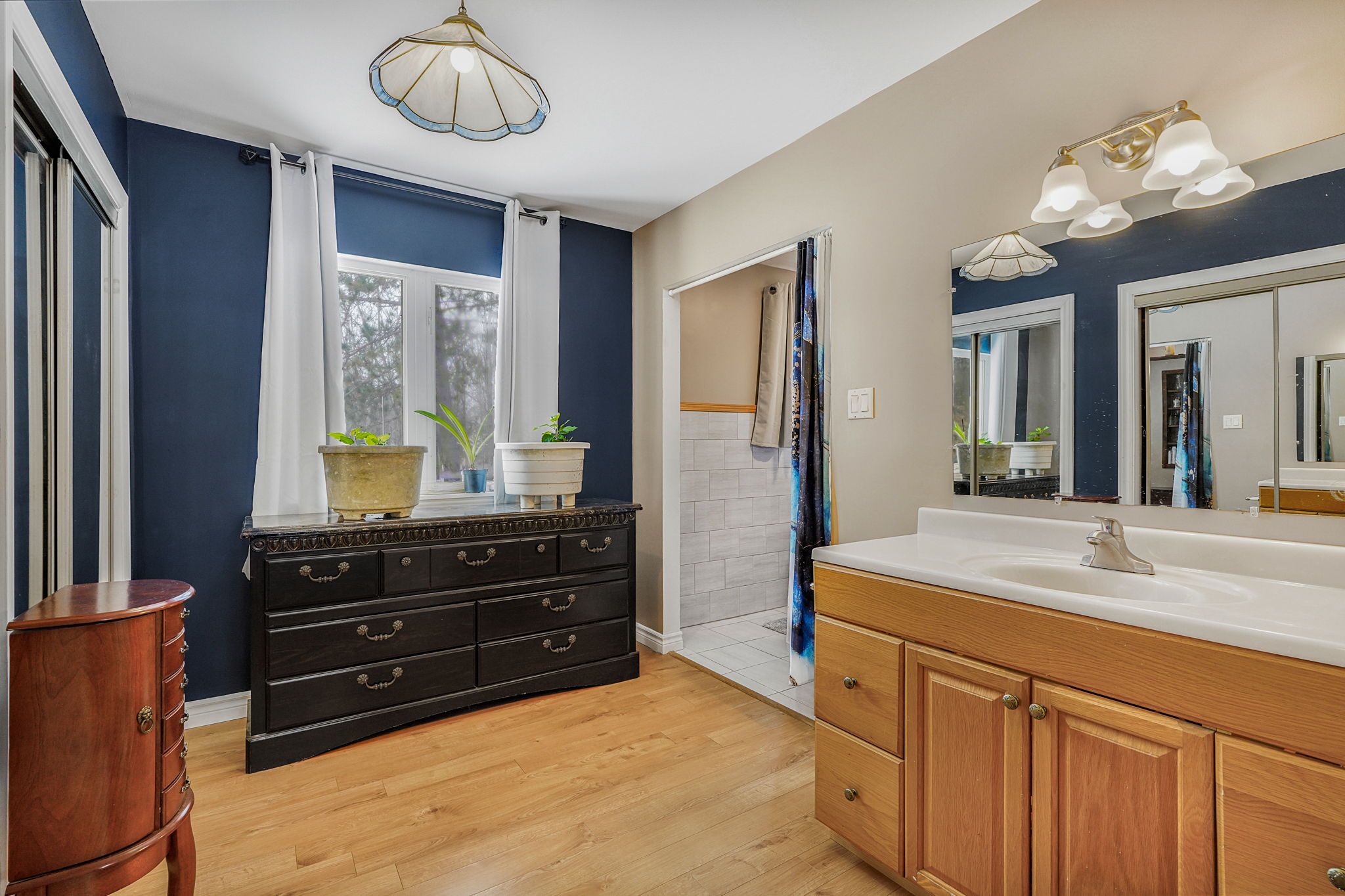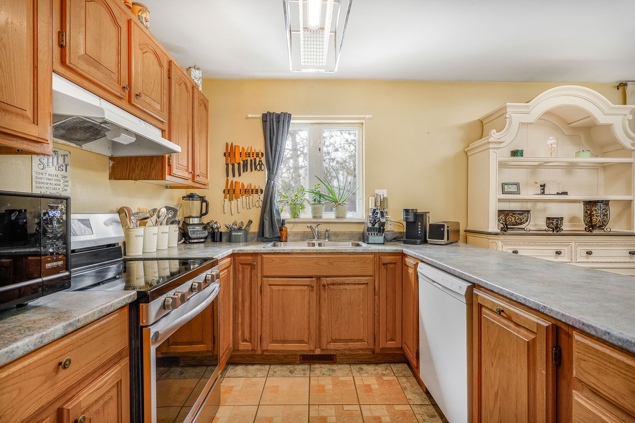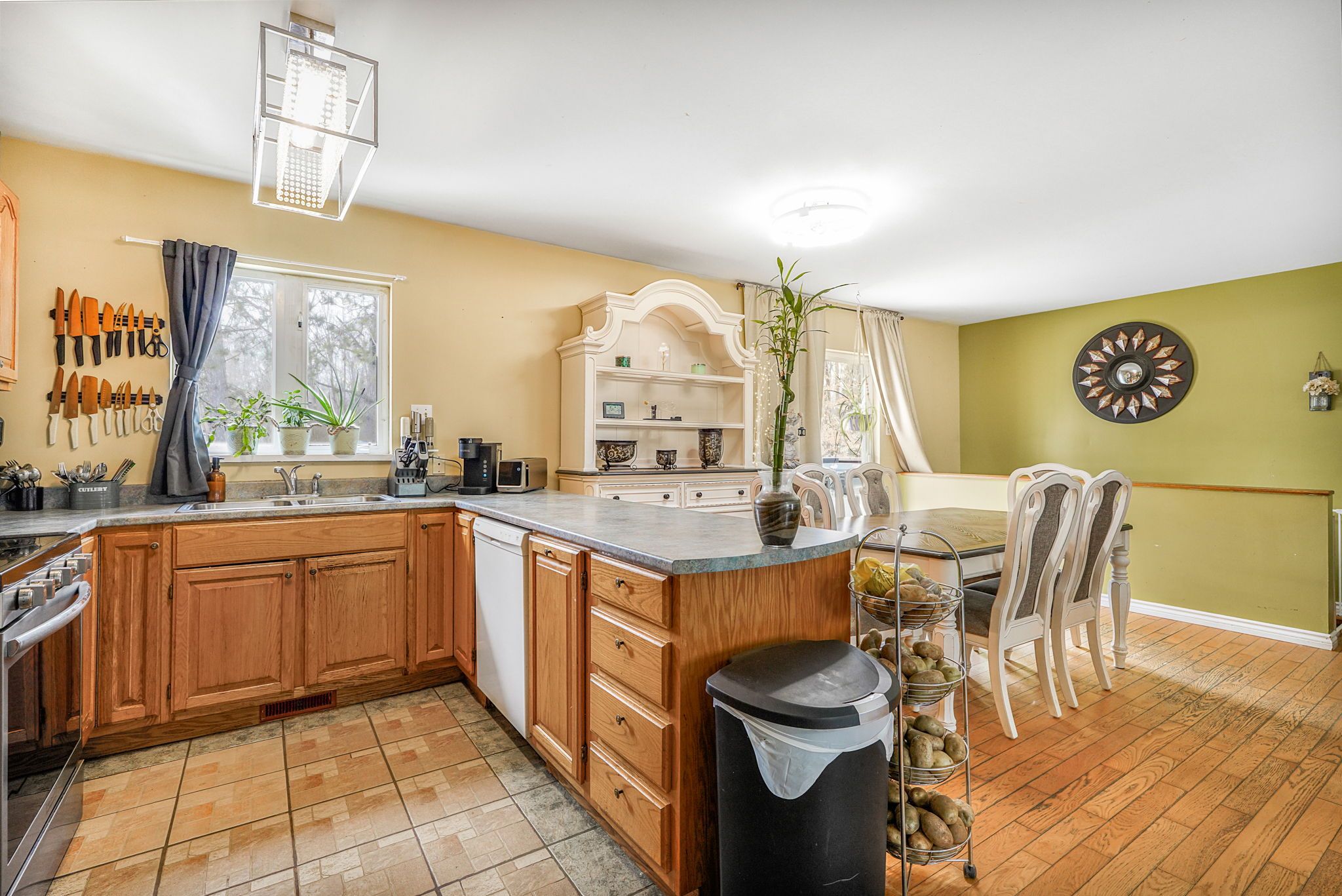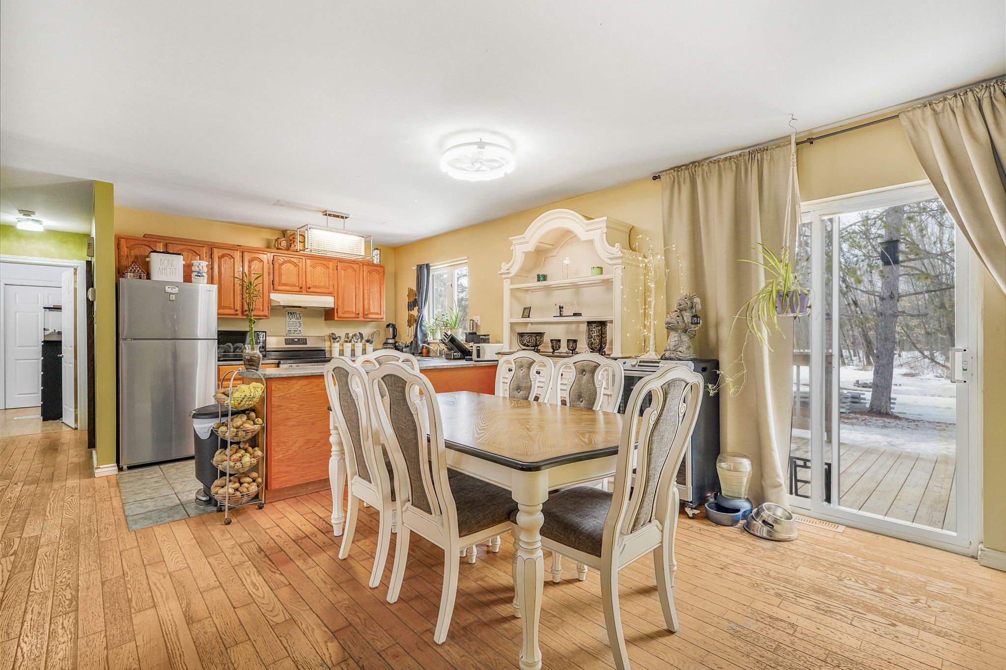 Great location, no rear neighbours! Enjoy country living at its best while close to town. This solid bungalow has 3 bedrooms and 3 bathrooms, main floor laundry and 18'x24' attached garage for all your weekend projects. Entirely carpet-free, with hardwood, ceramic and laminate throughout. The main bedroom boasts a large 16'x10' ensuite bathroom/walk in den with plenty of storage space. The basement has a large recreation area and adjacent bedroom, extra den that could easily be converted into a 4th bedroom. Efficient natural gas furnace. Added peace of mind with a recently upgraded metal roof. The outdoor space is private and surrounded by mature trees. Come check out your new home today!
