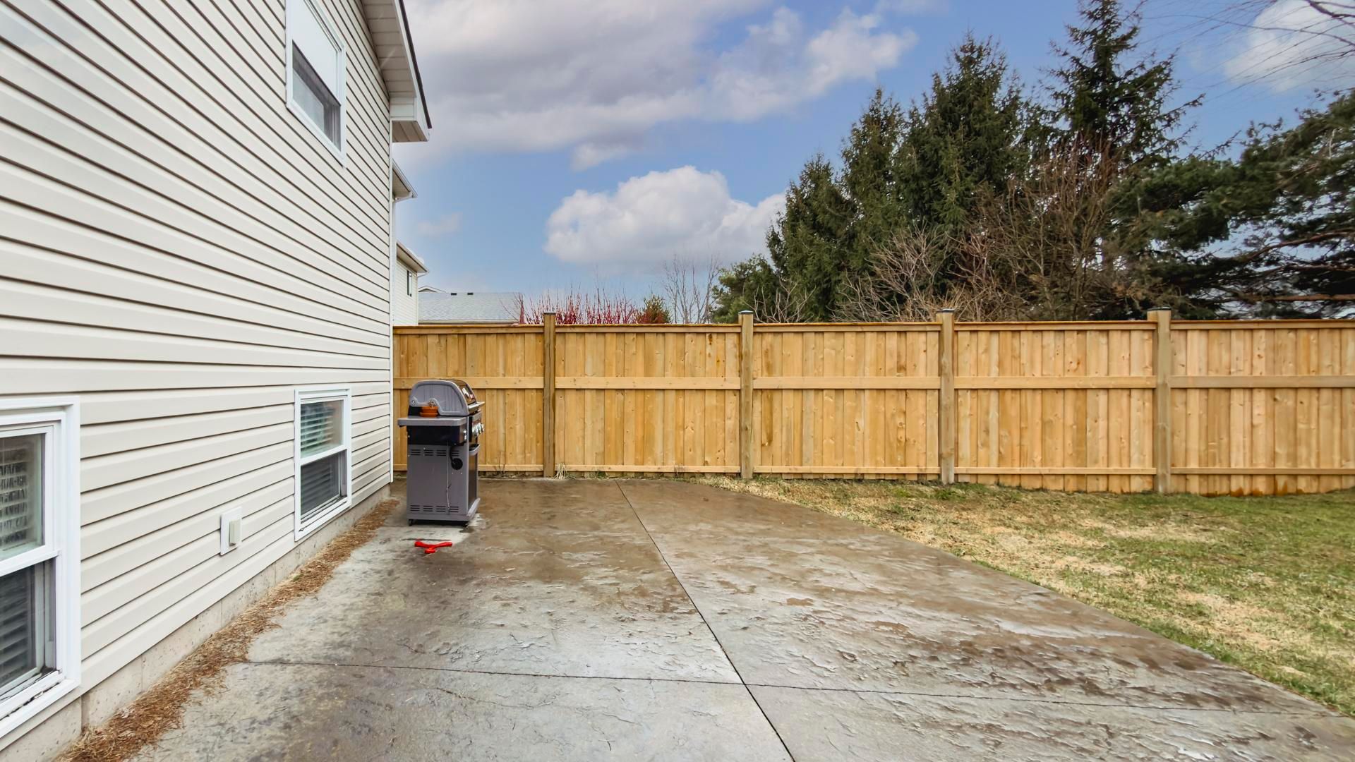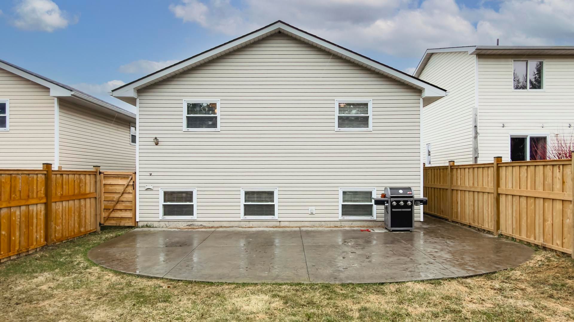 • Fully fenced backyard with a stamped concrete patio for outdoor enjoyment.