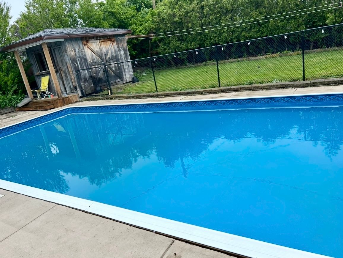 Welcome to this beautifully maintained four-level sidesplit, ideally located in a highly desirable neighbourhood. This home offers the perfect blend of comfort, space, and outdoor enjoyment. Featuring 3 bedrooms and 2 bathrooms, the interior boasts an inviting l-shaped family room on the lower level complete with newer carpeting and a cozy gas insert fireplace, perfect for relaxing evenings. Updated windows provide efficiency and natural light, while ample storage space ensures everything has its place. Step outside to your own private backyard oasis. The 32 x 16 in-ground pool is ideal for summer fun and entertaining, complemented by multiple patio areas and a charming tiki hut. There's still plenty of green space for kids or pets to play, all within a nicely landscaped and private setting. A concrete driveway adds to the home's convenience and curb appeal. This is a fantastic opportunity to own a spacious family home with exceptional outdoor living in a sought-after location.