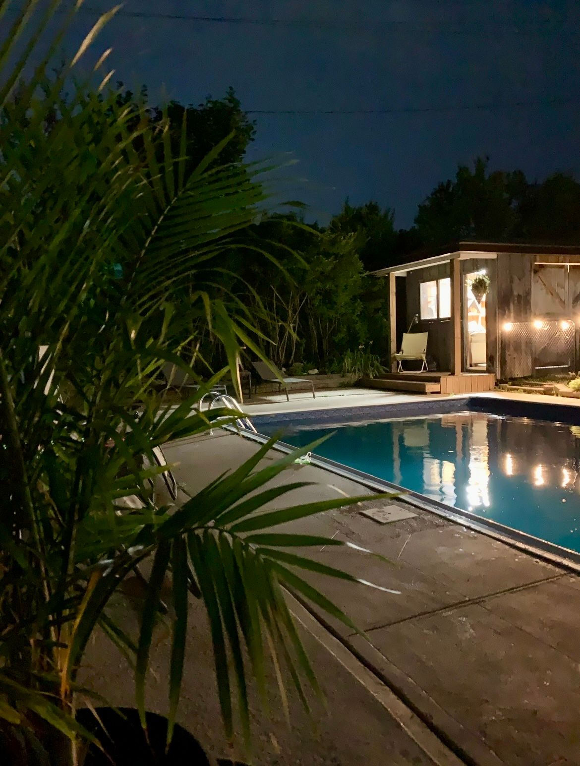 • Private backyard with in-ground pool and multiple patio areas.