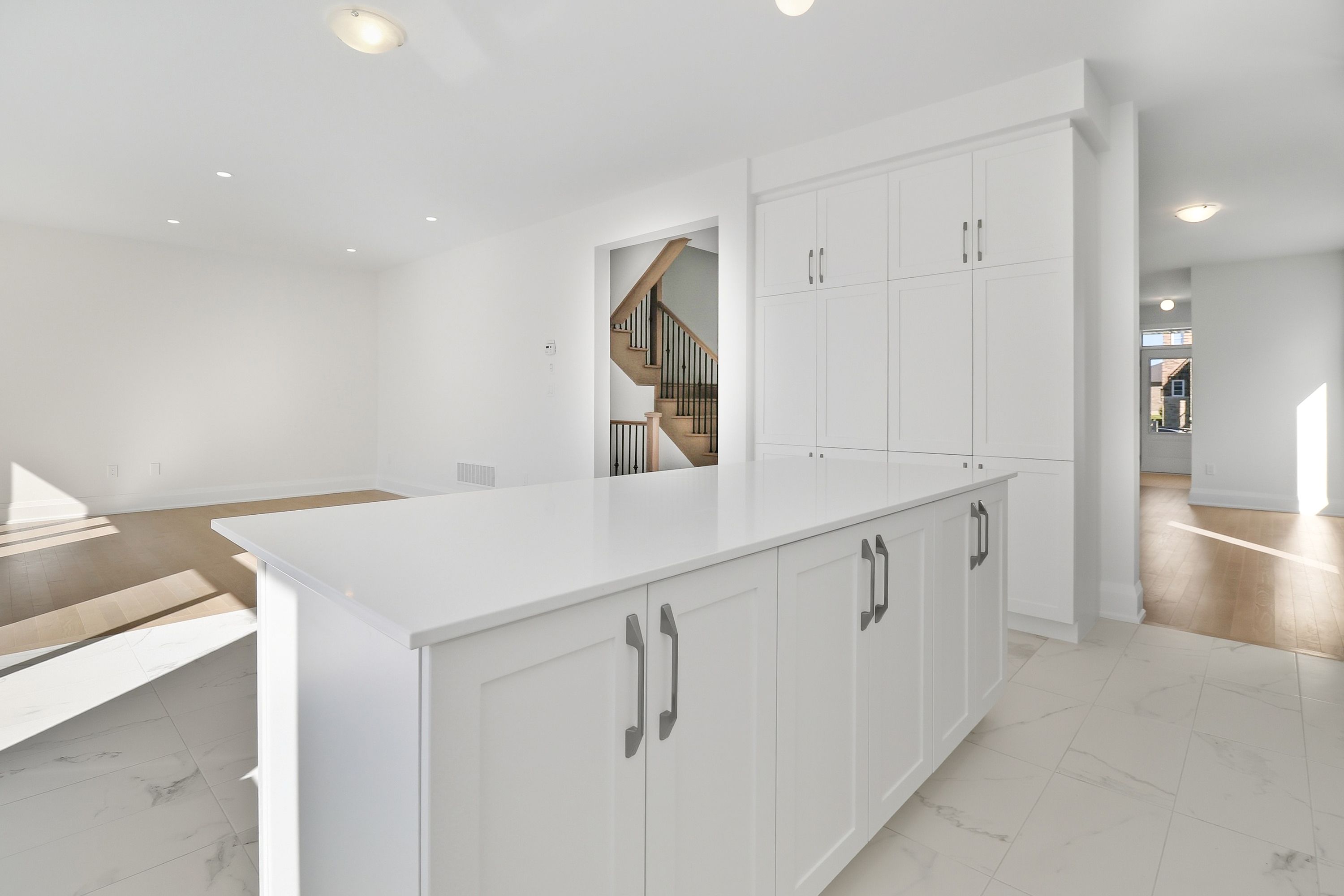 • Modern kitchen features quartz countertops and double pantry.