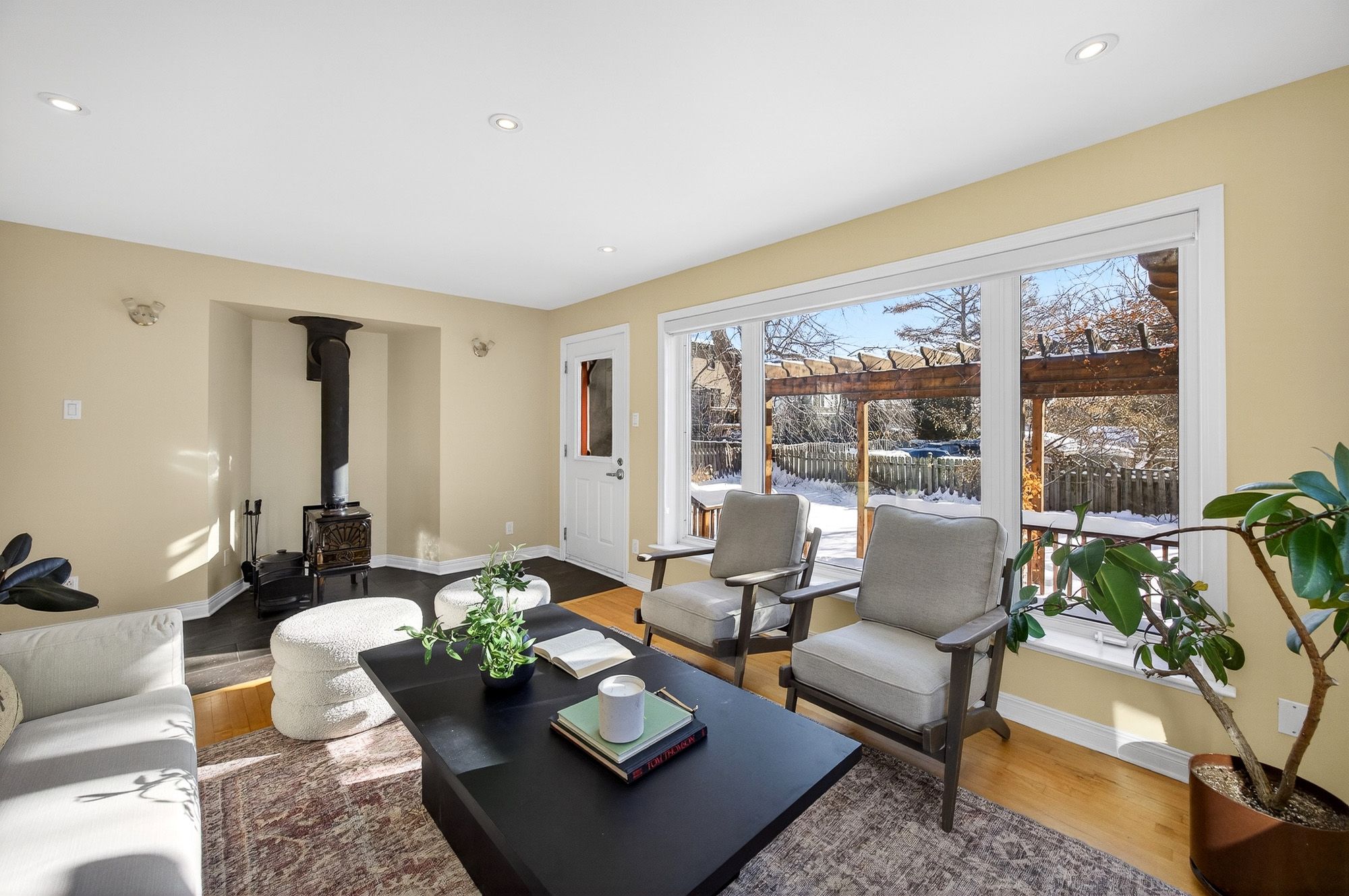 Open house: sun, apr 12, 2pm - 4pm! Set back from the road and surrounded by mature landscaping, this architect-designed split-level home offers privacy, space, & flexibility in the heart of old ottawa south. With approx. 3,000sqft of living space, including a self-contained 1-bedroom basement apartment with a separate entrance, the layout is thoughtfully planned for comfort while accommodating guests, extended family, or additional income. Designed by architect james colizza, the home features generously sized rooms, wide hallways, & expansive windows that fill the interiors with natural light. The main level opens from a spacious foyer into a bright living room with gas fireplace & flows into a dining area with banquette seating and modern kitchen overlooking the family room with a wood-burning fireplace, all connecting seamlessly to the expansive backyard for indoor- outdoor living. The 2nd level offers three large bedrooms with generous closets, light-filled hallway accented by glass brick details, & modern 4- piece bath, while the primary suite is set apart with wic, private ensuite, & lovely neighbourhood views. The lower level includes laundry, storage, a flexible bonus room, & access to a bright, 2-level, self-contained apartment with its own kitchen, laundry, and private entrance. Outdoors, the landscaped backyard and side yards, designed by sundaura alford-purvis, create a serene retreat with mature trees, raised garden beds, irrigation, patio space, & a pergola deck. Home improvements: heat pump (2025), gas hot water heater (2021), interlock & landscaping (2019), side patio interlock (2018), eavestroughs (2012, 2016, 2018), primary bedroom heat pump (2015), basement window and window well (2013), fireplace & surround (2011), recessed lighting (2011), kitchen renovation (2010), insulation upgrade (2009), & multiple interior and window updates completed between 2008 and 2013. Approx monthly costs: hydro $149. 53, heating $141. 68, & water $258 bi-monthly.