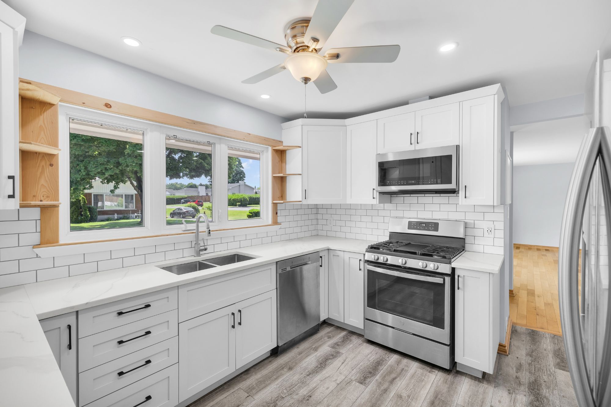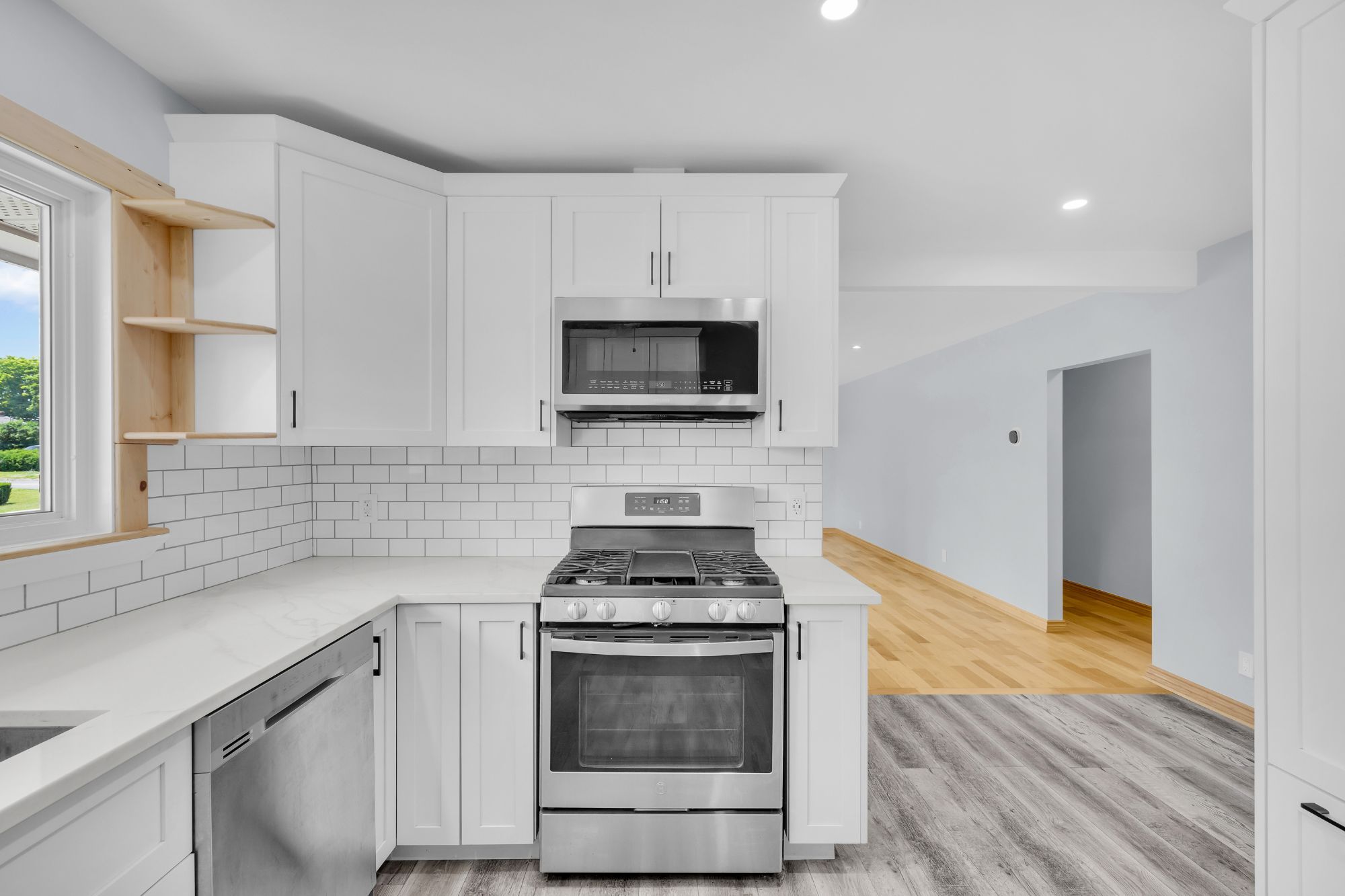 • Bright main floor features hardwood, natural light, and a modern kitchen.