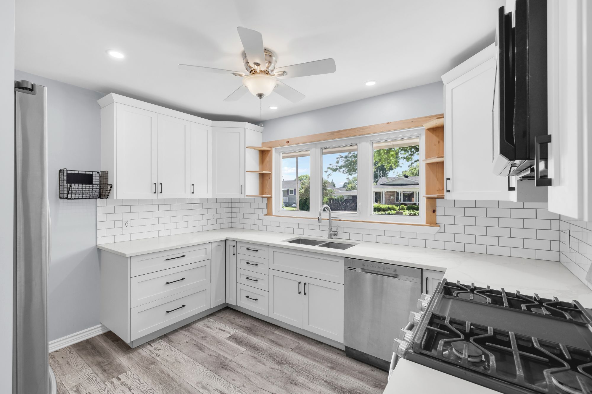 Welcome to 66 broadview avenue, a fully renovated, move-in-ready brick bungalow in the heart of smiths falls. With 4 bedrooms, 2 full bathrooms, and over 1,800 sq. Ft. Of finished living space, this home blends comfort, efficiency, and charm. The bright main floor features hardwood flooring, lots of natural light, and a fully updated kitchen with stone countertops, two-tone cabinets, a gas stove, a tile backsplash, and a built-in pantry. The dining area includes built-in bench seating and opens to a spacious living room. Three bedrooms and a 4-piece bathroom complete the main level. The finished basement, renovated and spray-foamed in 2020, features a large family room, a fourth bedroom, a 3-piece bath, cold storage, and a custom laundry room with cabinetry and a sink. Outside, enjoy a fully fenced yard with a newer deck (2020), storage shed, and side door access. Parking for 2 cars, including a carport. Located steps from schools, lower reach park, and the rideau canal, with trails, a splash pad, and community events nearby. Close to downtown shops, restaurants, and easy access to hwy 15. A beautiful home in a friendly, walkable neighbourhood, perfect for families or downsizers. Living room photo has been virtually staged.