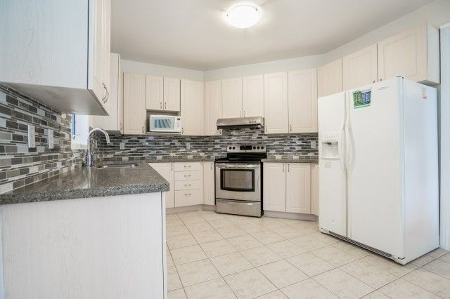 • Eat-in kitchen equipped with granite countertops and backsplash.