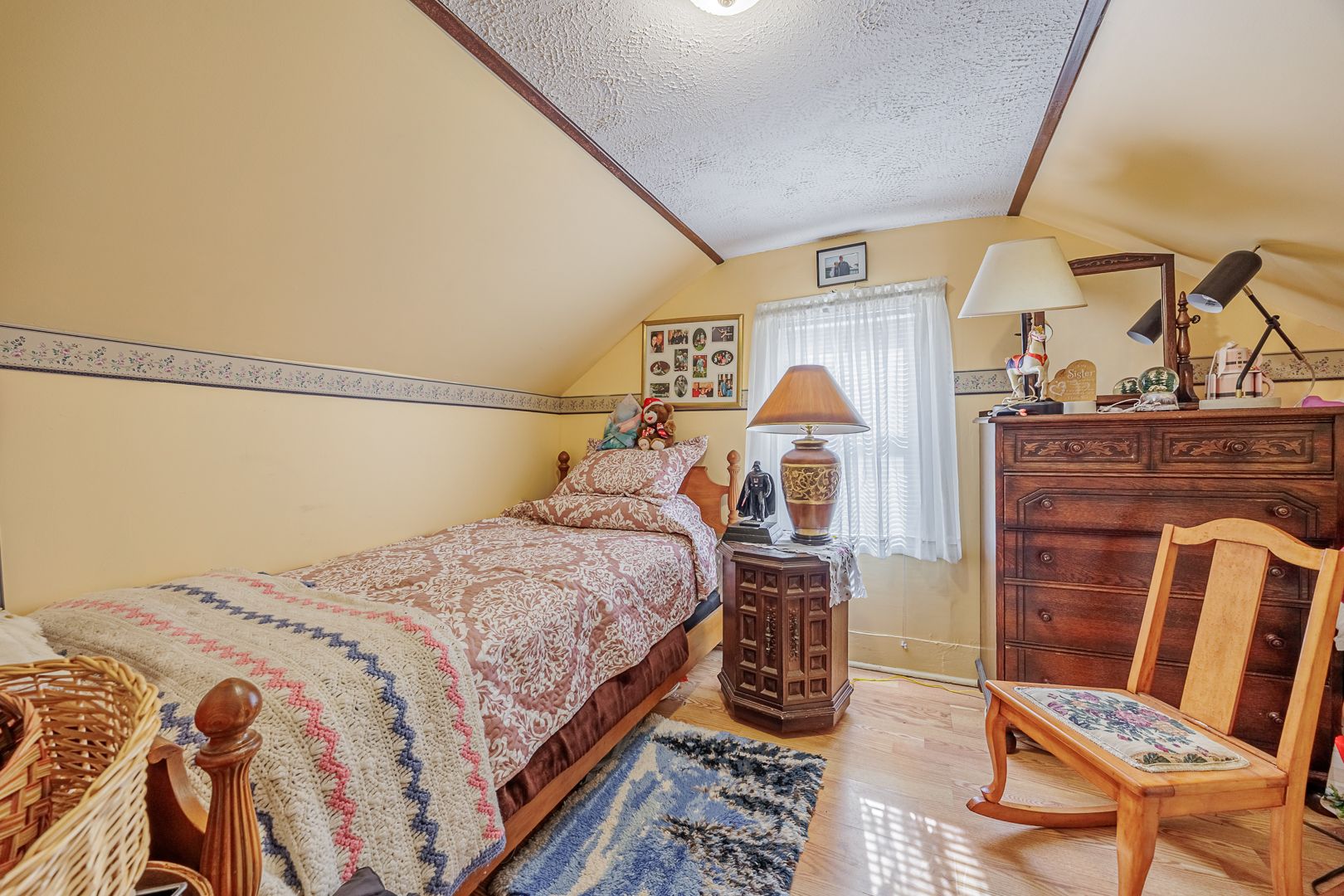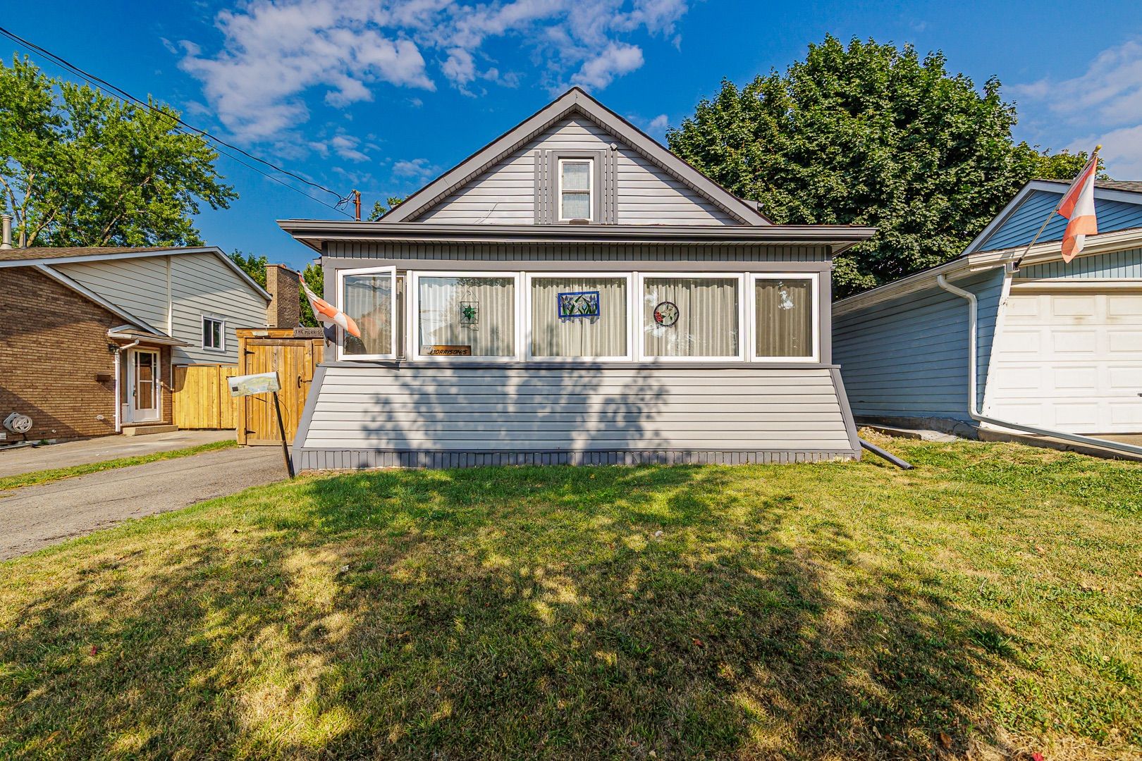 Amazing value- 3 bedroom , 1 bath, 1. 5 storey close to the canal, park, schools, shopping and public transit. Large living room/dining room combo with gas fireplace, kitchen and bedroom on main floor, plus sunroom and rear service porch. Upstairs features two bedrooms and 4pc bath. Basement has laundry and one piece. Rear yard is generous, fully fenced , has a covered deck to watch the boats in the canal. Closed in carport will accommodate a small suv. Paved drive, vinyl windows, vinyl siding, newer furnace and air conditioning- best deal around!!