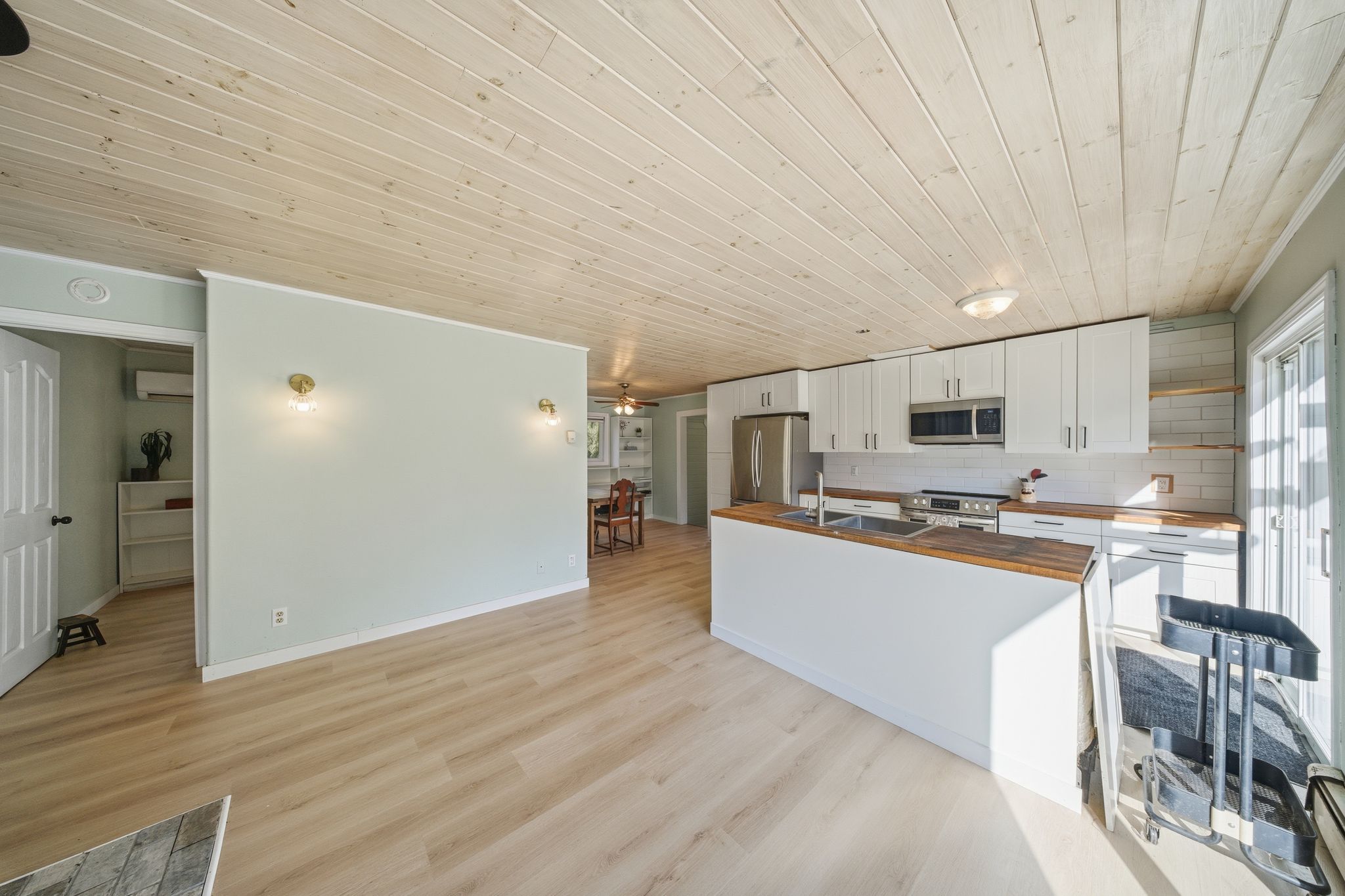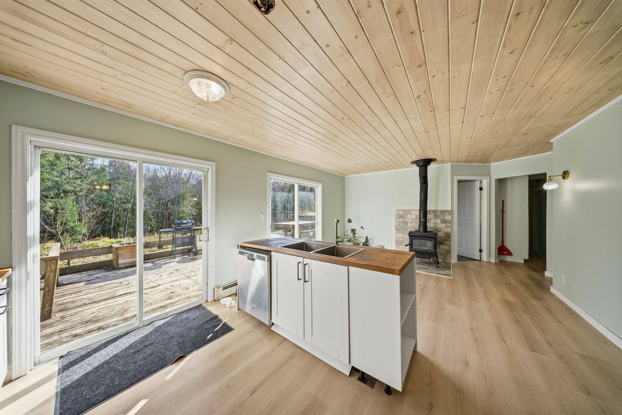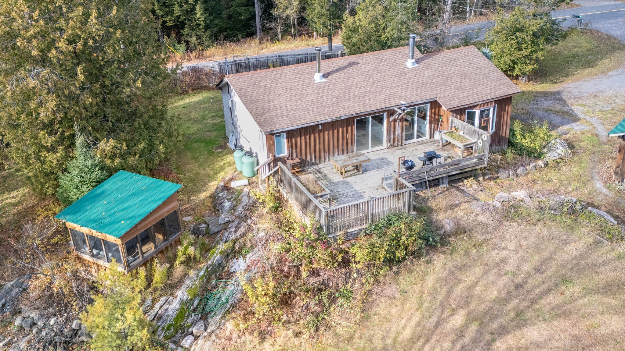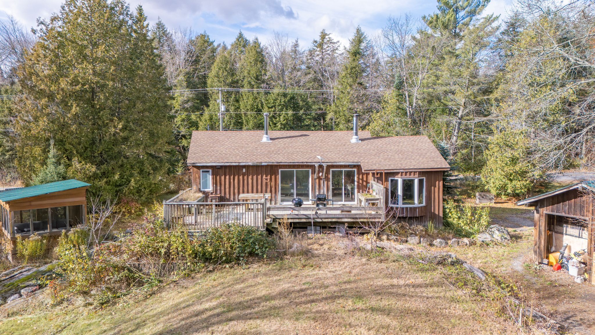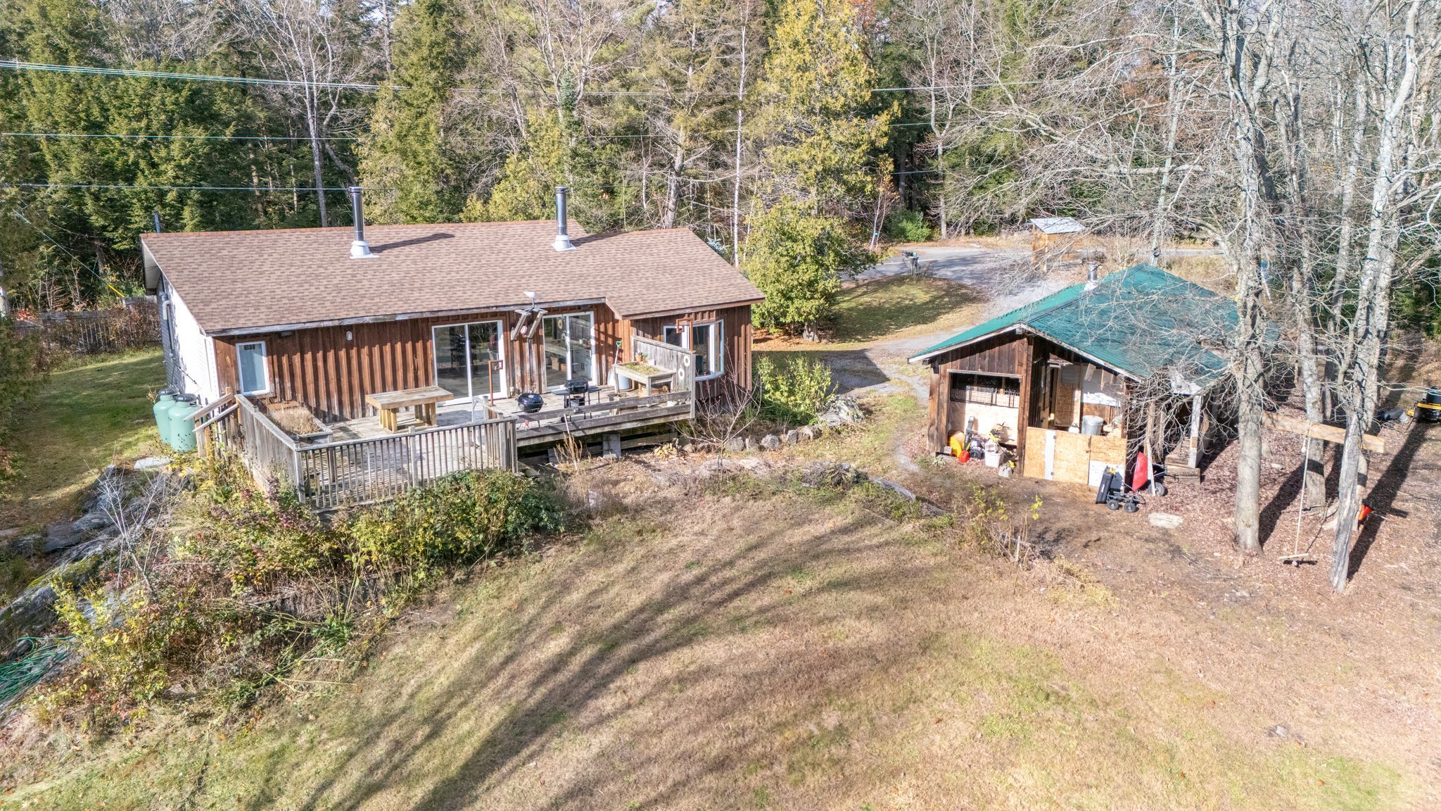 Tucked away on a quiet, municipally maintained road, this charming 2-bedroom, 1-bathroom home offers the perfect balance of comfort, efficiency, and country charm. Enjoy your own private setting on 8. 74 acres of peaceful, year-round living, complete with your own private trails, workshops, garden sheds, and plenty of space to start your very own hobby farm. The home has seen several thoughtful upgrades, including a brand-new kitchen (2024), new flooring throughout (2024), a new roof (2019), and a new roof on the 32' x 15' workshop (2018). The bathroom features in-floor heating, while a wood stove provides cozy warmth through the colder months. Additional heating and cooling options include baseboard heaters and a ductless heat pump/ac unit for year-round comfort. Step outside to enjoy your expansive property-take a walk along the trails, relax on the back deck, or gather in the screened-in gazebo overlooking the beautifully maintained yard. For hobbyists or those running a small business, the large 32' x 15' workshop and 20' x 10' (approx.) garden shed offer excellent storage and workspace options. Located less than 2 minutes from the lake joseph boat launch & rocky crest golf course, this property is a true blend of privacy, practicality, and modern updates!