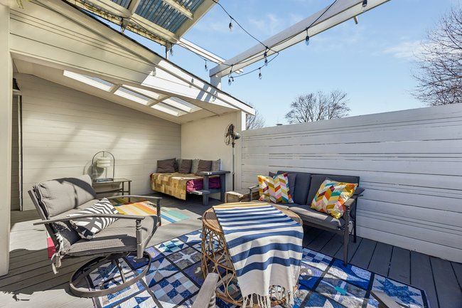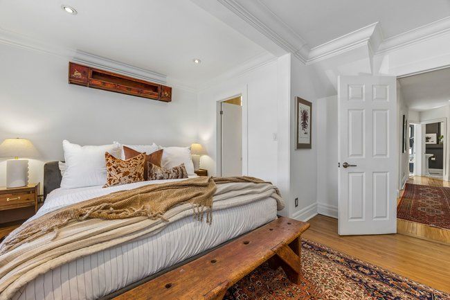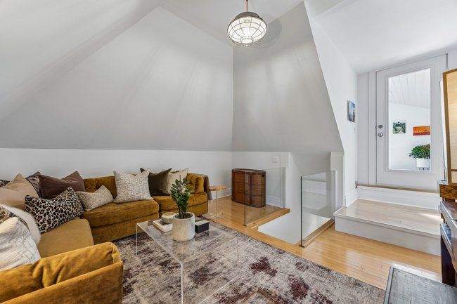 Classic charming brick leslieville character defines this large approx. 2500 sf, 2 1/2-storey semi-detached home including all finished levels. A wood-burning fireplace warms the living room, creating a cozy heart for gatherings. Bright living room flows to foyer, dining room and kitchen, with direct access to rear elevated deck and private yard oasis. Unique dual-bathroom layout features powder room with toilet and pedestal sink, adjacent to full bath with soaker tub, glass rain shower, vanity, and family-size front-load washer/dryer. Multiple bedrooms served by both main and back stairs. Spacious primary bedroom with wood-burning fireplace and walk-in dressing room. Standout third-floor loft with walk-out to expansive terrace (covered seating + open area, fully wired with electrical) - currently a family room but easily converts to bedroom or office. Finished basement with bedroom, recreation room, bathroom rough-in and expansive storage. Perfect blend of heritage charm and modern function on one of leslieville's most desirable streets! Quiet, walkable, friendly - steps to queen st. East amenities, transit and a new ontario line station mere blocks away.