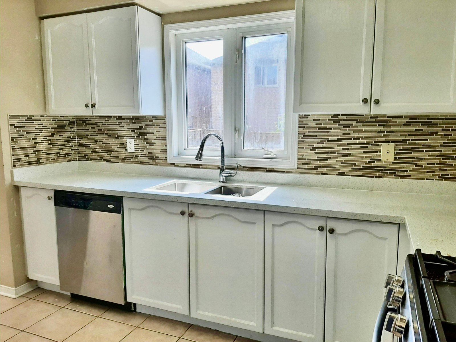 • Eat-in kitchen with a new backsplash for a modern touch.