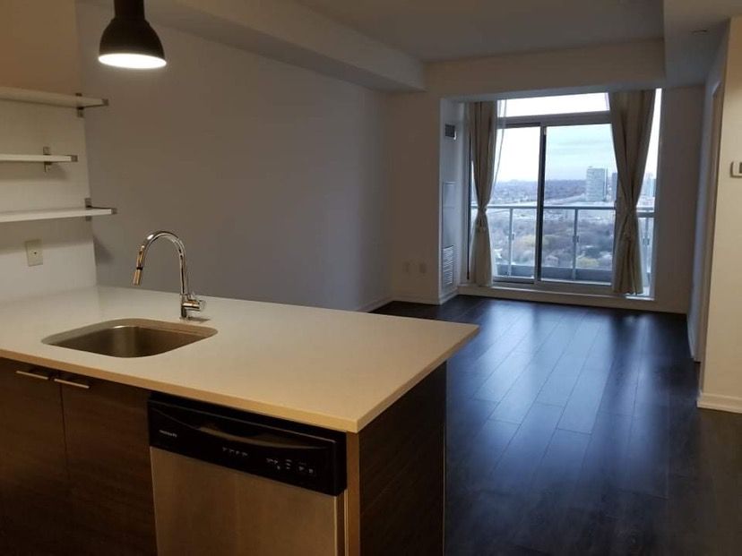 Luxurious emerald city condo, bright and spacious 1 bdrm + 1 den, large den can be a 2nd bdrm, 9 ft ceiling with floor-to-ceiling windows, unobstructed south-west view on a high floor (perfect for sunset lovers), super clean & well maintained, quart kitchen countertop, excellent amenities, recreation & fitness centre. Minutes to hwy 404/dvp/401, steps to subway, close to everything.