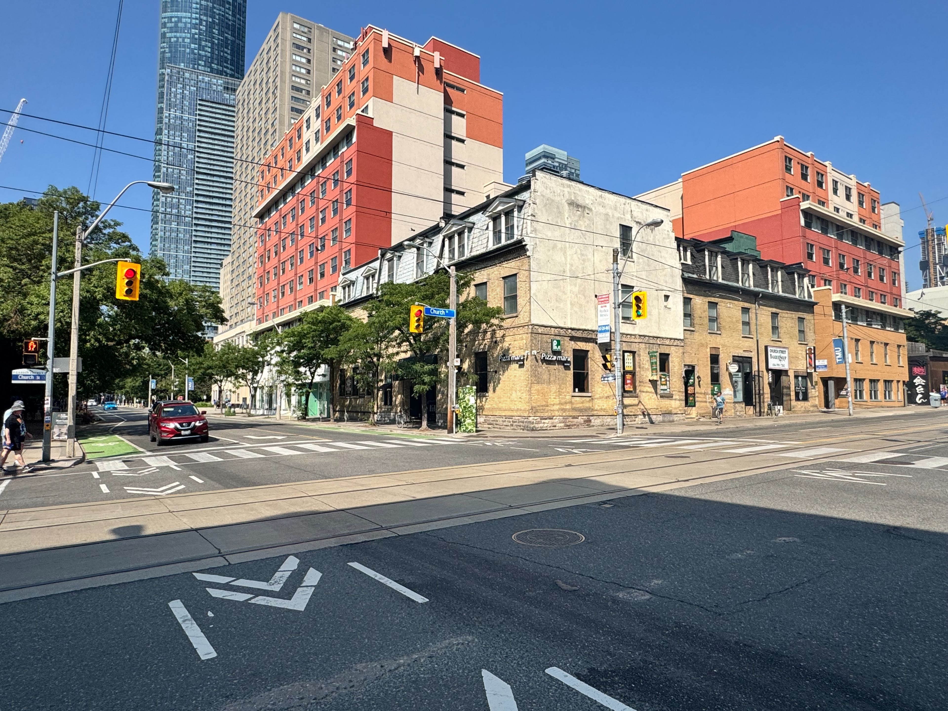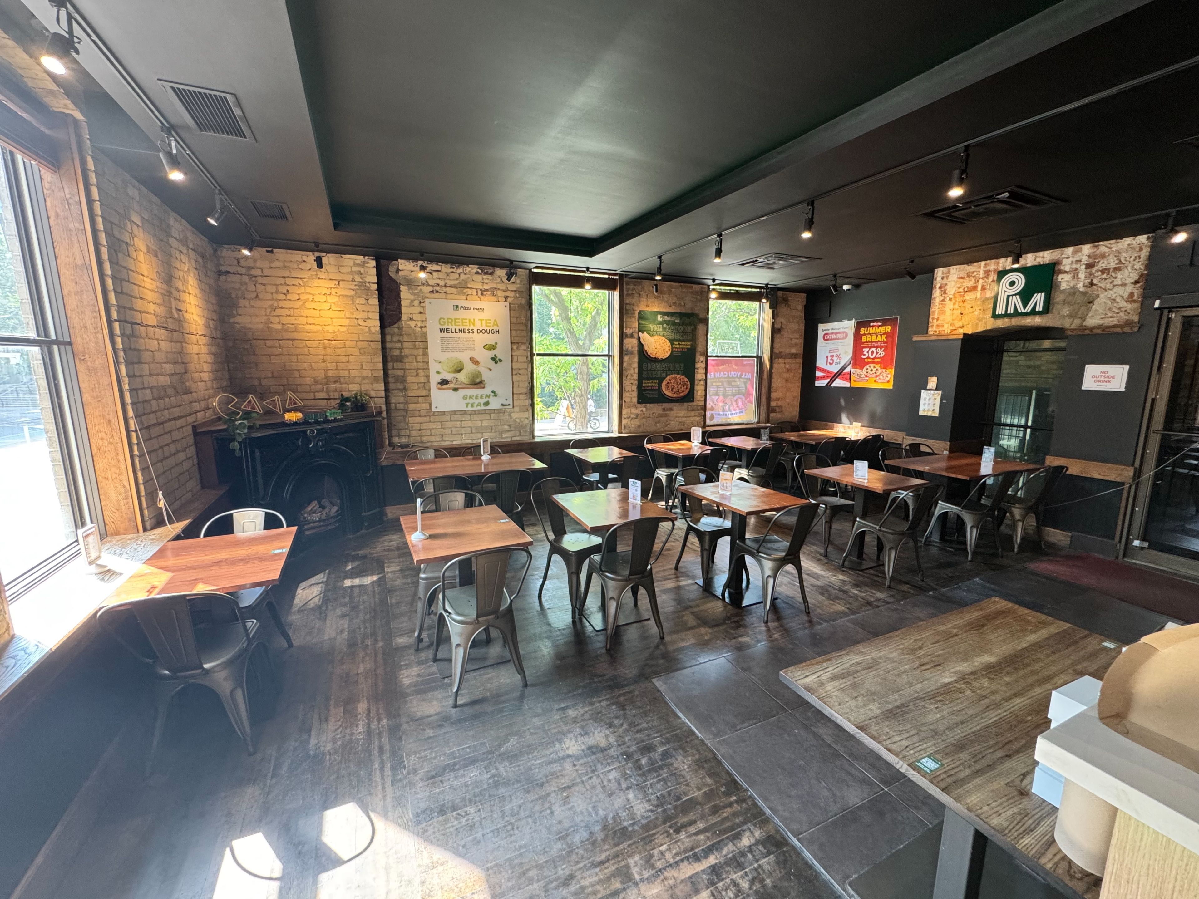 Prime corner at church & gerrard, a rare opportunity! Turn-key restaurant/retail space featuring double entrances and highly visible dual exposures, fronting two busy streets with constant pedestrian and vehicle traffic day and night. Approx. 1,650 sq. Ft., formerly starbucks and currently operating as a pizzeria, ideally located in the heart of downtown just steps to tmu (ryerson) campus, university of toronto, and surrounding student residences. High-visibility corner unit filled with natural light. Features an open kitchen concept with ample prep space and storage, perfectly suited for a wide range of food and beverage operations. - ready to be transformed into your pizzeria, bakery, bar, café, or any eatery concept.