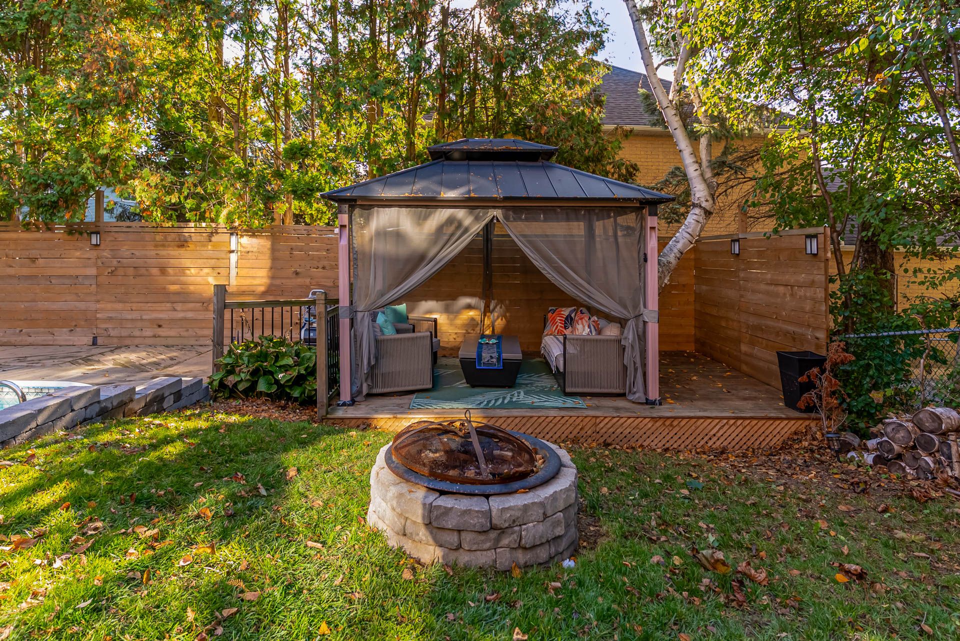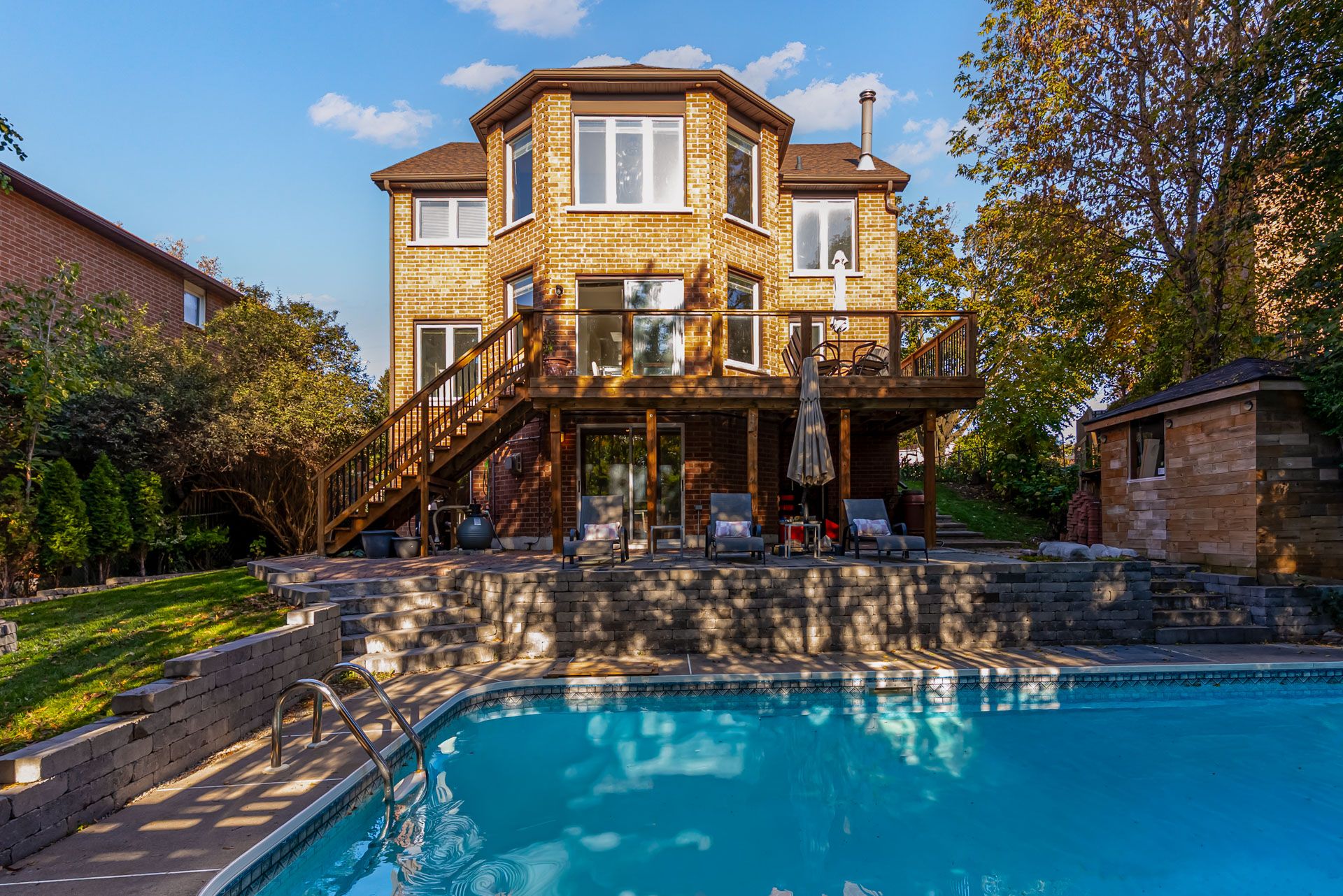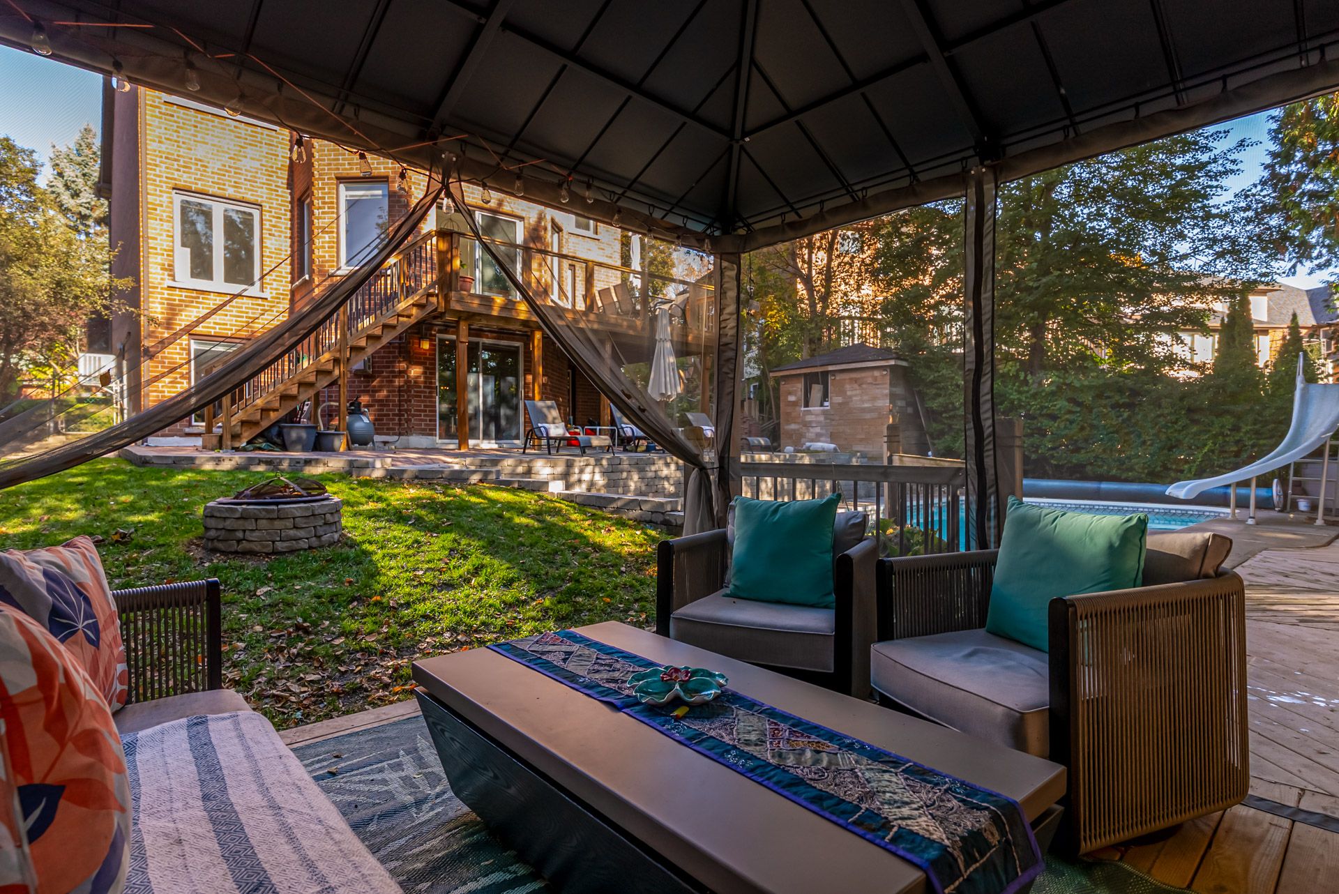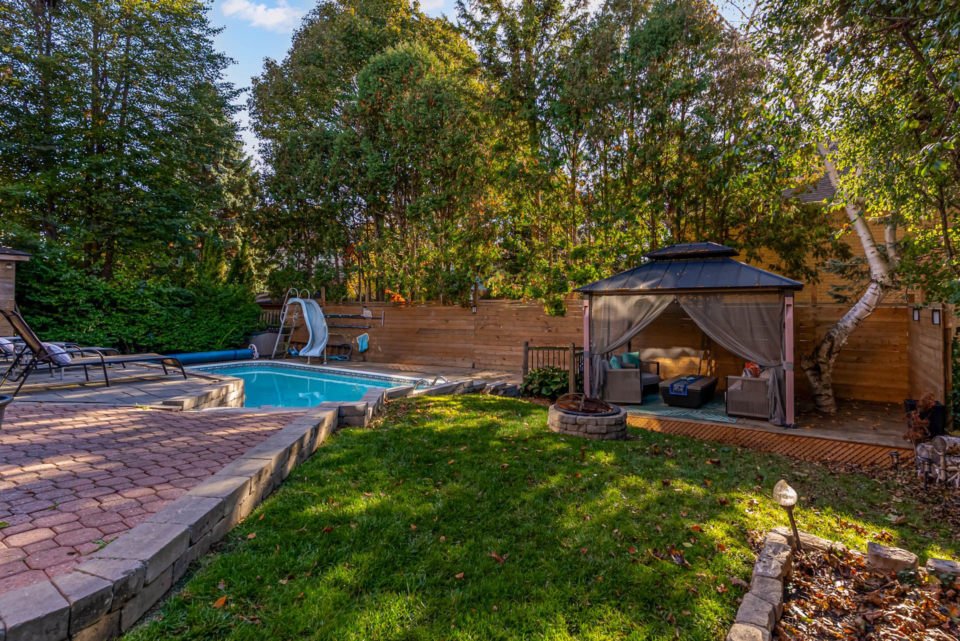 • Fabulous backyard oasis with a raised deck, inground pool, and gazebo.