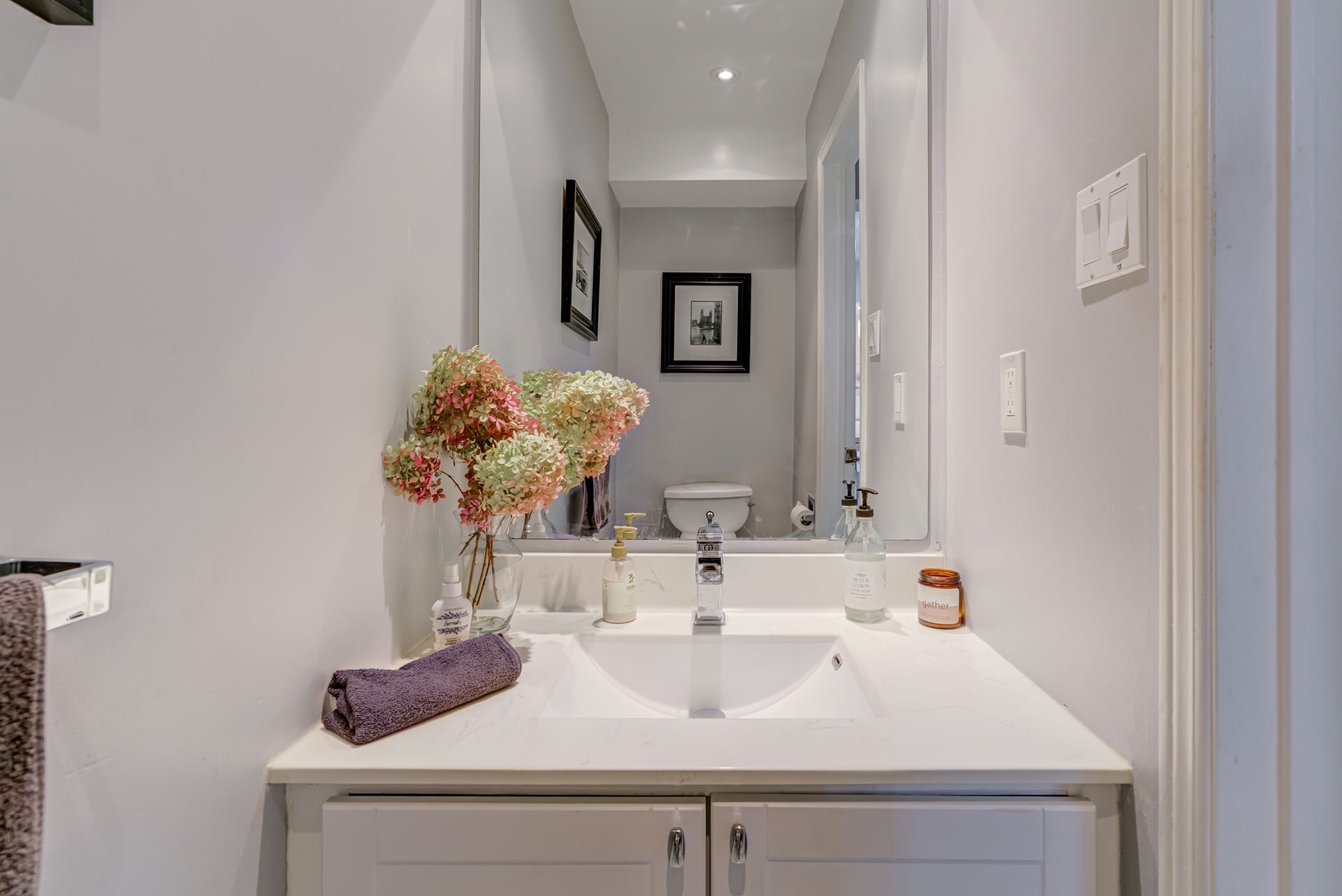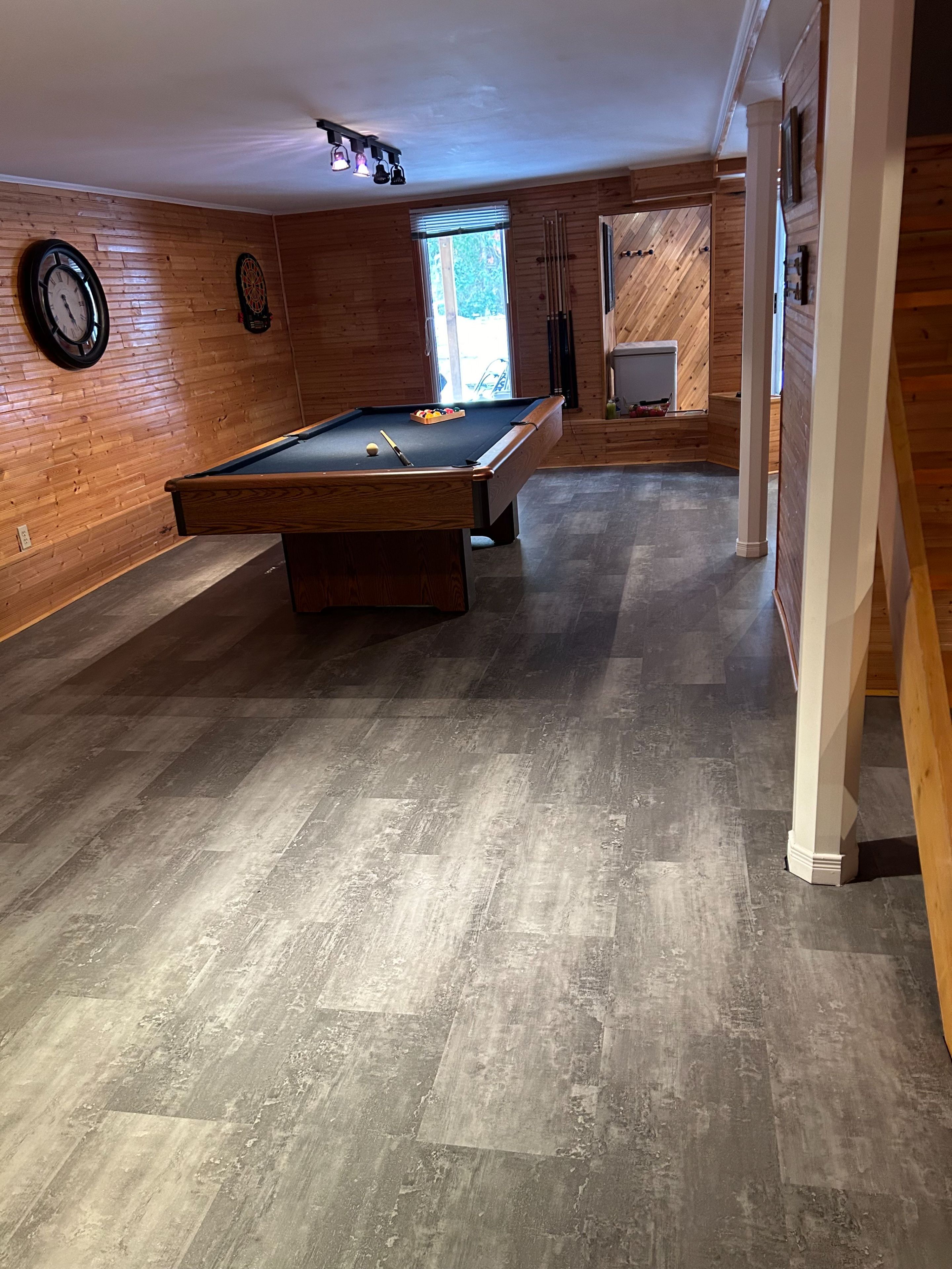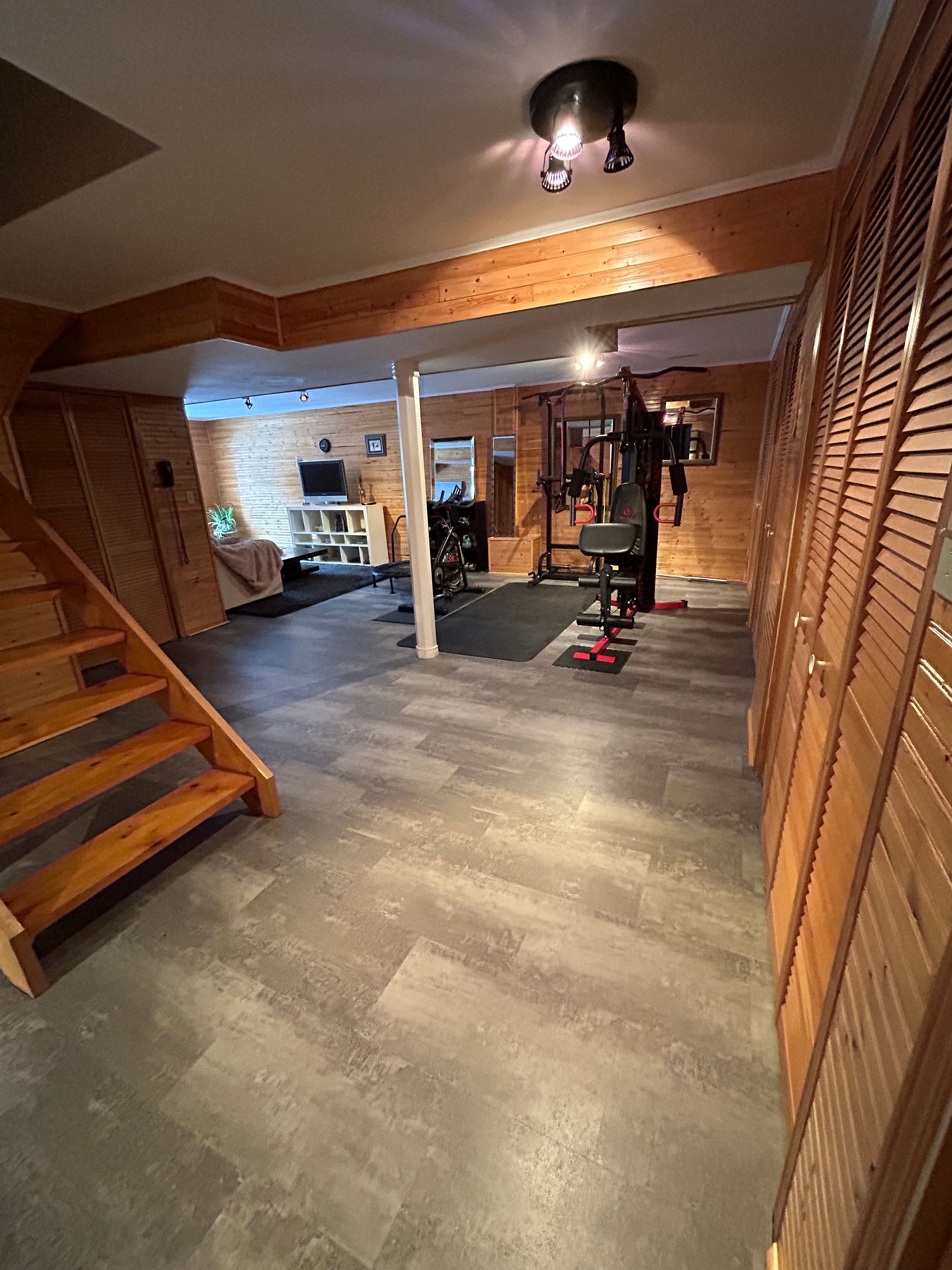 • Finished basement offers a large rec room and additional storage space.